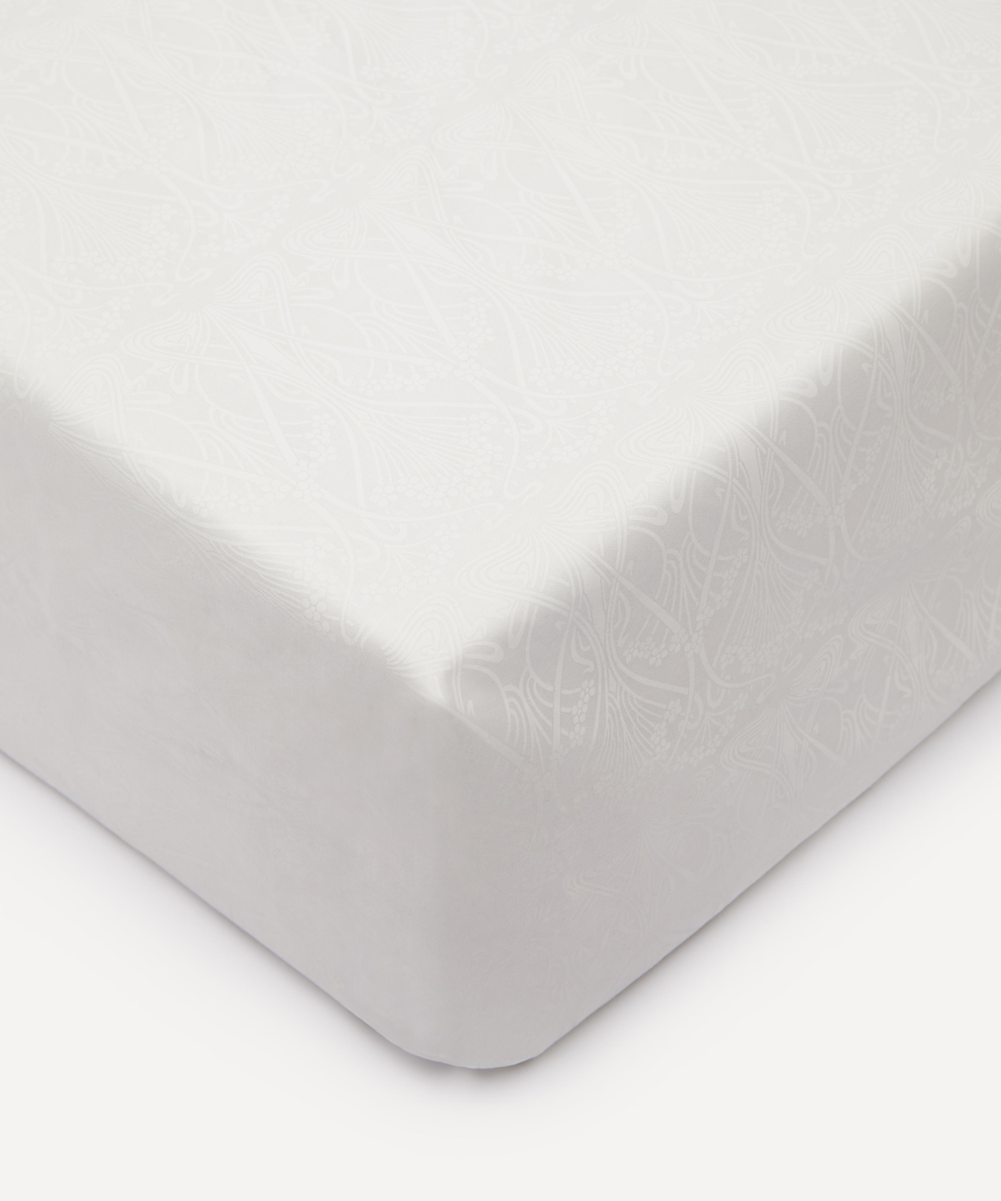 Liberty’s Ianthe Bloom fitted sheet is expertly crafted from luxurious cotton bonneville – a silky-smooth and soft material with a lightweight finish. Printed at our very own Italian fabric mill, Ianthe was originally devised as a wallpaper border in c.1902 by French artist René Beauclair and reimagined for the ‘swinging London’ market by the Haward Studio, a family textile firm who sold designs to Liberty for three generations, from the Edwardian era to the 1980s. A white on white design, this set is perfect for incorporating a touch of print alongside a minimalist bedroom set-up.