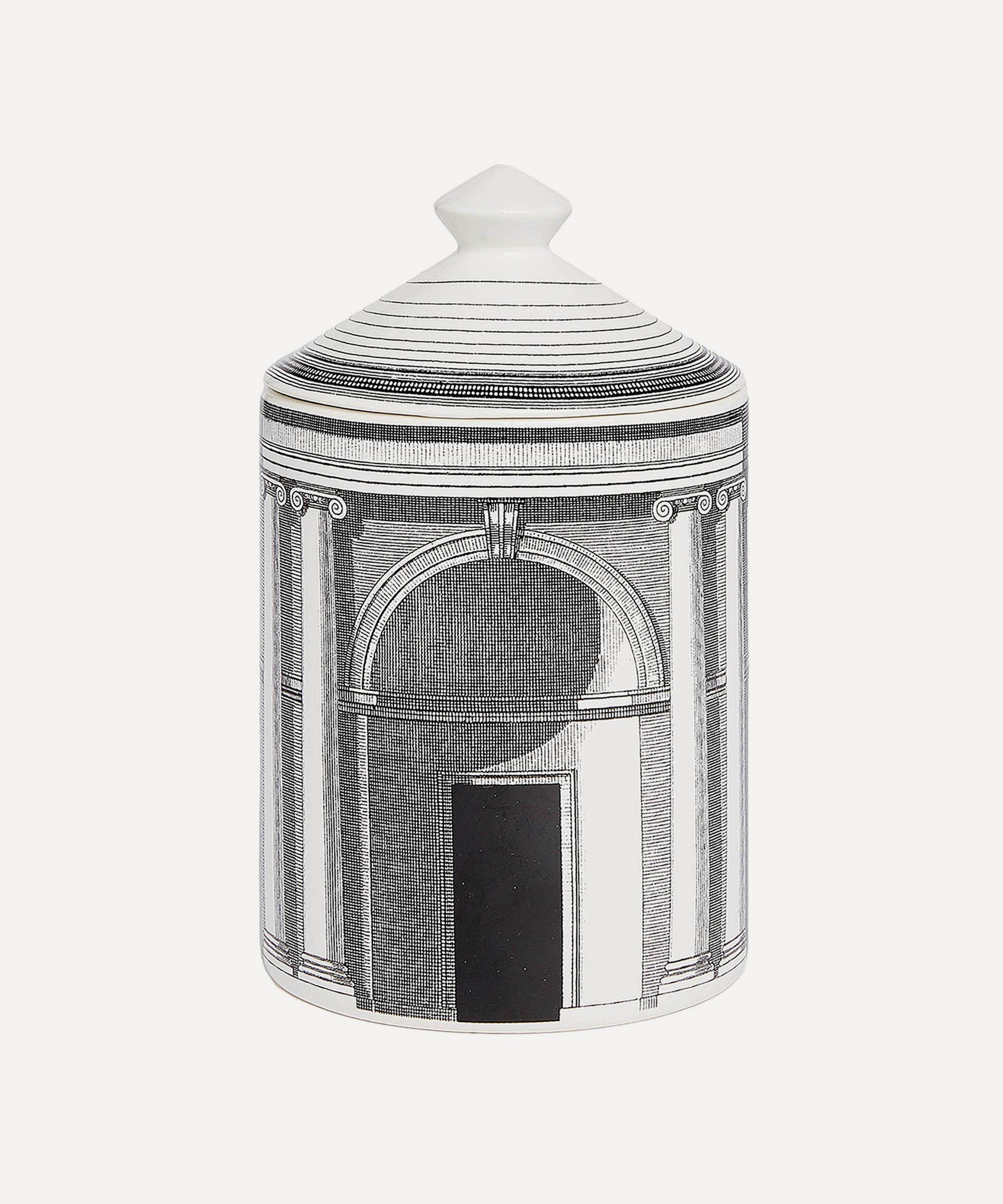 Infuse your home with the luxe charms of Fornasetti with the Architettura scented candle. Housed in a ceramic vessel featuring a decorative architecture design, it’s infused with Fornasetti’s Immaginazione scent – an elegant woody, aromatic fragrance that awakens the senses and fills your home with a rich aroma of Mediterranean herbs, cedar and sandalwood.