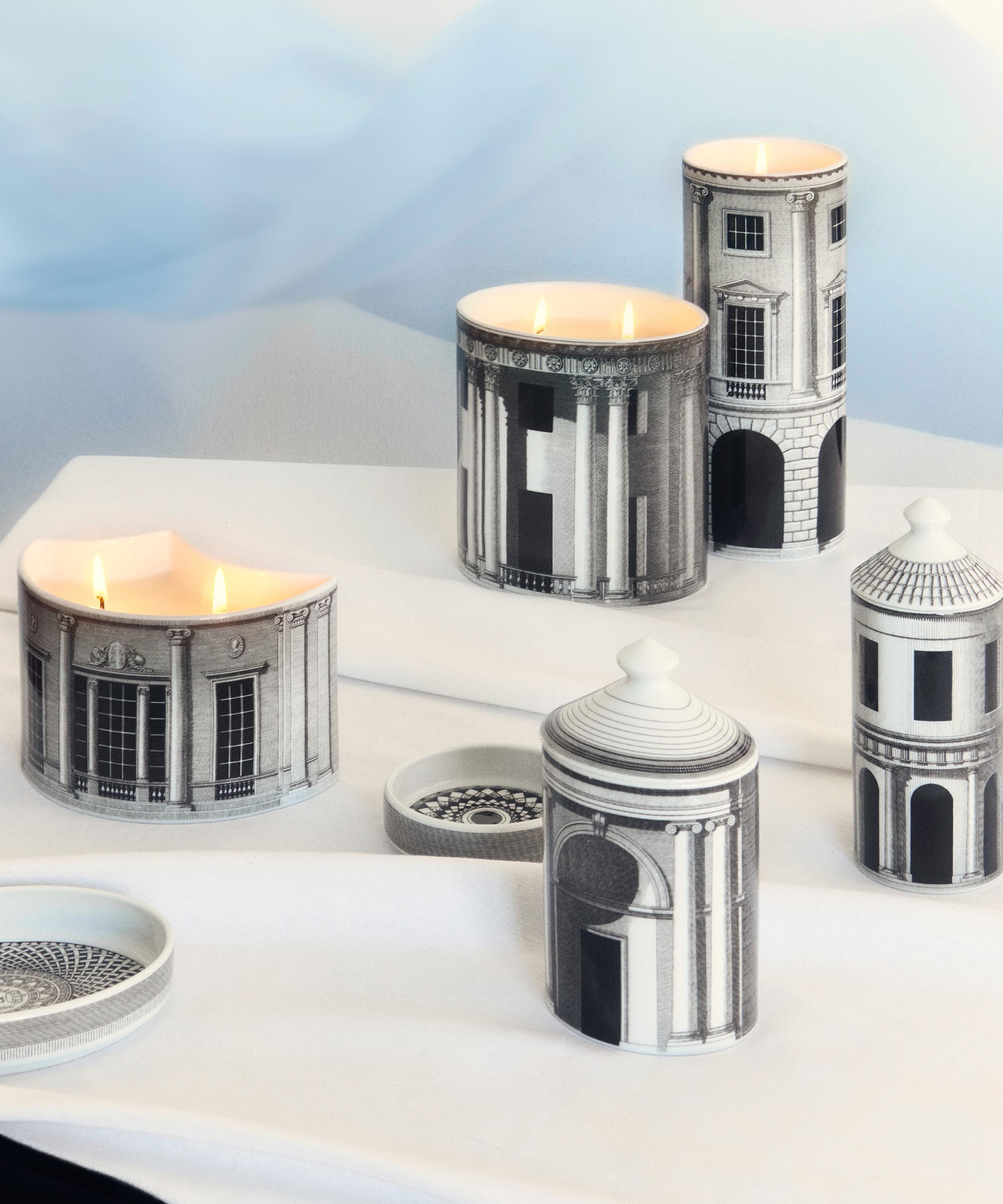 Infuse your home with the luxe charms of Fornasetti with the Architettura scented candle. Housed in a ceramic vessel featuring a decorative architecture design, it’s infused with Fornasetti’s Immaginazione scent – an elegant woody, aromatic fragrance that awakens the senses and fills your home with a rich aroma of Mediterranean herbs, cedar and sandalwood.