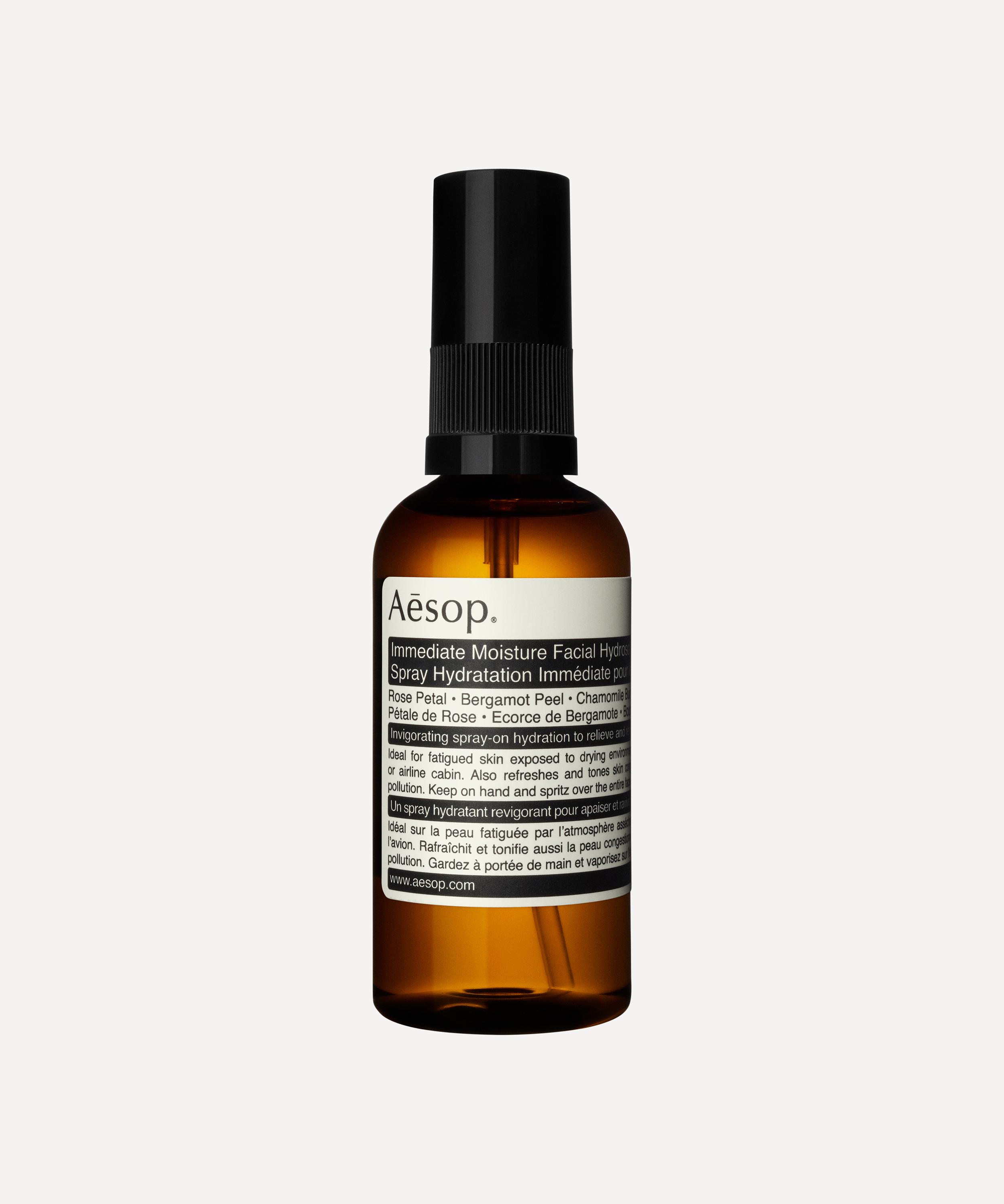 Aesop Immediate Moisture Facial Hydrosol is a refreshing hydration mist designed to revive the skin and senses at home, in the office or at altitude.