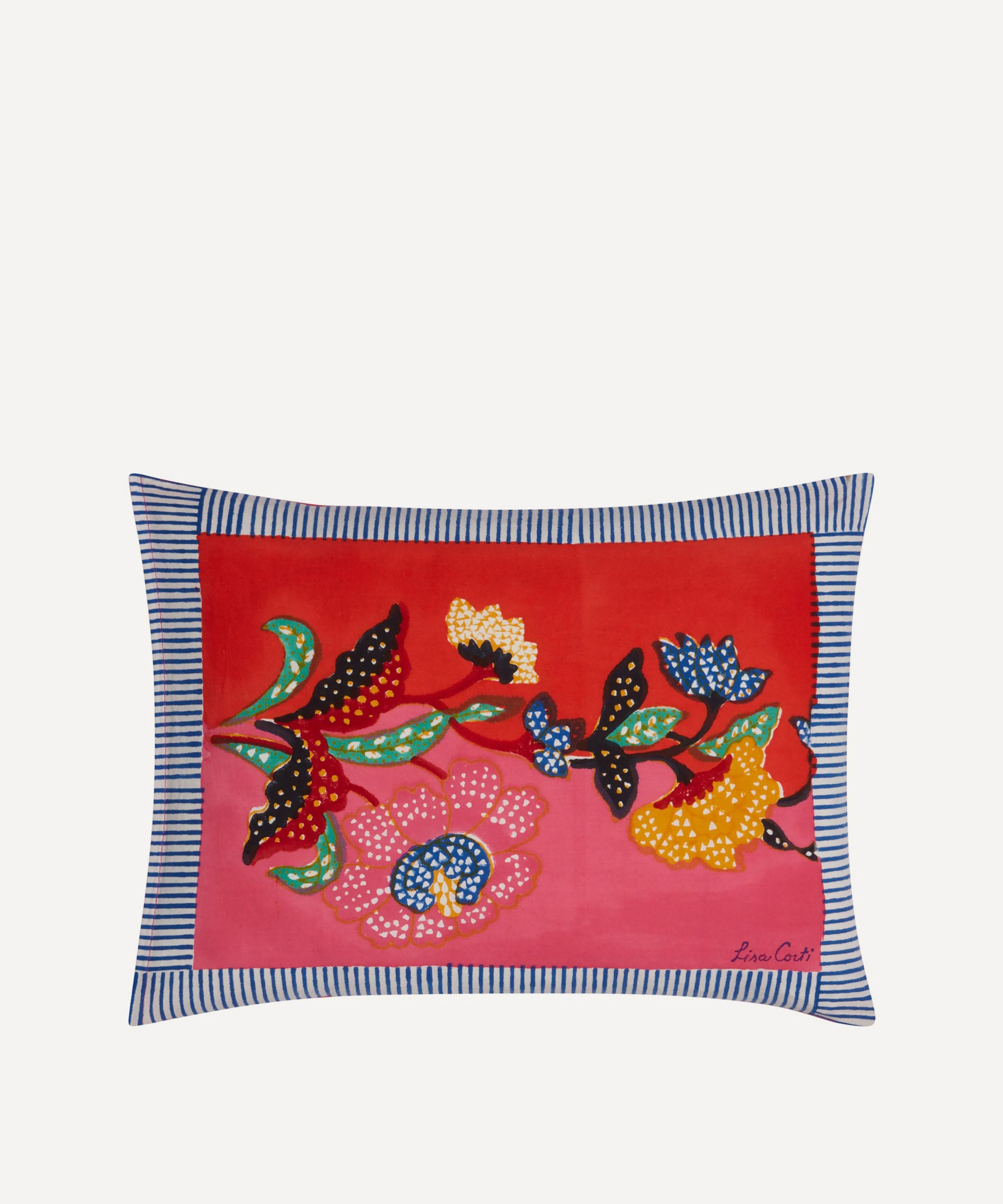 Lisa Corti channels her singular affinity for colour, ancient crafts and the art of travel into the Indonesian Red Rose Cotton rectangular cushion - a must-have piece for interior enthusiasts.