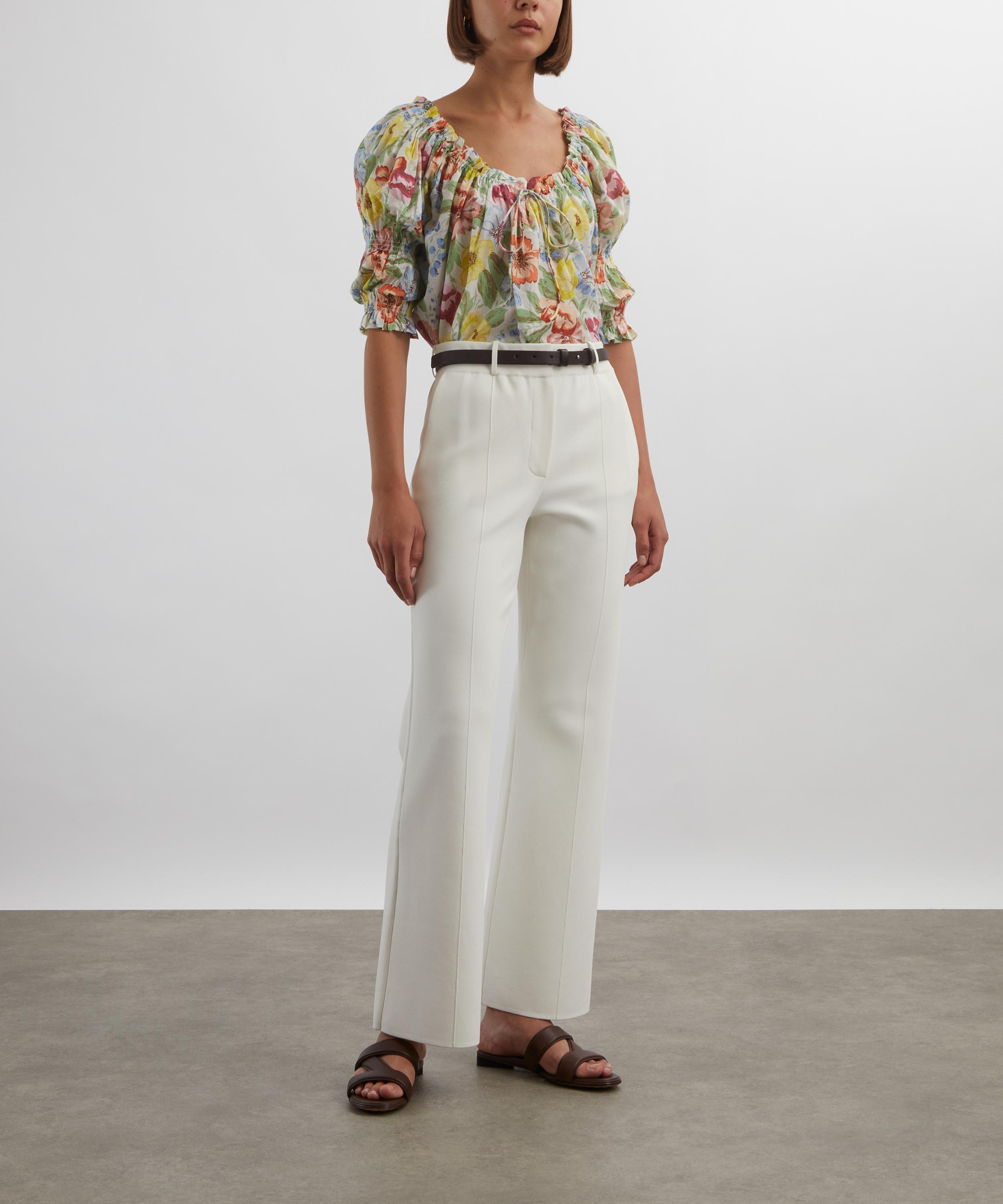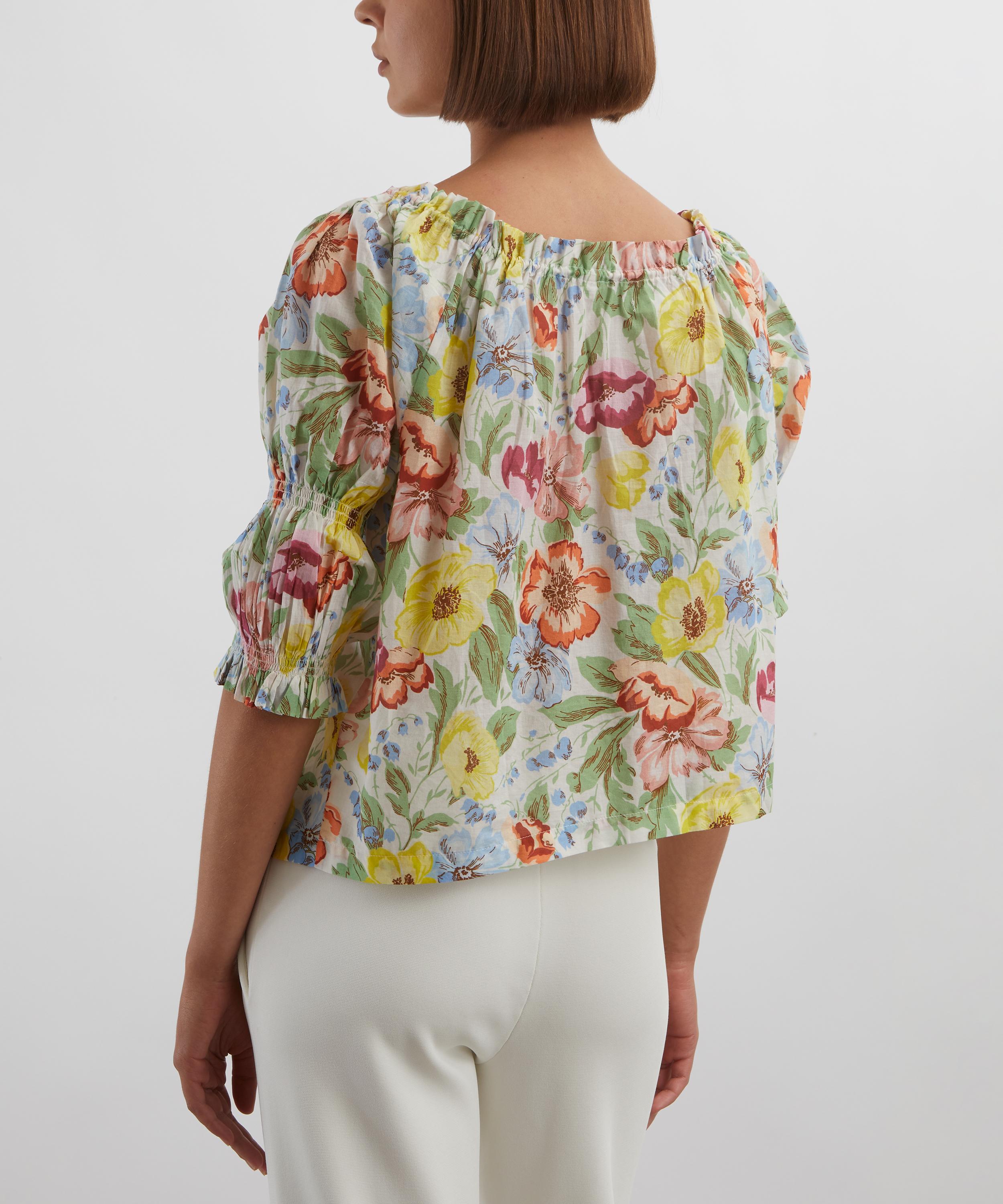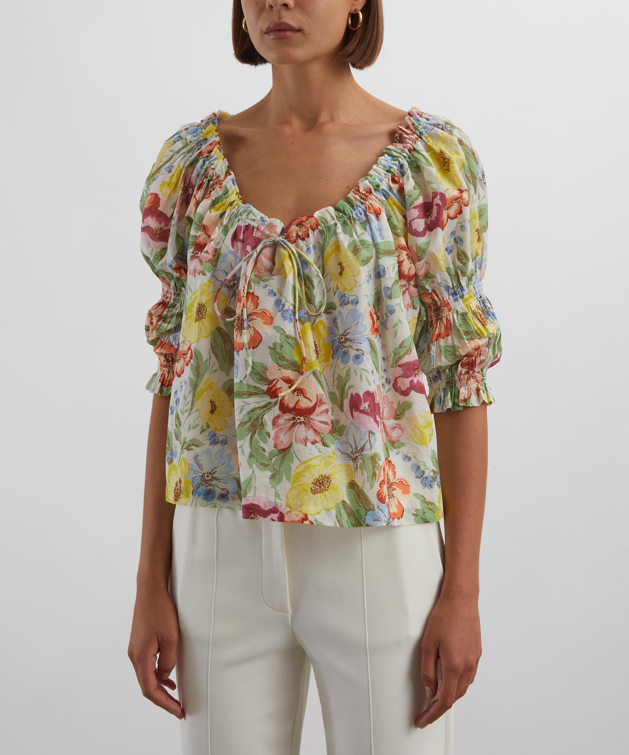 Crafted from soft cotton voile in colourful florals, the Inez Top features a breezy silhouette with double-puffed sleeves and a scoop neckline finished with delicate ruffles and functional ties.