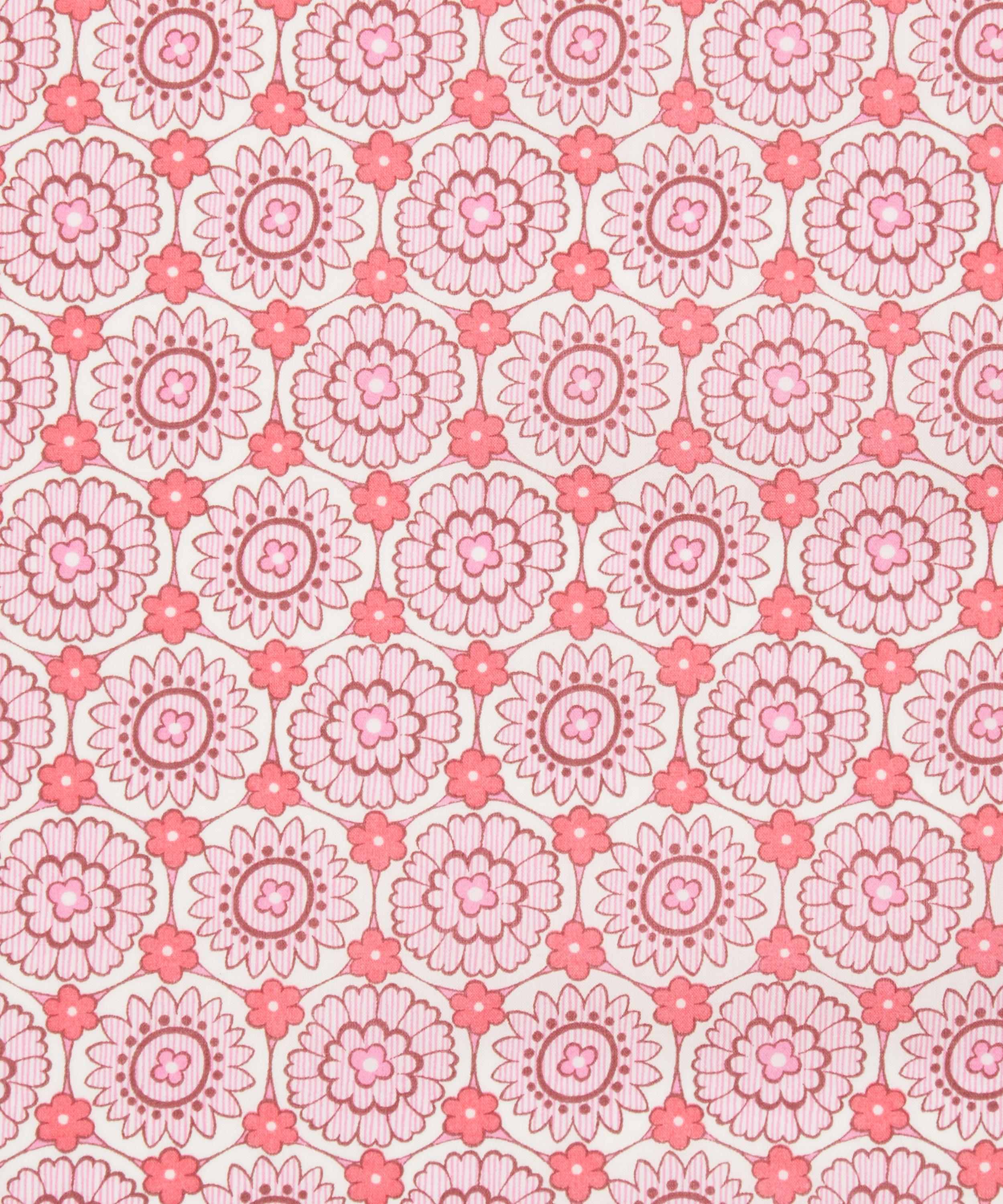 Inspired by a small detail taken from design Weaver’s Wonder, this charming coordinate print captures the elegant simplicity of symmetrical flowers. Inez Mio is a contemporary geometric botanical, highlighting the intricacies found in more elaborate artworks through its tile-inspired layout and delicately striped textures. This print is part of the Craftsmanship narrative of this collection, exploring the creative process from within the Liberty archive, from print impressions and embroidered studies, to ceramics, jewellery, and furniture. Uncover the origins of the designers’ musings through artworks inspired by their sketchbooks and prototypes.