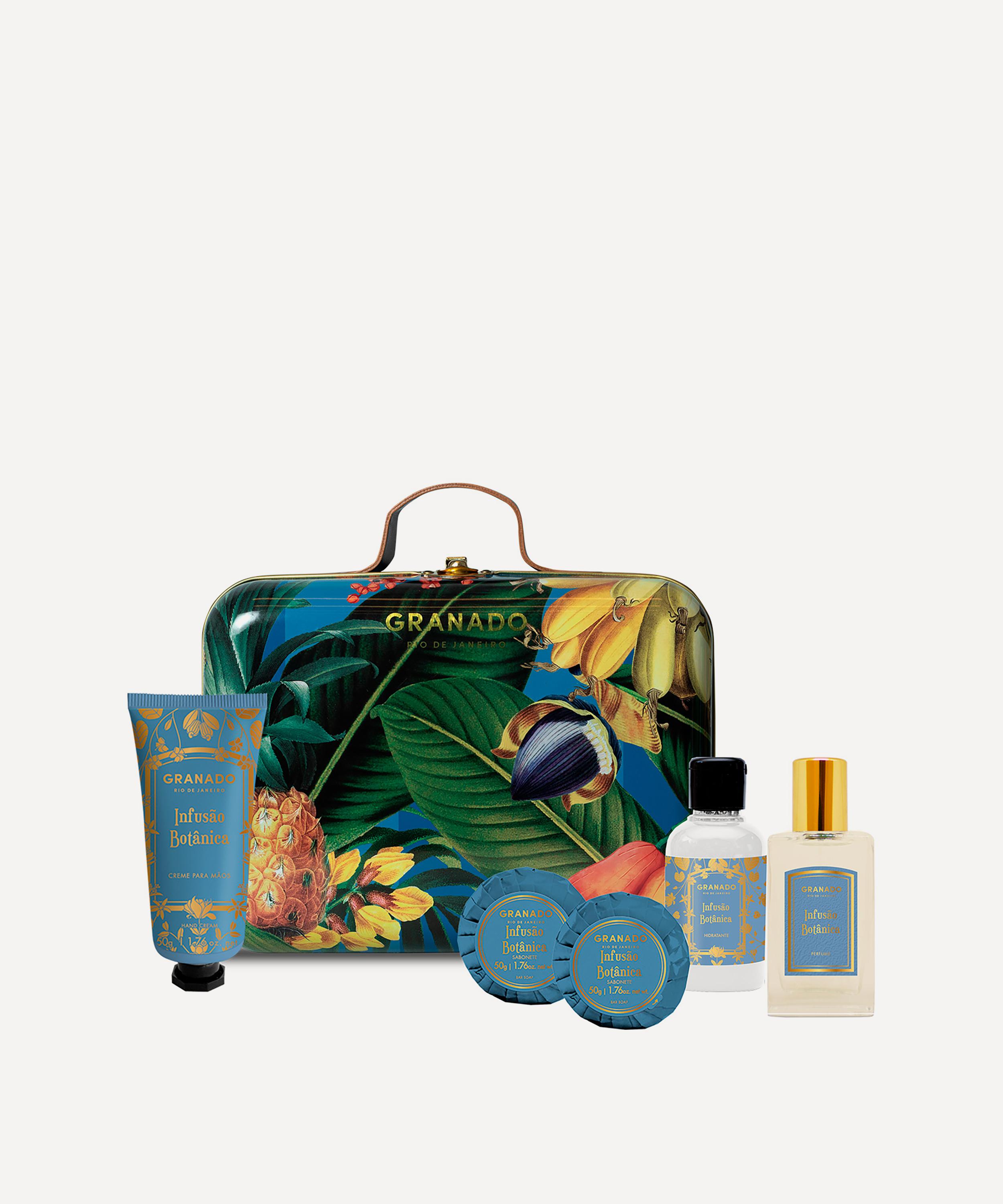 • Infusão Botânica Case Set includes: Infusão Botânica Bar Soap 120g x 2, Infusão Botânica Body Moisturiser 300ml, Infusão Botânica Liquid Soap 300ml and an elegant suitcase
