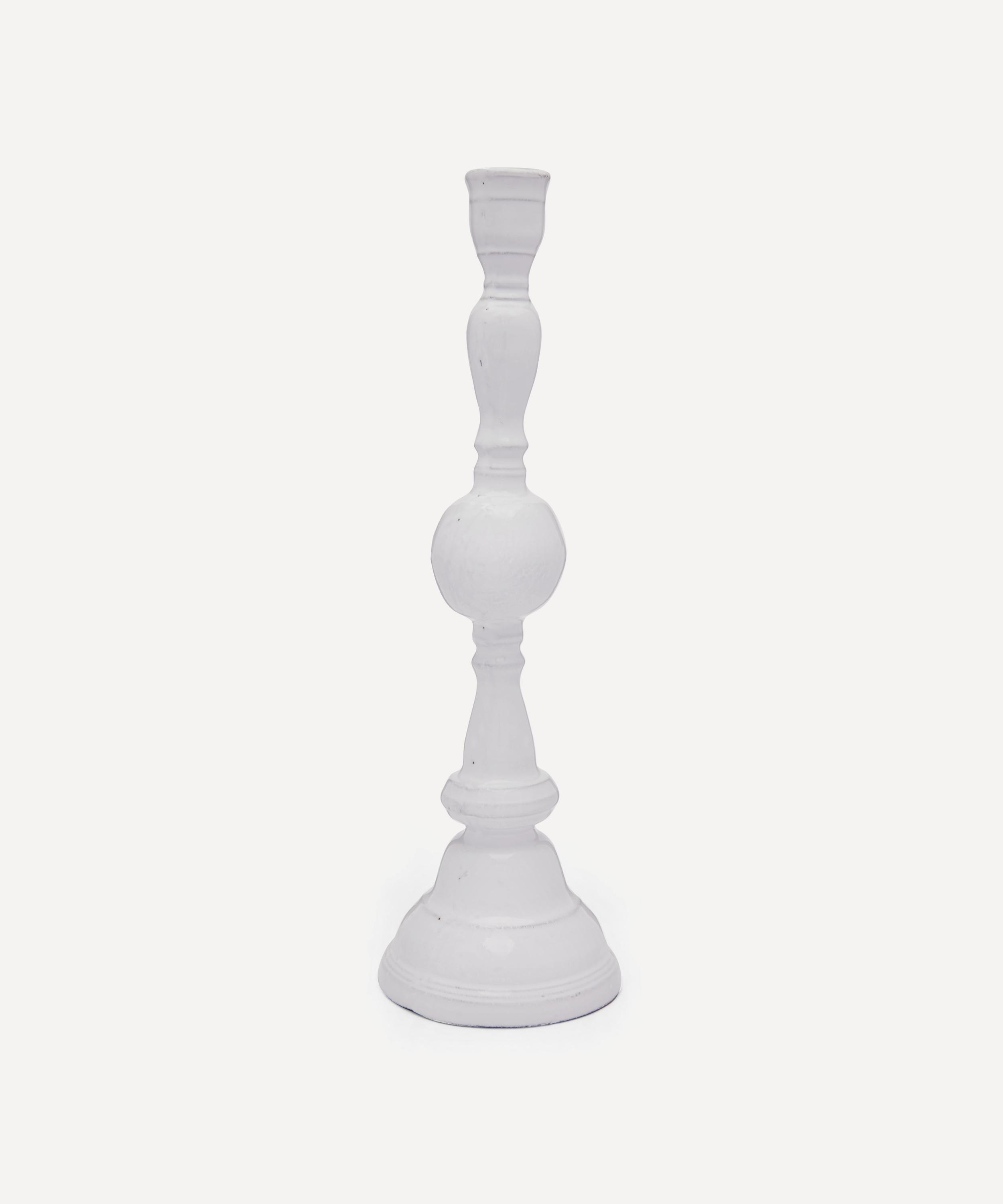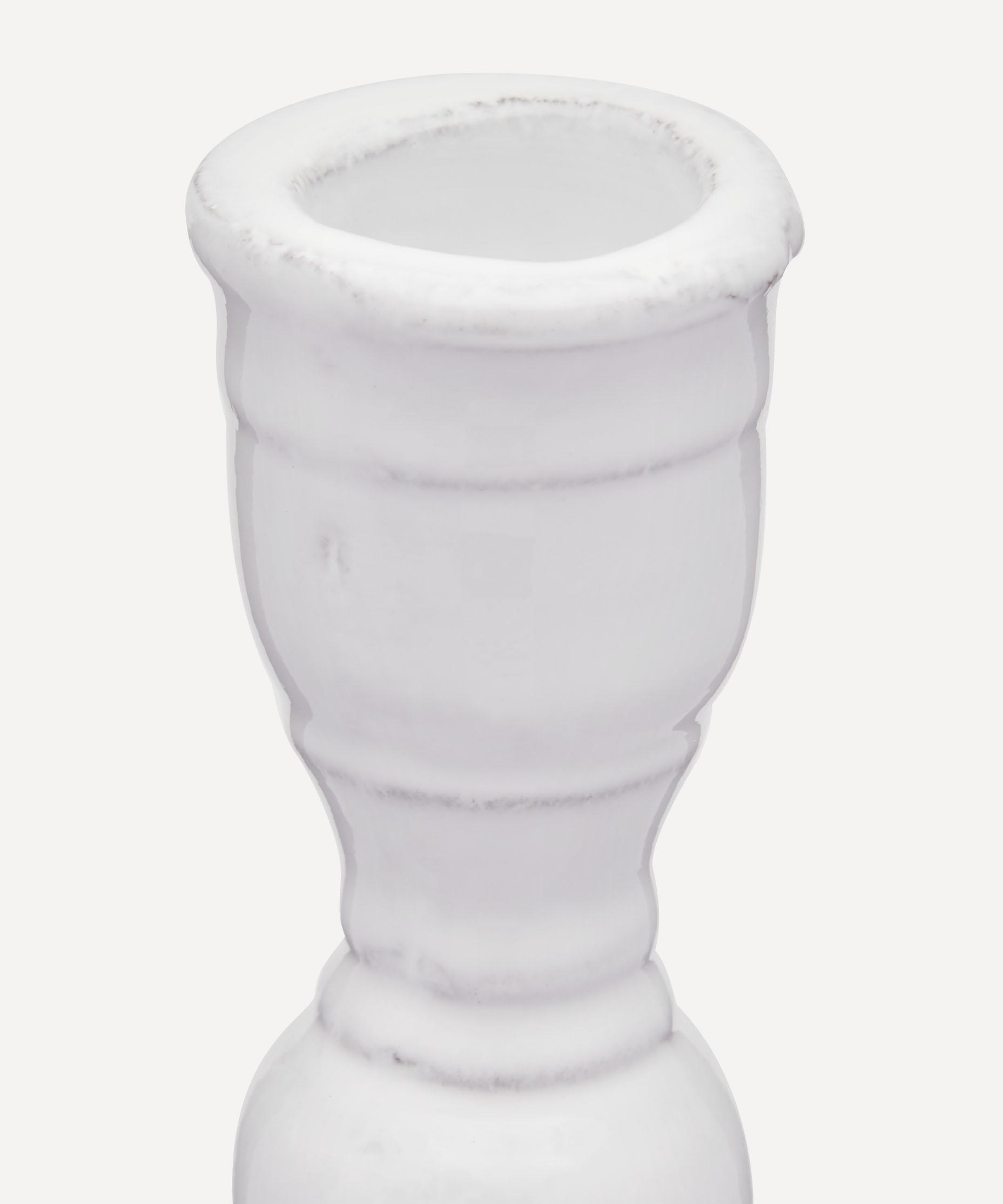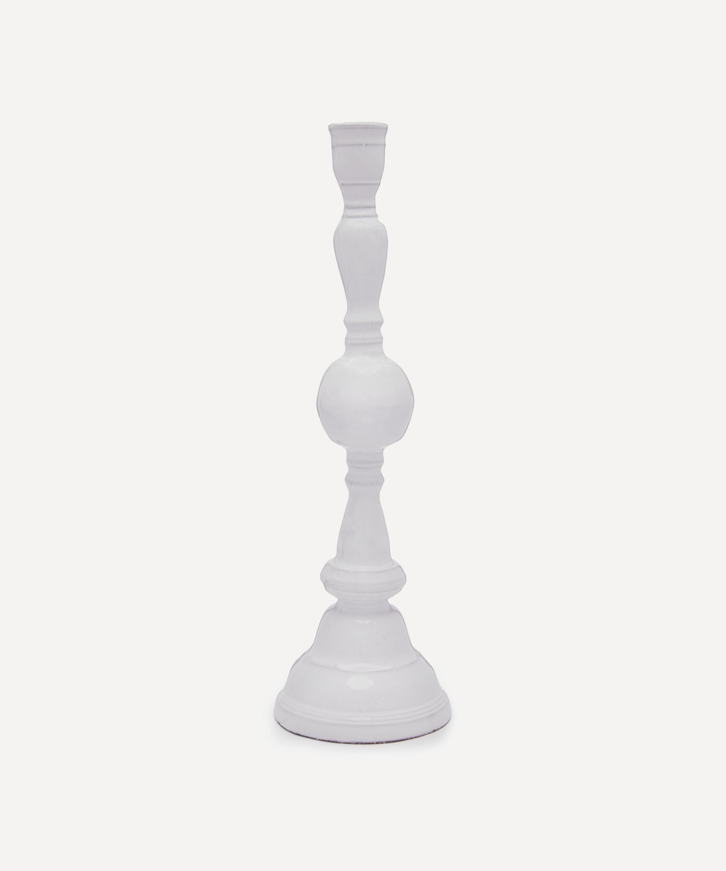 Votary of pre-industrial fabrication, Astier de Villatte is celebrated for being the one and only studio in Paris to hold and harbour the traditions of artisanal ceramic production. Restoring the ancestral systems of moulding and stamping, the Istanbul candlestick is made using techniques from the Middle Ages which involve moulding a sheet of handmade clay, double firing the ‘biscuit’ piece and glazing the product in white enamel – a lengthy process that requires a drying time of up to one month. Characterised by a curvaceous form, the candlestick is engraved with the brand’s signature crest - depicting an interlacing A & V - alongside the initials of one of the 40 master artisans who created it. Each handmade piece tells a beautiful story, it romances and imparts a sense of nostalgia into its owner. Display with other candlestick holders from the collection for a coordinated setting.