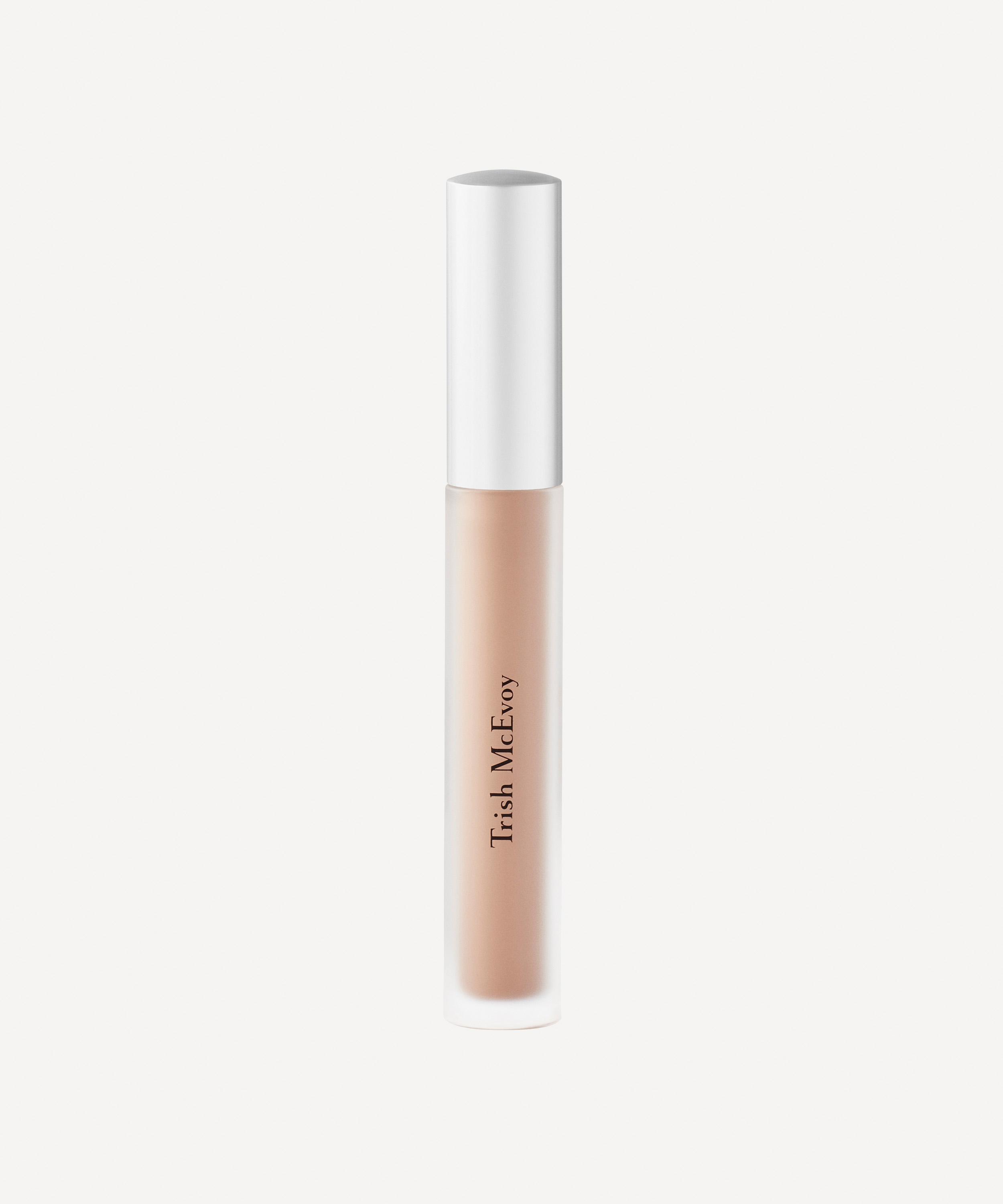 After allowing your usual eye serum or cream to absorb, use the doe-foot applicator to apply concealer in an upside-down triangle formation under each eye. Use a Trish McEvoy laydown brush, a cosmetic sponge or your ring finger to blend.