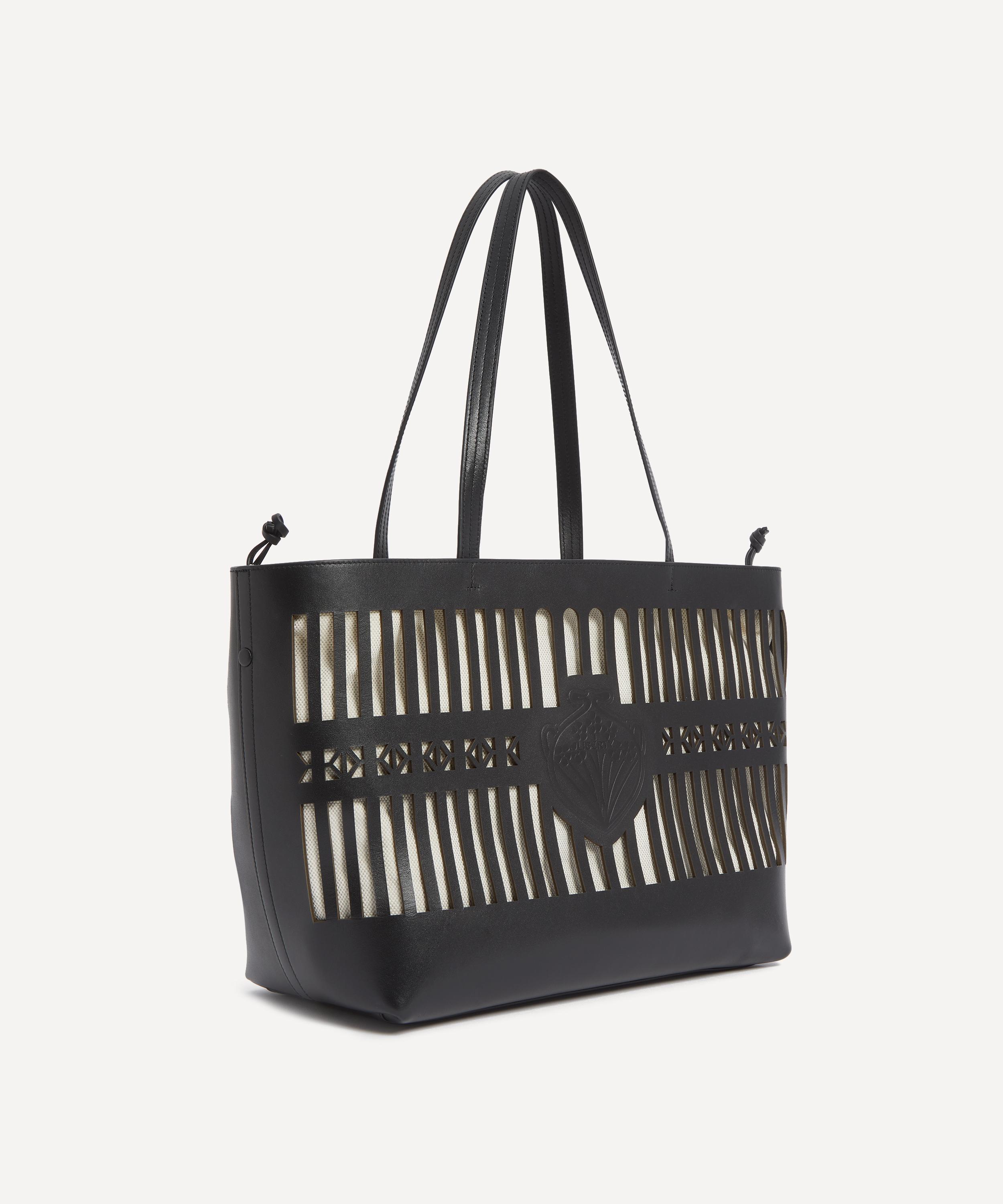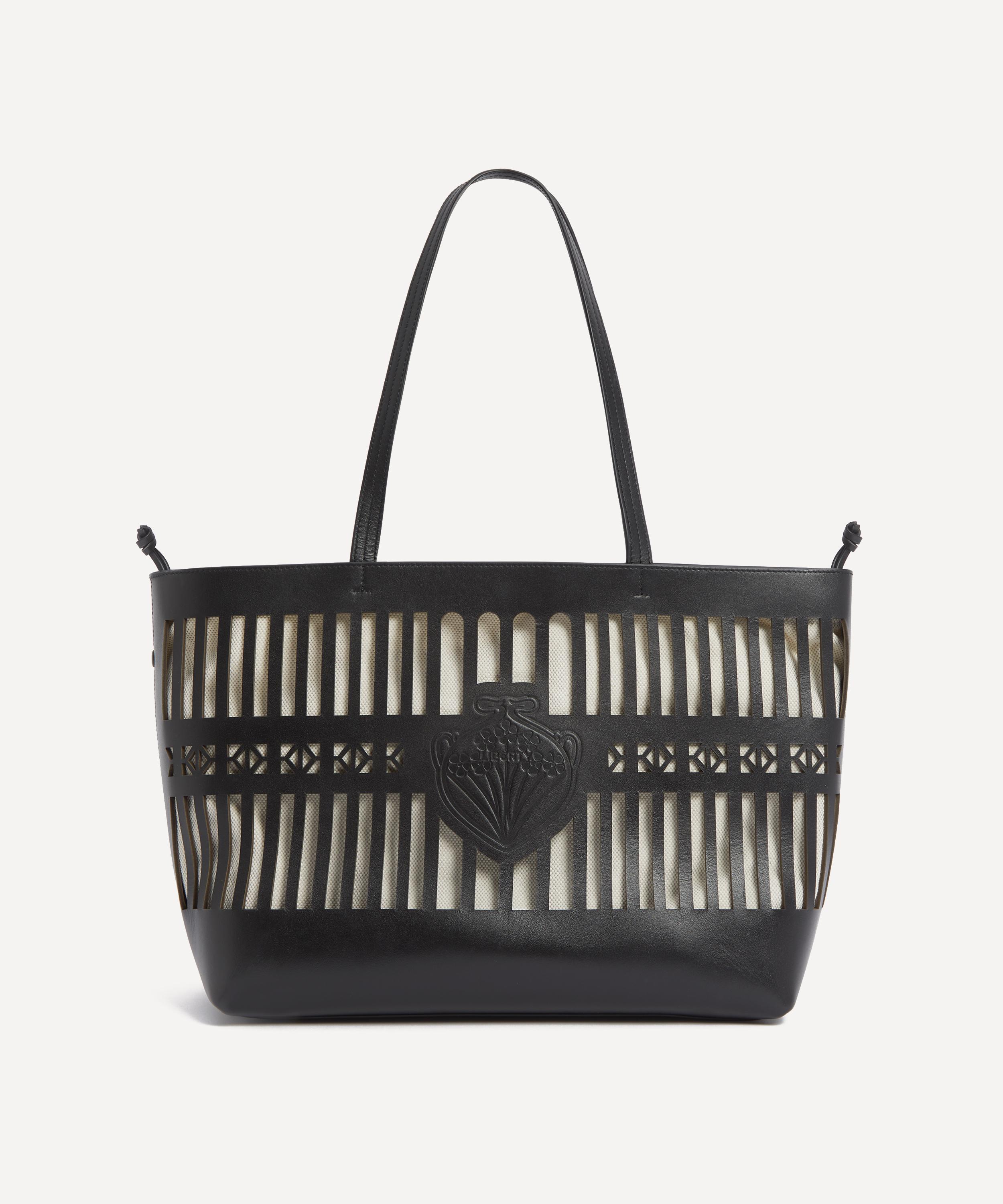 Inspired by Liberty’s rich history and heritage, it boasts a refined essential for life on the move, meticulously engineered with ample room for your daily essentials, while maintaining its sophisticated form. Crafted from bovine leather, using a unique laser-cut technique to resemble our Tudor building, it’s punctuated with our iconic Iphis emblem at the centre. The soft-lined interior is equipped with a removable canvas insert and drawstring closure to secure your valuables, whilst two top handles ensures comfortable, all-day carry – perfect for afternoon city strolls or days in the office.
