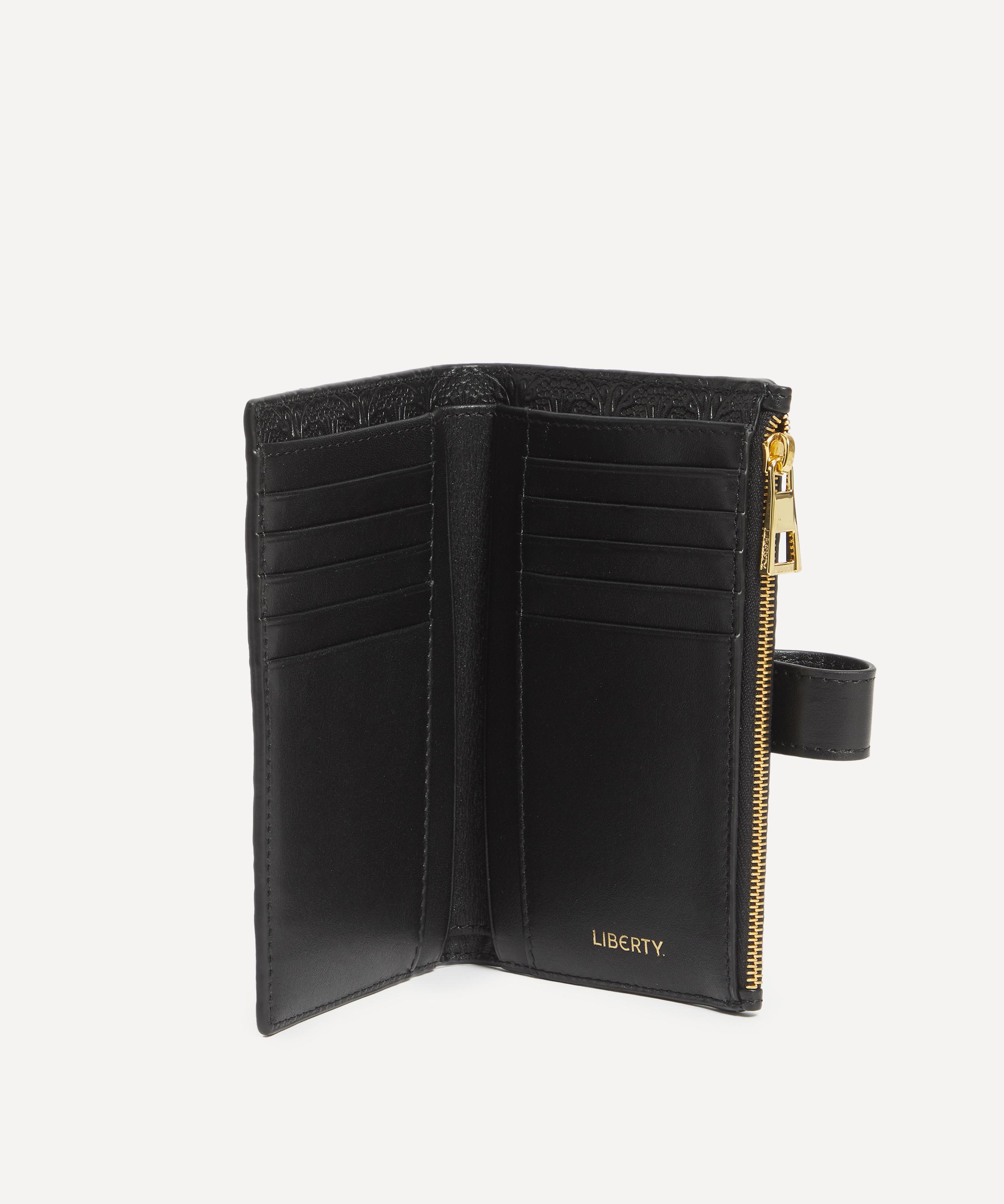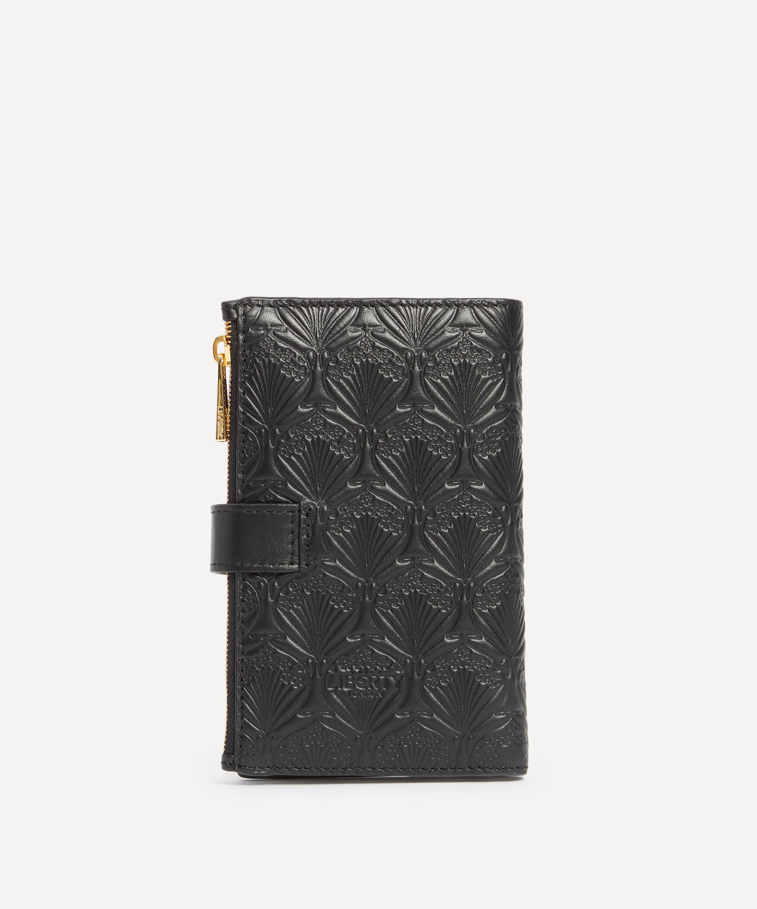 This zippedwallet easily keeps cards and cash organised while you're out and about – designed in the Liberty studio, here our Iphis motif is translated into a textural all-over stamped leather design.