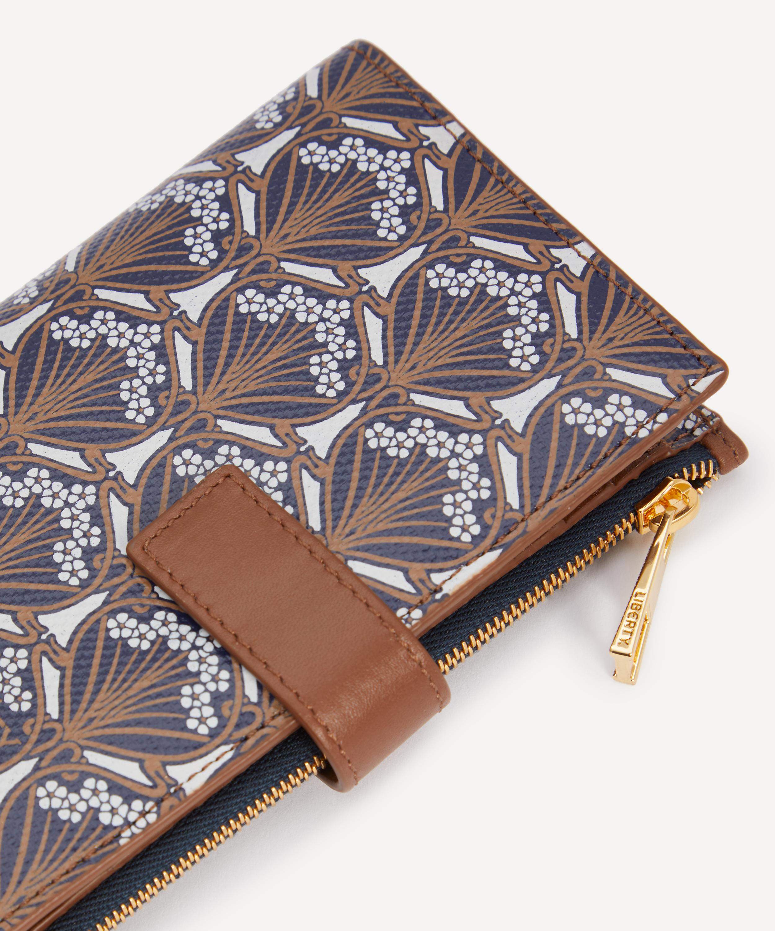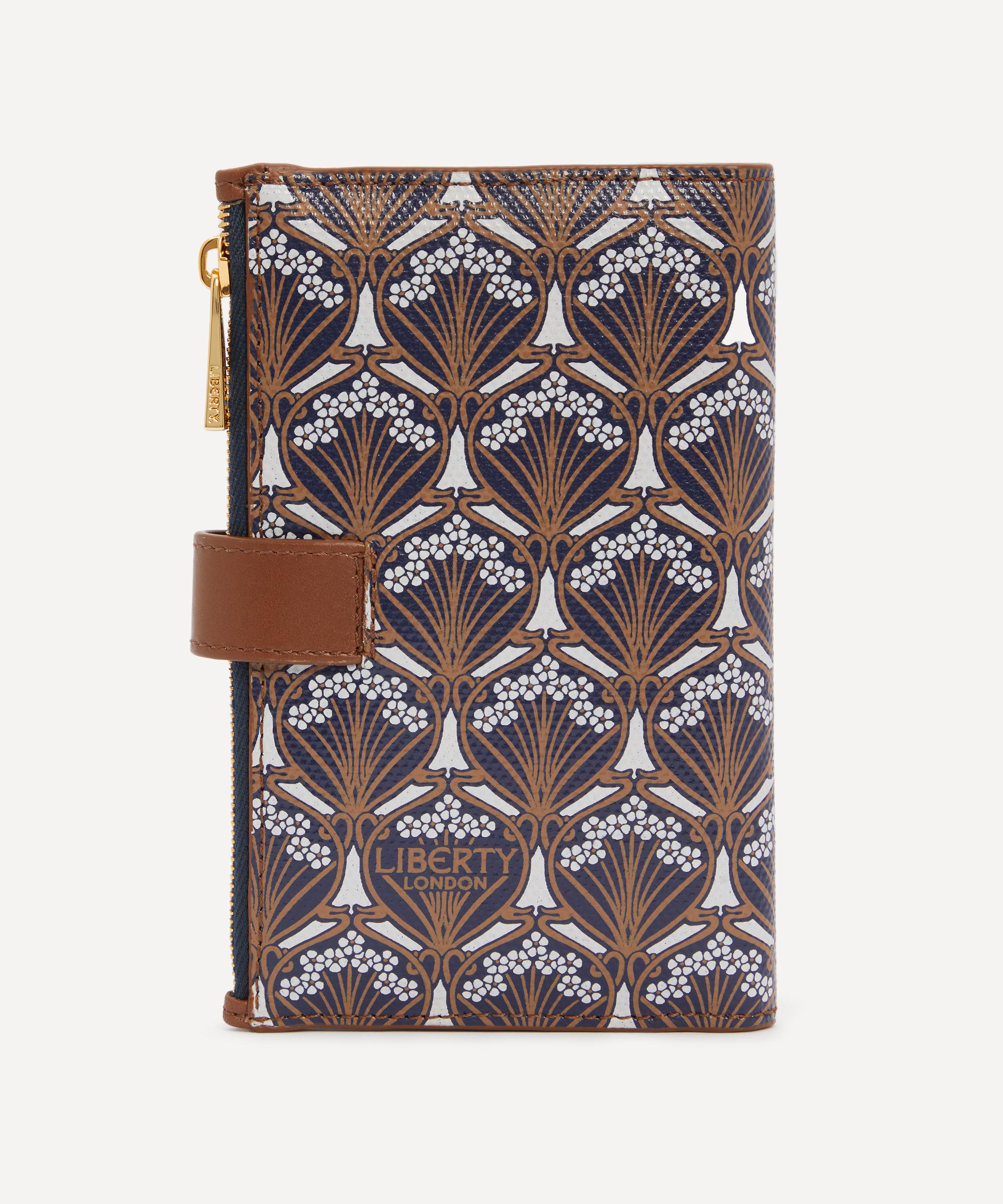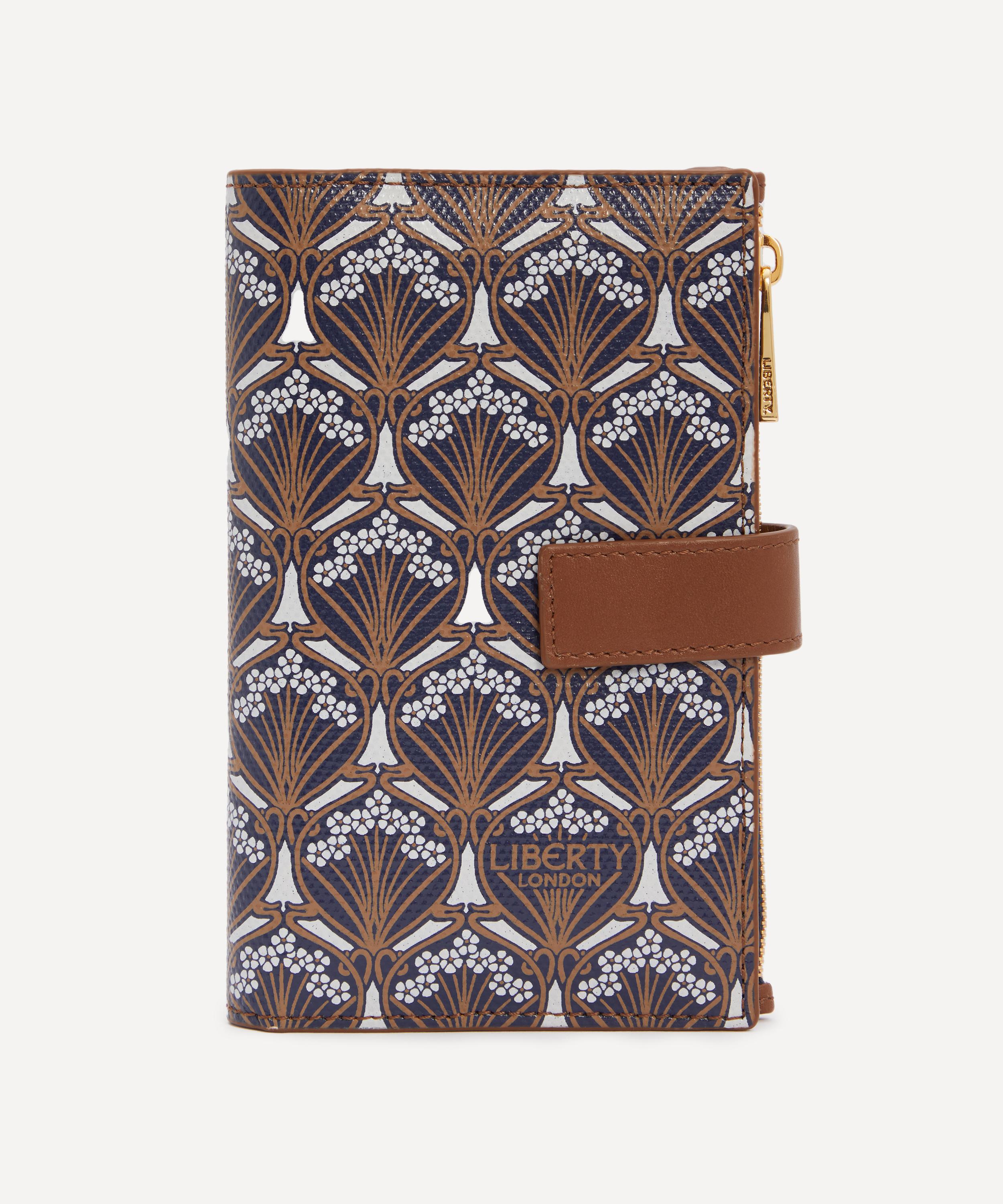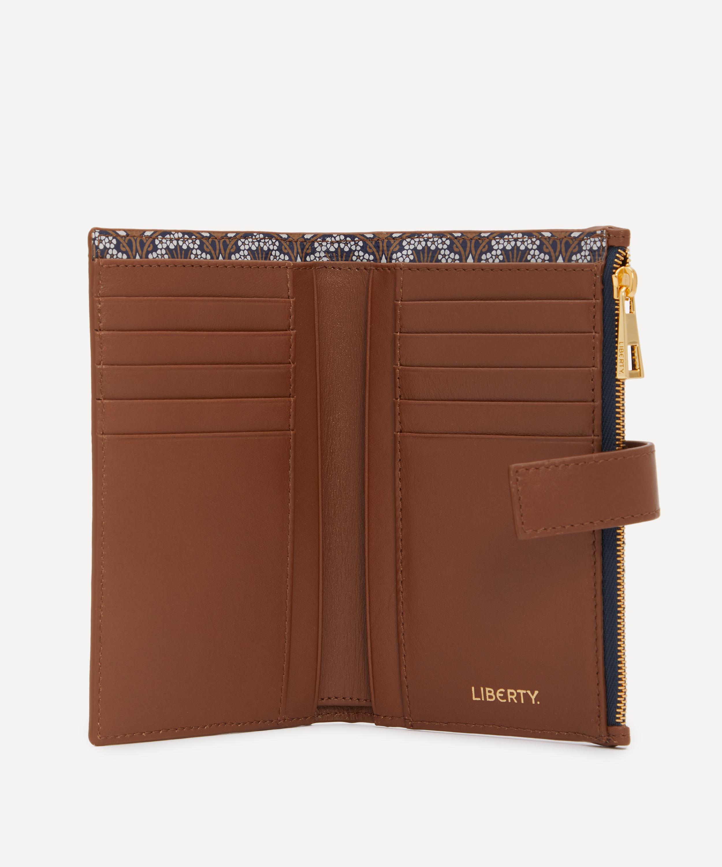 Keep cards and cash organised with Liberty’s Iphis Vertical wallet – offering an artful take on a classic daily essential. It’s practical and stylish design features a fold-over closure with a snap-button fastening, equipped with a zipped compartment for loose change and a slip pocket for larger notes and bills, whilst the ten card slots neatly store your cards. Complete with a branded jacquard lining, it never fails to provide a little pop of graphic colour.