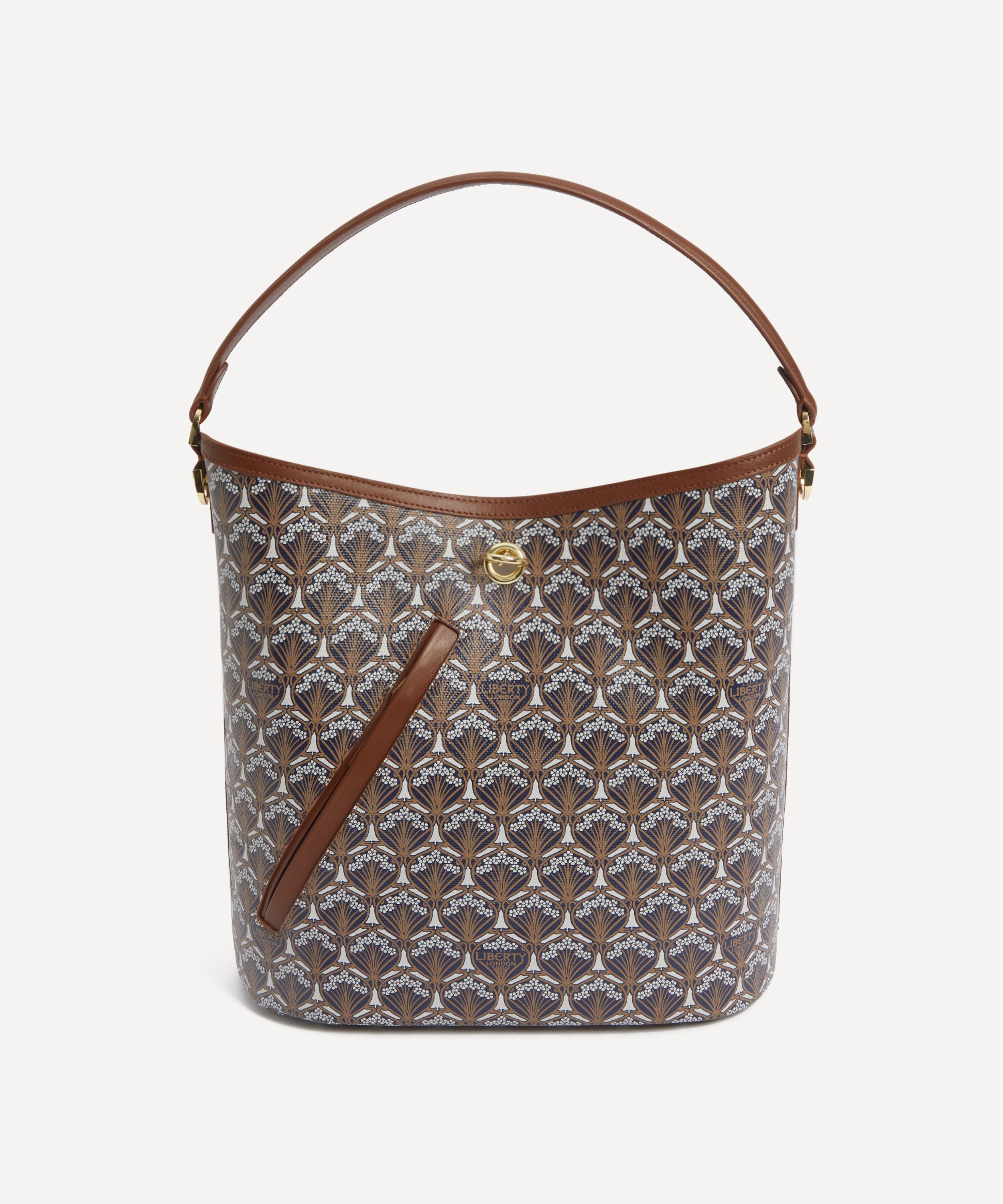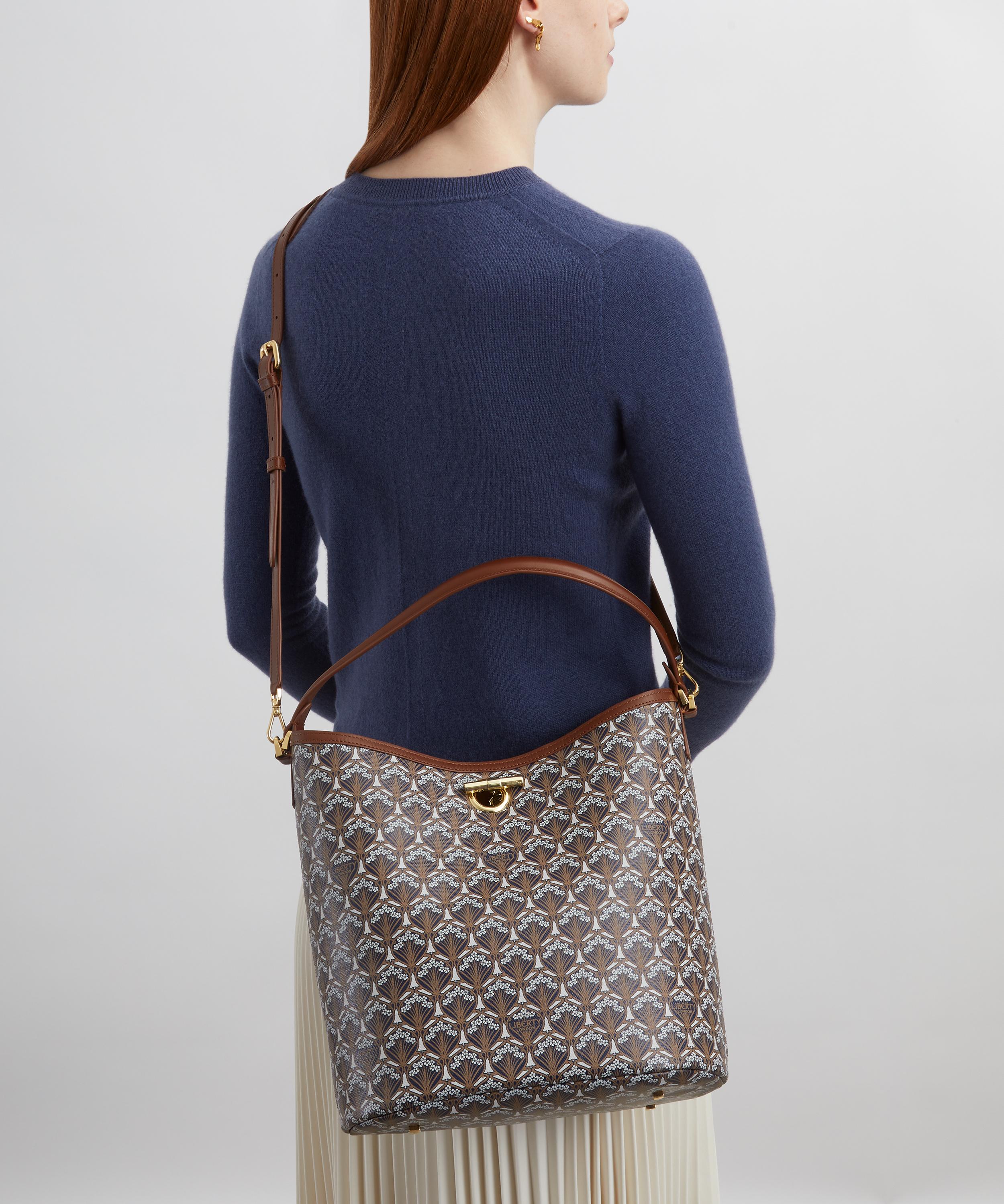 Elevate the appeal of any outfit with Liberty’s timeless and chic Iphis Wardour Shoulder Bag. Made with our screen-printed Iphis canvas and leather lining, it features a refined and versatile bucket silhouette perfect for everyday use. With ample interior space, including pockets, this practical bag is secured by a T-bar and chain lock closure, inspired by our Tudor building’s chimneys. Complete with an adjustable shoulder strap and lightly padded top handle, it boasts a true icon, a luxury investment piece that can be styled with everything, designed to last season after season. Style it in the crook of your arm, by the top handle or sling it across your body.