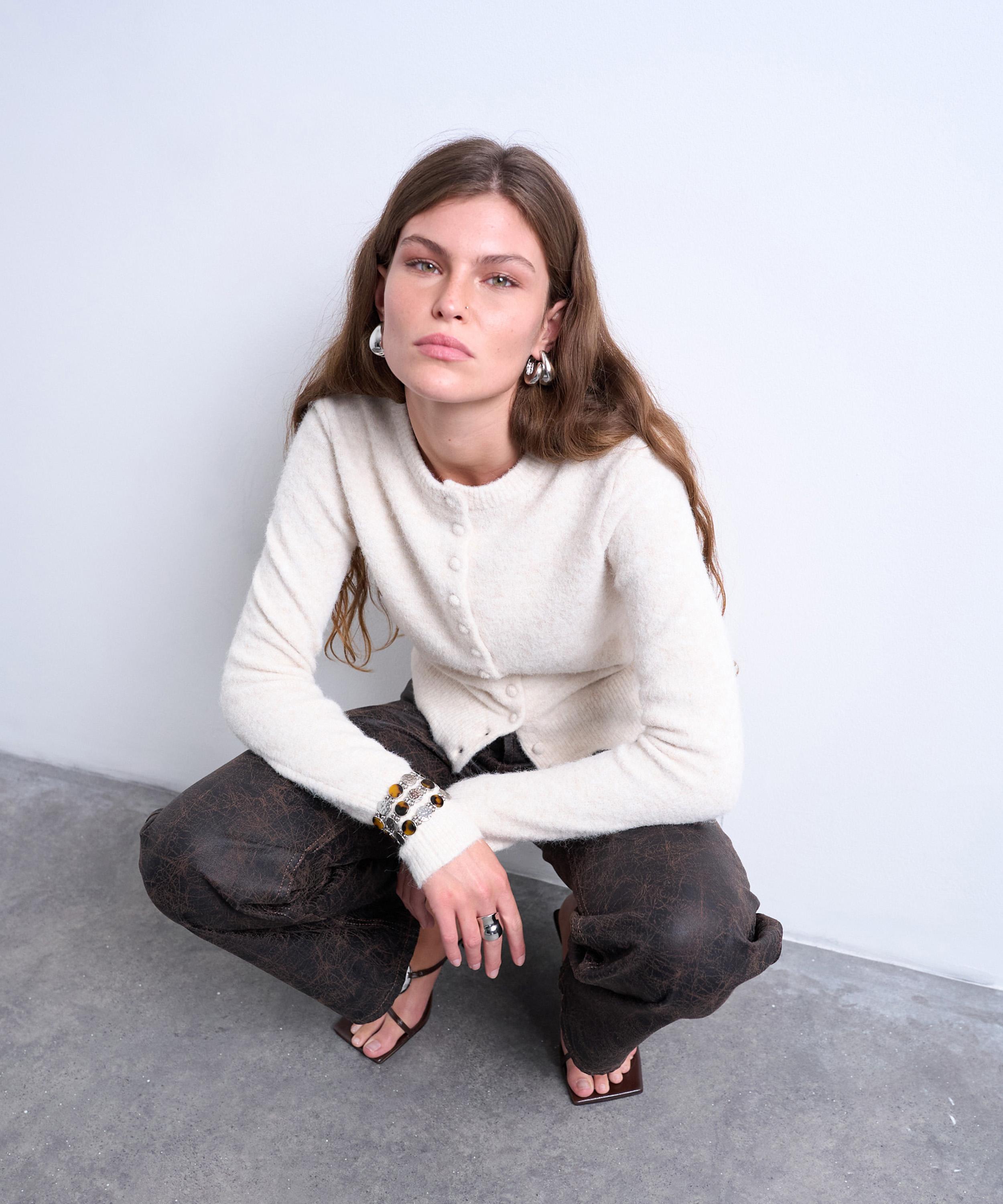 This Ivory Knitted Covered Button Cardigan is part of the exclusive Liberty x TOPSHOP residency, marking TOPSHOP’s highly anticipated relaunch at Liberty.