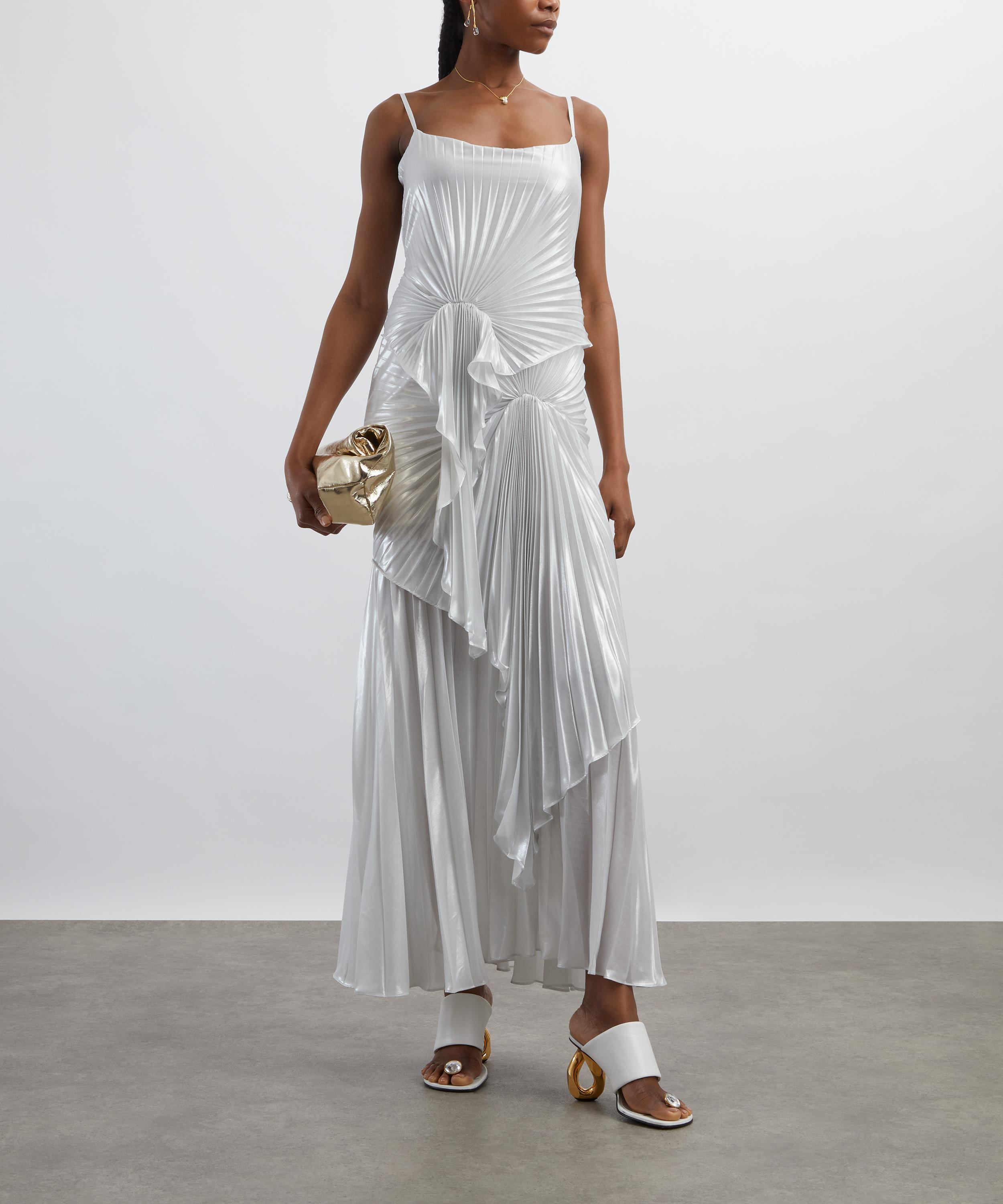 - Pleated floor-length dress