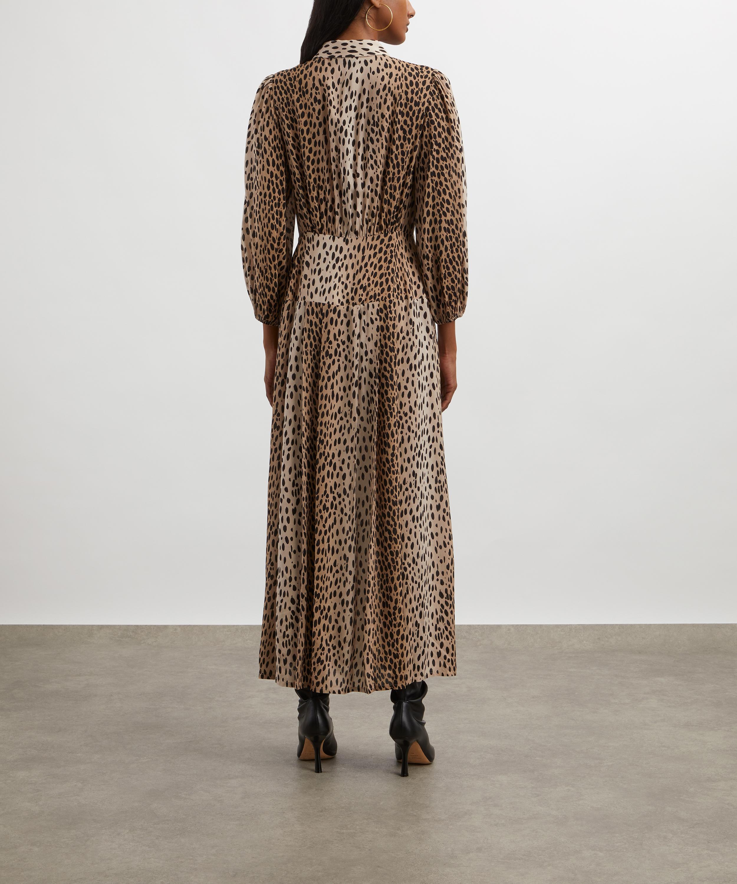 Every piece by RIXO is a bold statement rooted in timeless design. Crafted from a silky smooth viscose-crepe in a antelope spot print, the Izzy dress is elegantly shaped to a flattering straight fit with pleated detailing below the waist for a bit of volume. A classic button-down design with long sleeves and elasticated cuffs, it has a fitted waist and a crew neck collar that looks great buttoned up or left open. Simply pair it with simple heels for an eclectic evening edit, or team it with trainers for work and everyday wear.