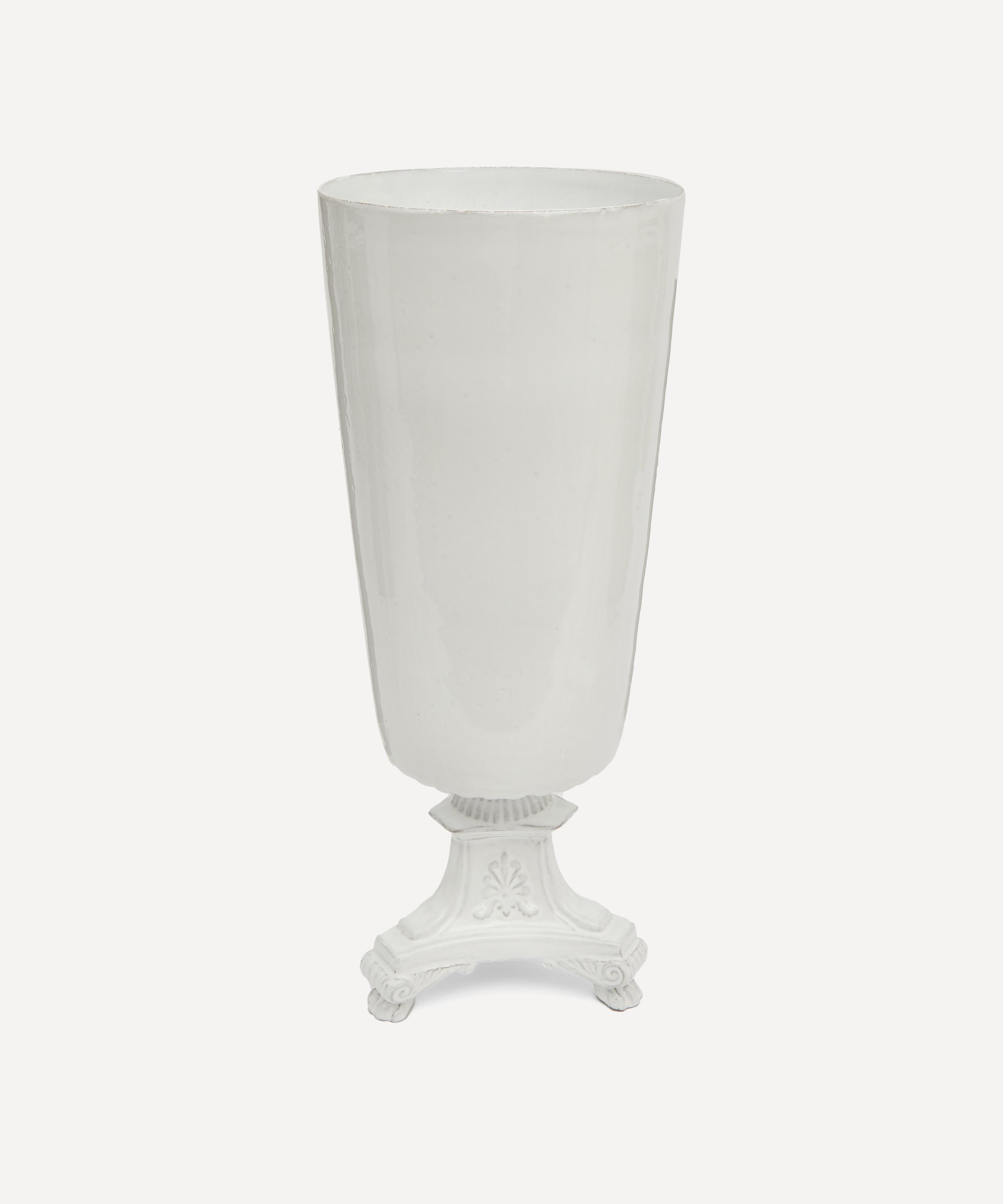 Votary of pre-industrial fabrication, Astier de Villatte is celebrated for being the one and only studio in Paris to hold and harbour the traditions of artisanal ceramic production. Restoring the ancestral systems of moulding and stamping, the Jasmine vase is made using techniques from the Middle Ages which involve moulding a sheet of handmade clay, double firing the ‘biscuit’ piece and glazing the product in white enamel – a lengthy process that requires a drying time of up to one month. Characterised by John Derian’s jasmine découpage and an opulent base, the vase is engraved with the brand’s signature crest - depicting an interlacing A & V - alongside the initials of one of the 40 master artisans who created it. Each handmade piece tells a beautiful story, it romances and imparts a sense of nostalgia into its owner. Pair with other ornate pieces from the John Derian collection for a coordinated decorative approach.