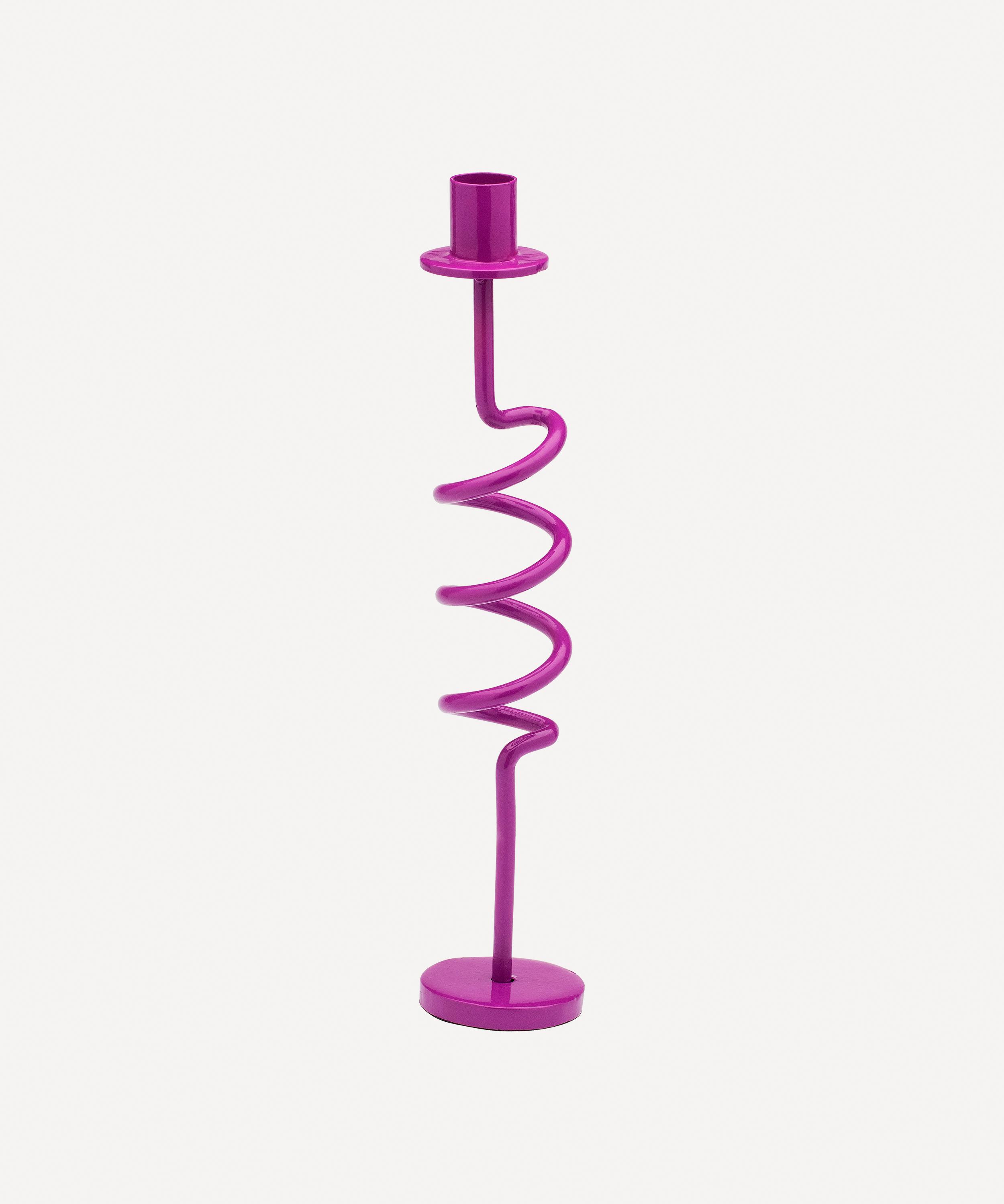 Presenting a playful spiral stem, this fun candle holder is crafted from brass with a vibrant pink finish – an eye-catching piece to adorn your tabletop with.