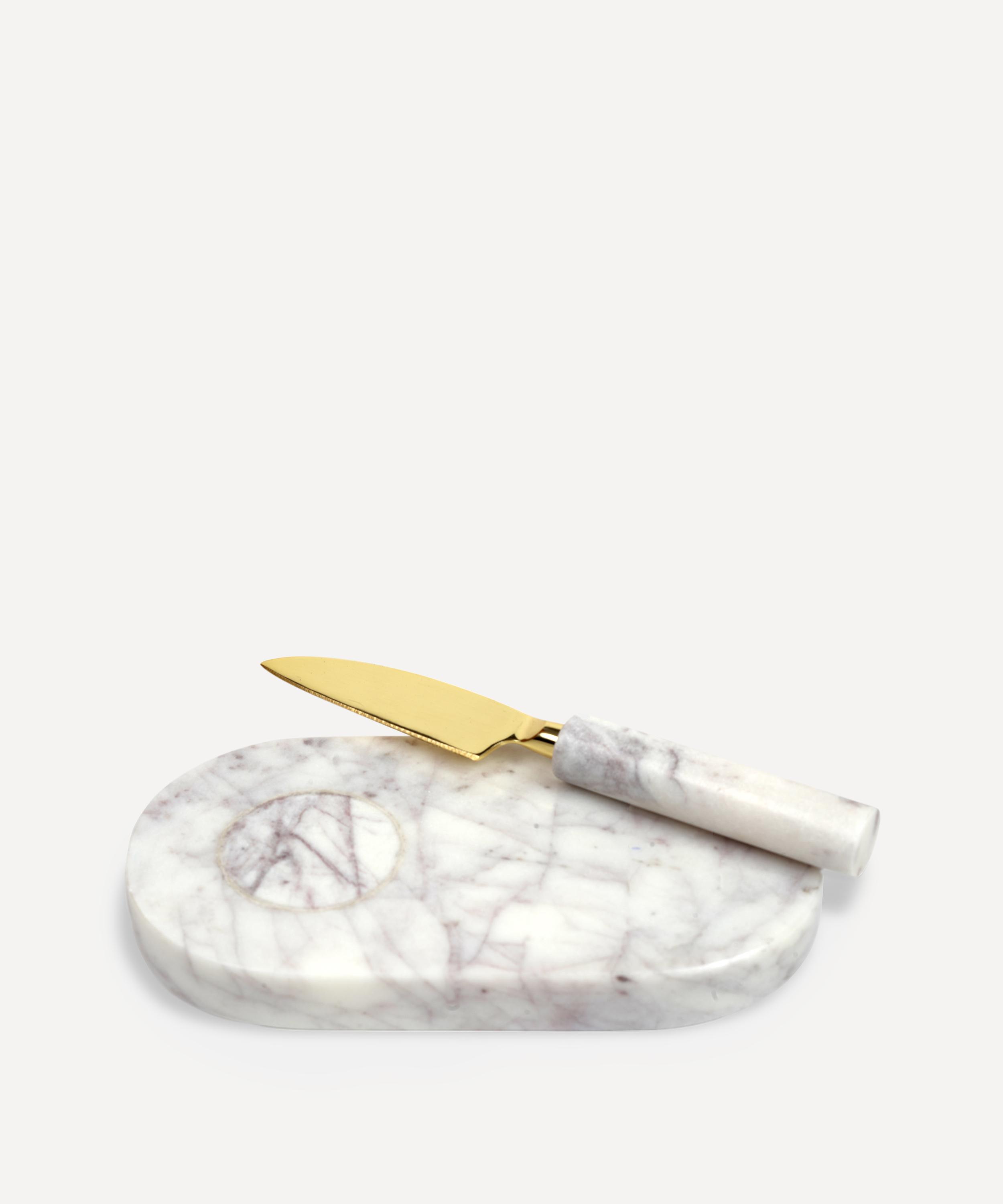 Bring a sophisticated dose of natural texture to your kitchen décor with Soho Home’s Jermyn small chopping board, expertly crafted from solid marble and complete with a knife.