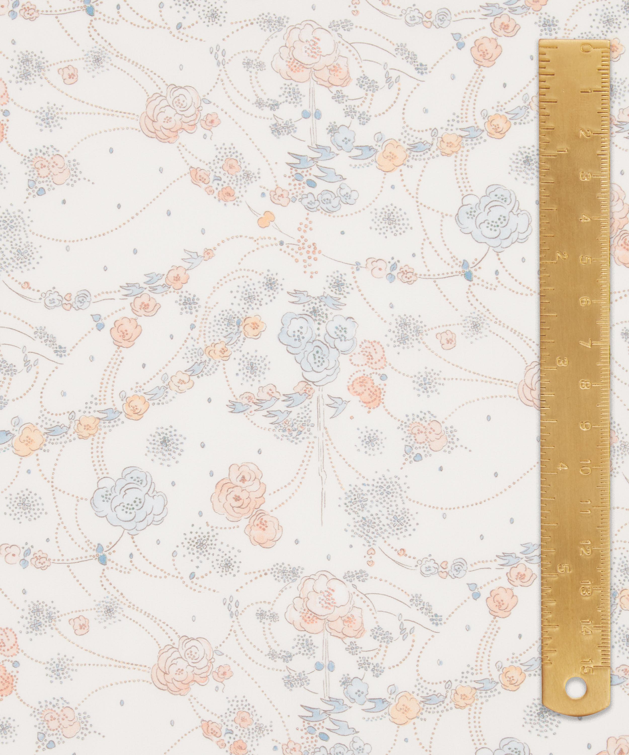 Jessie Nouveau’s whimsical design combines original motifs taken from artworks created by artist and illustrator, Jessie M. King, during her time working for Liberty. Evocative of the Art Nouveau style, sinuous dotted lines, blossoming florals, dainty birds, hearts, and berries appear to gently move across the fabric.