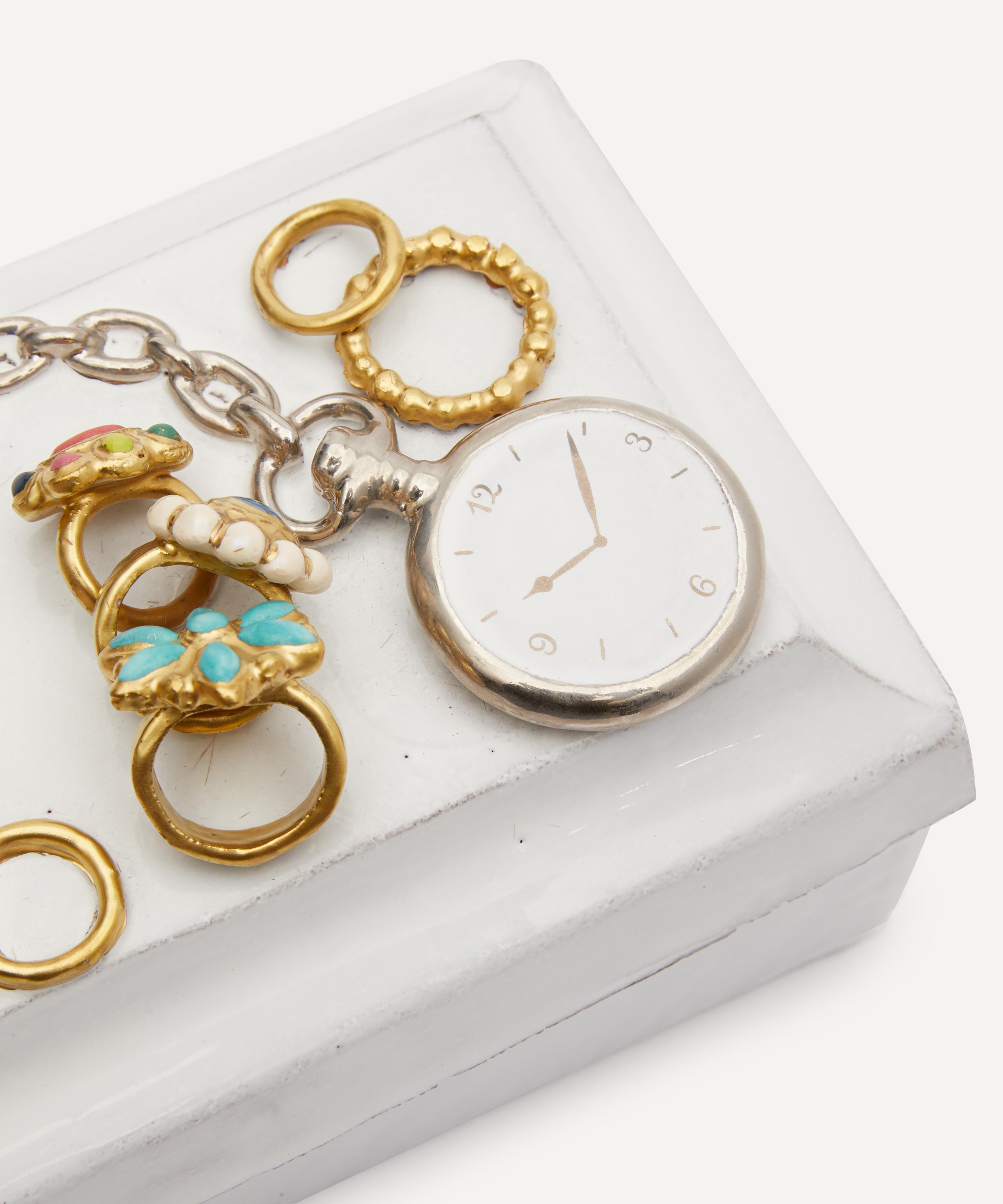 Votary of pre-industrial fabrication, Astier de Villatte is celebrated for being the one and only studio in Paris to hold and harbour the traditions of artisanal ceramic production. Restoring the ancestral systems of moulding and stamping, this jewellery box is made using techniques from the Middle Ages which involve moulding a sheet of handmade clay, double firing the ‘biscuit’ piece and glazing the product in white enamel – a lengthy process that requires a drying time of up to one month. Adorned by sculpted treasures scattered across the lid, the box is finished with the brand’s signature crest – depicting an interlacing A & V – engraved alongside the initials of one of the 40 master artisans who created it. Each handmade piece tells a beautiful story, imparting an irresistible sense of nostalgia. Use it to give your dressing table an authentic French mood, whilst keeping your jewels safely stowed away.
