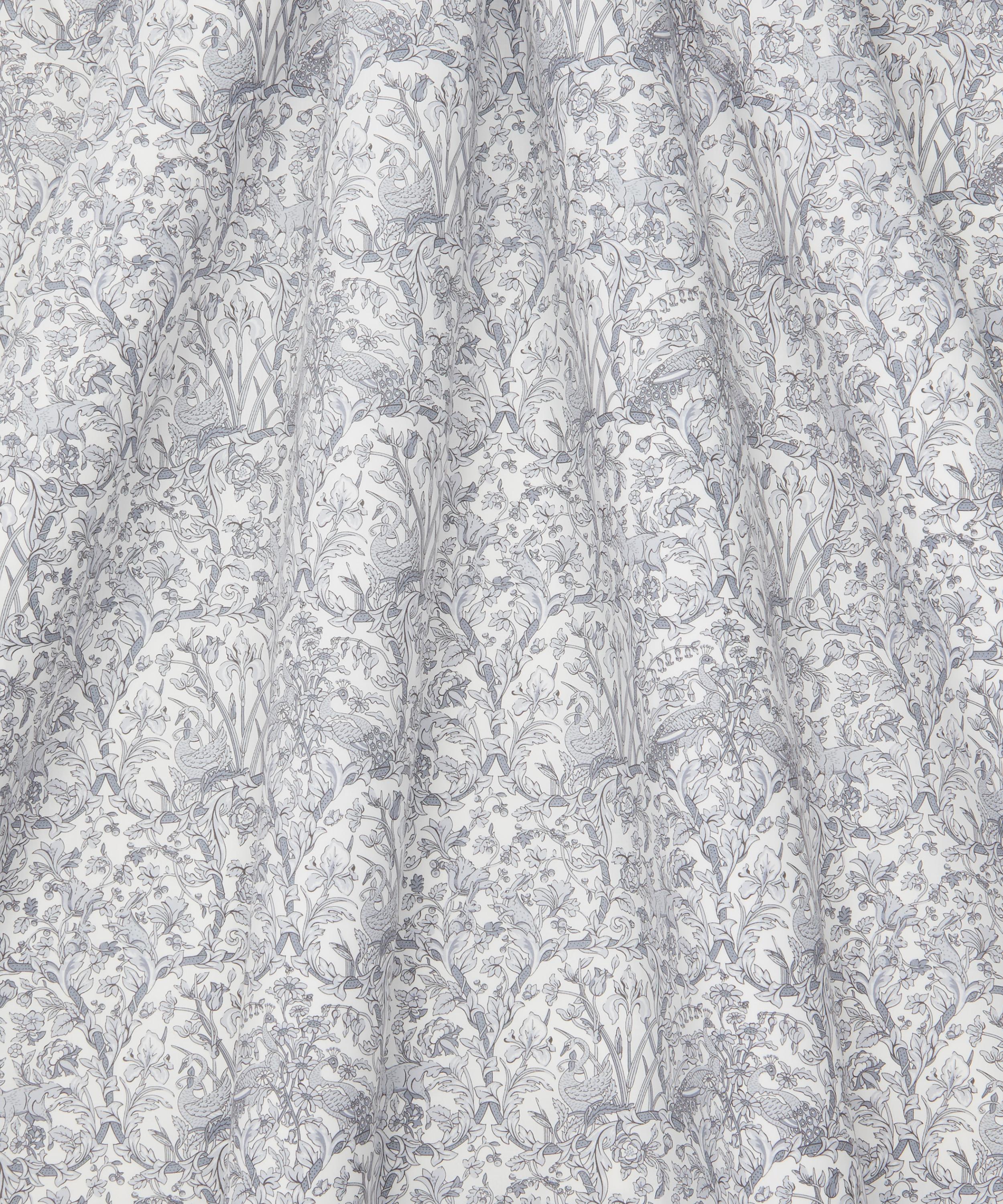 A tonal version of design Joan, this sophisticated conversational tells a poignant story of collaboration across generations. Hand-painted in the Liberty studio, Joan’s Seasons is a modern iteration of Walter Crane’s timeless ‘The Four Seasons’ furnishing fabric. Framed botanical vignettes depict distinct landscapes teeming with flowers and a lively cast of characters such as peacocks, butterflies, swans, hares, frogs, bees, and deer. This print is part of the second chapter of this collection, Collaboration, which reflects the current design team’s celebration of the techniques and styles of their predecessors - bridging the gap between past and present.