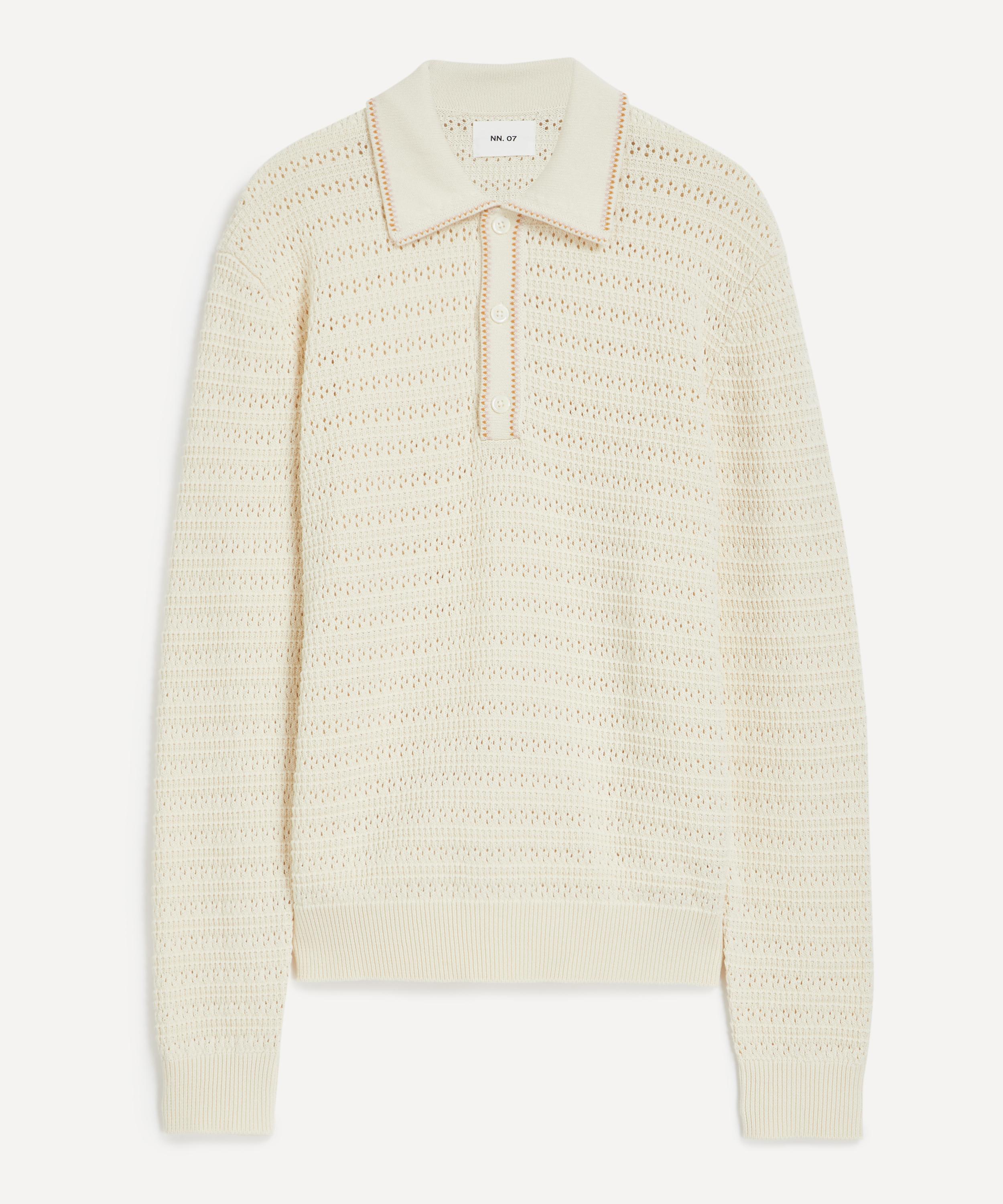 Copenhagen-based label NN07 reinterprets classic tailoring with a modern edge in Josh Cotton-Knit Polo Shirt.