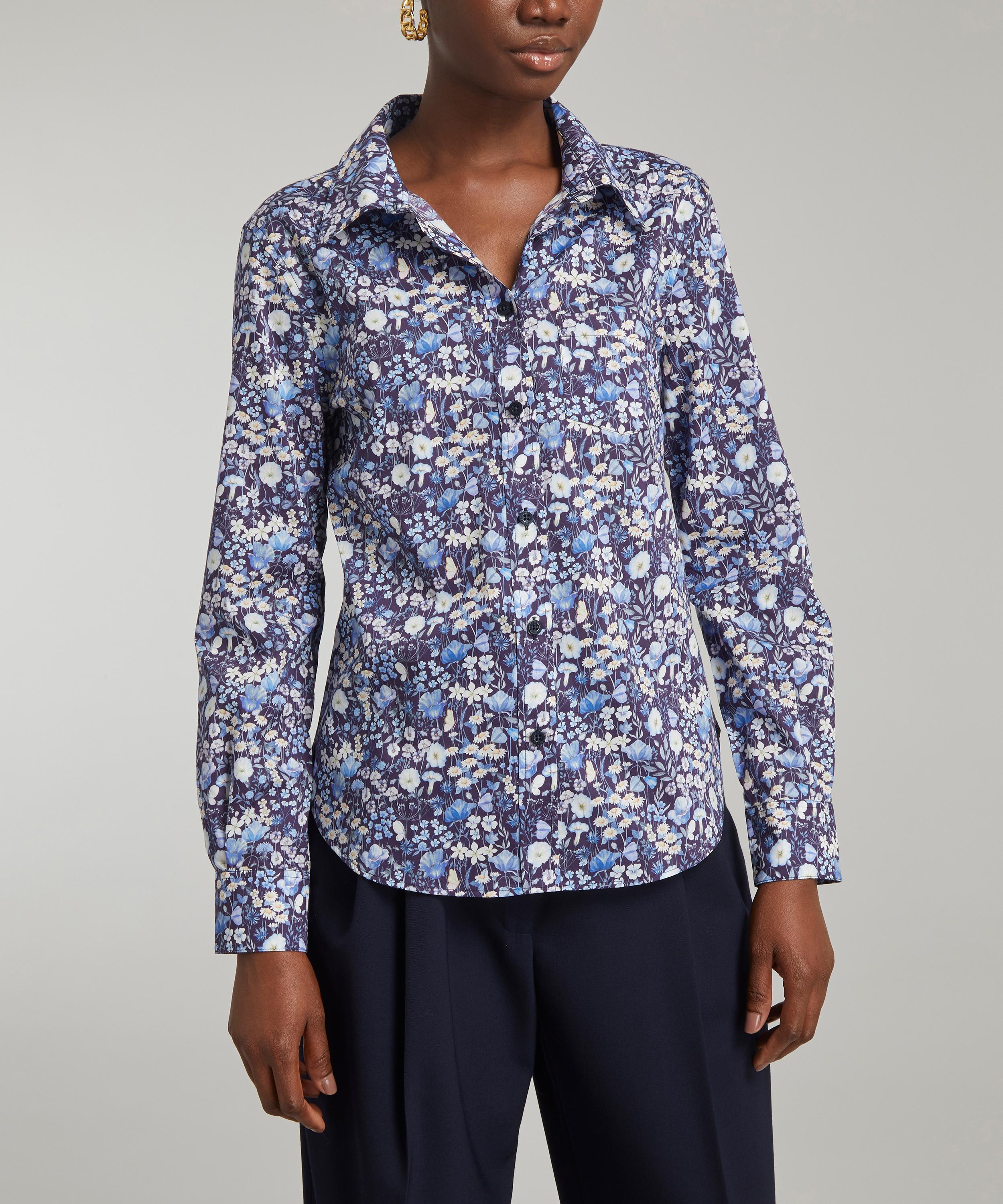 Master daytime cool with this iconic Liberty shirt. Its construction from Tana Lawn™ cotton provides a colour-rich surface and smoothly soft hand-feel, perfect for wearing directly against the skin, while chest darts provide a flattering fit. This shirt features our Judes Floral print - created in watercolour paints, British wild flowers including: daisies, buttercups, poppies, violets, apple blossom, cornflowers, harebells, red campions and geraniums, alongside various grasses, create this botanical design. Let this dappled burst of colour and print lead as your ensemble’s statement piece on dress-down days – pair with tailored high-waisted navy trousers for a slick, sartorial aesthetic with a retro-tinged edge.