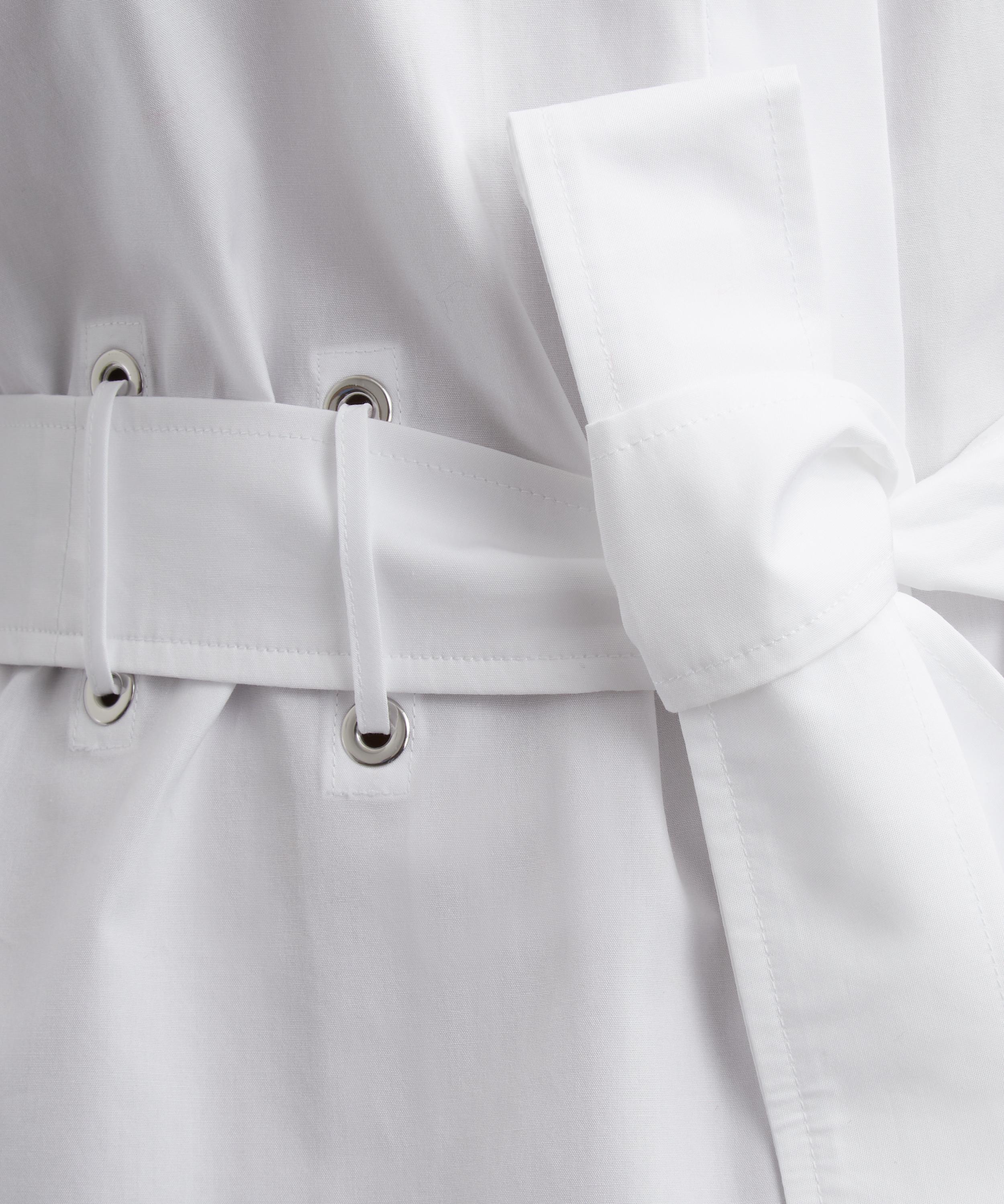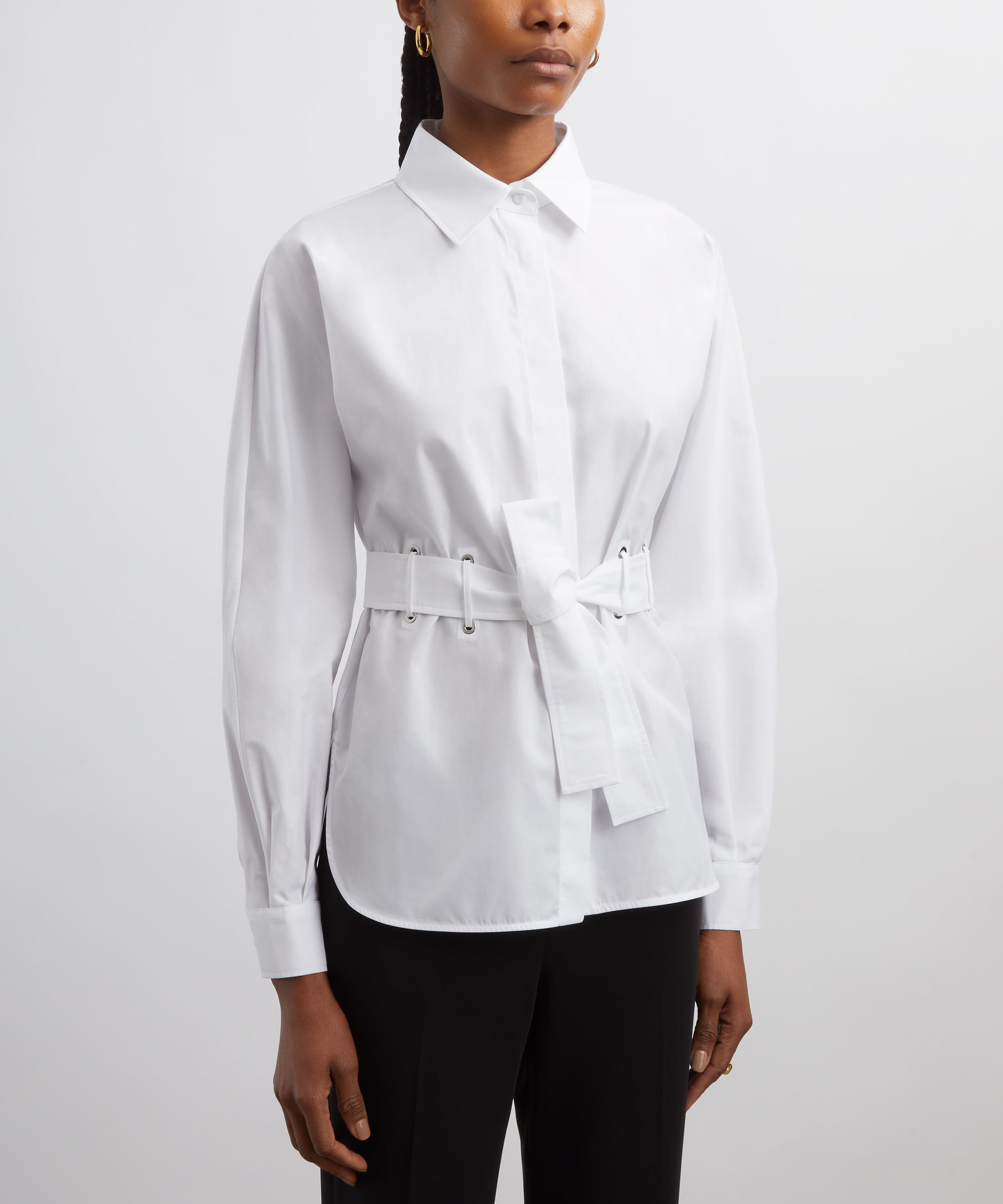 Crafted from crisp cotton poplin, the Juglas Shirt is cinched at the waist with a detachable belt threaded through six laces, creating an effortlessly flattering silhouette.