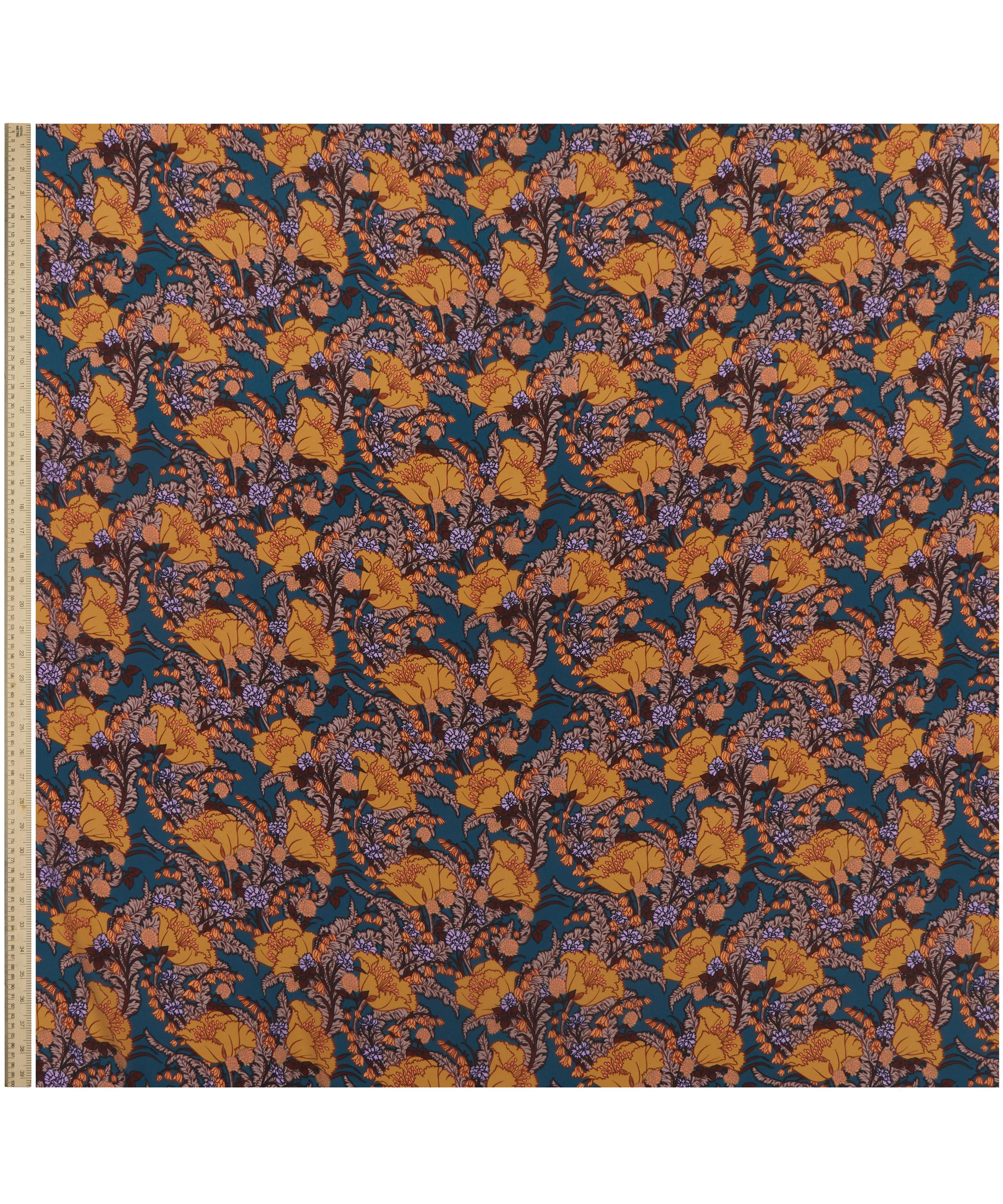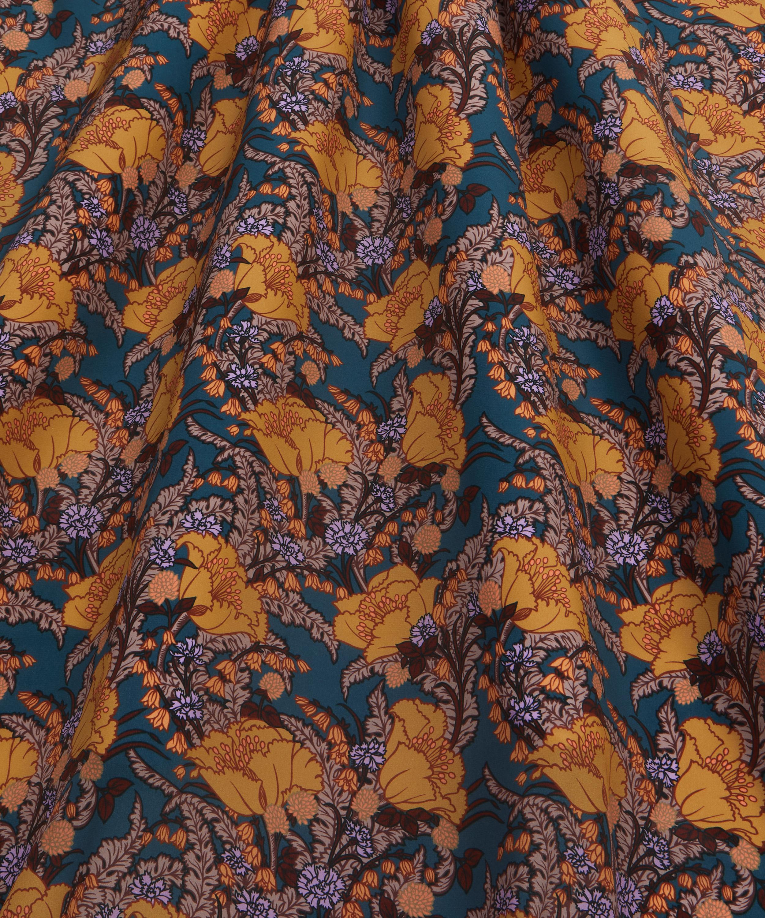 June Dream is a tribute to one of Liberty’s signature flowers- the majestic poppy. Hand-painted as a furnishing fabric in 1969, this sophisticated botanical is a modern interpretation of a typical Arts and Crafts style design. Elegant poppies, sinuous foliage, flowering clover, delicate cornflowers, and charming bluebells are highlighted by richly coloured grounds and crisp outlines.