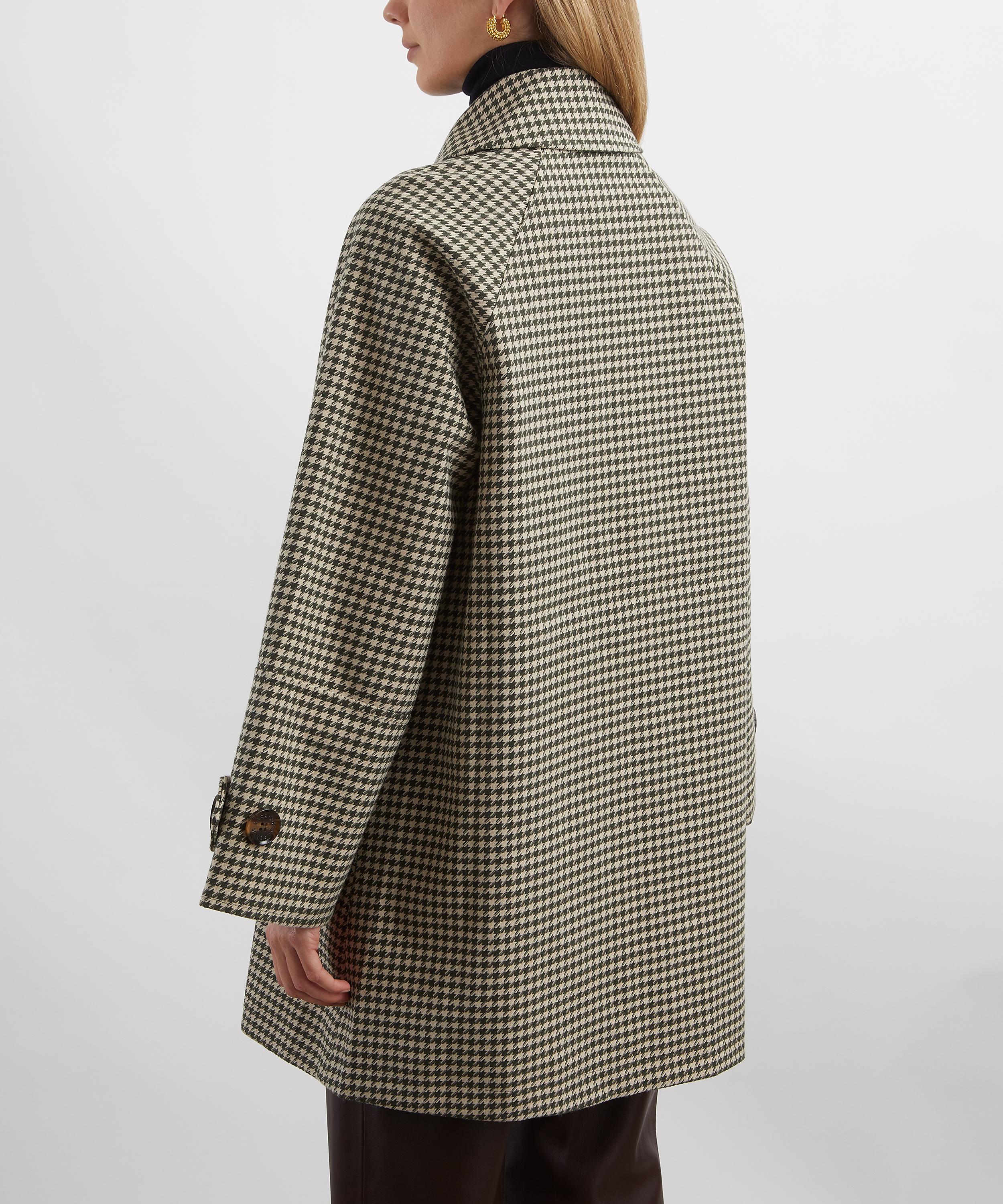 The Kennedy Houndstooth Showerproof Car Coat delivers a modern twist on the classic silhouette. Its striking check design, signature 50L button at the neck, concealed stud fastening, and generous welt pockets strike the perfect balance between style and practicality, while deep cuffs with button-tab detailing add a refined finish.
