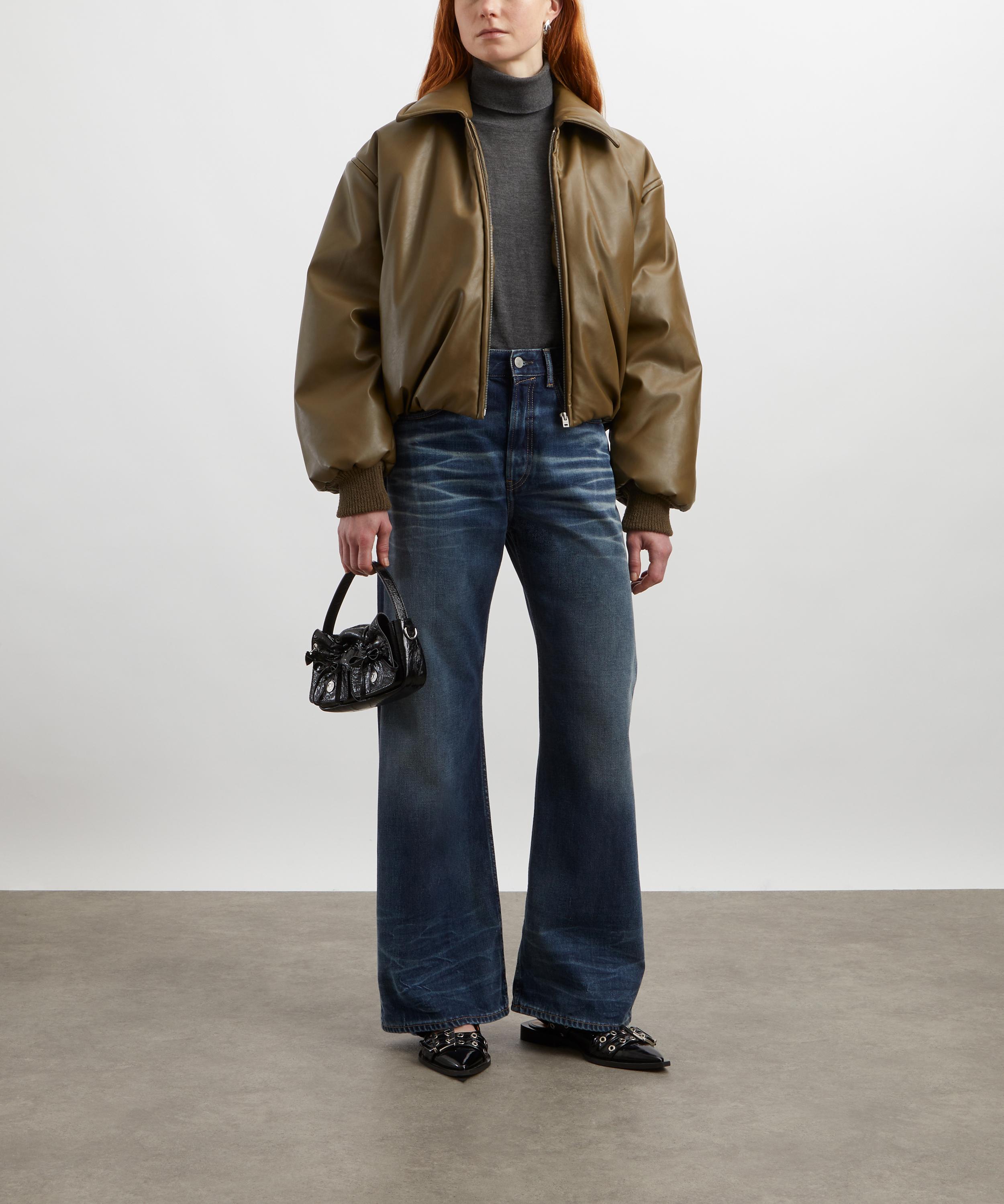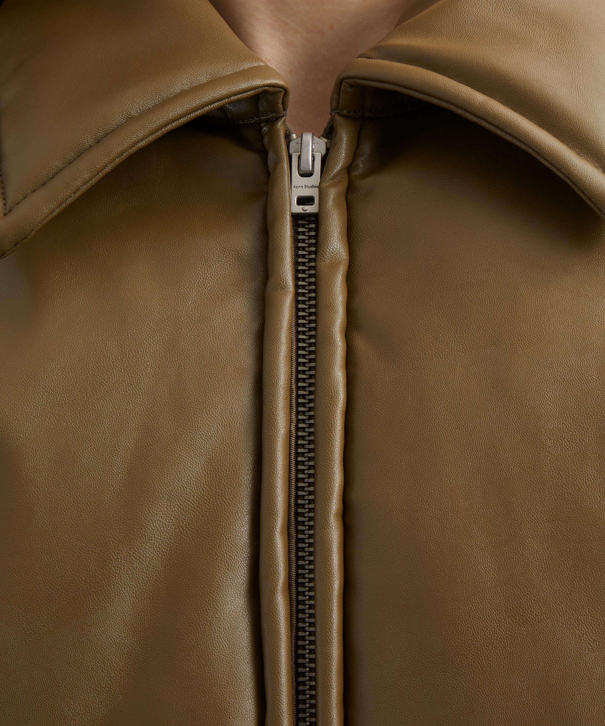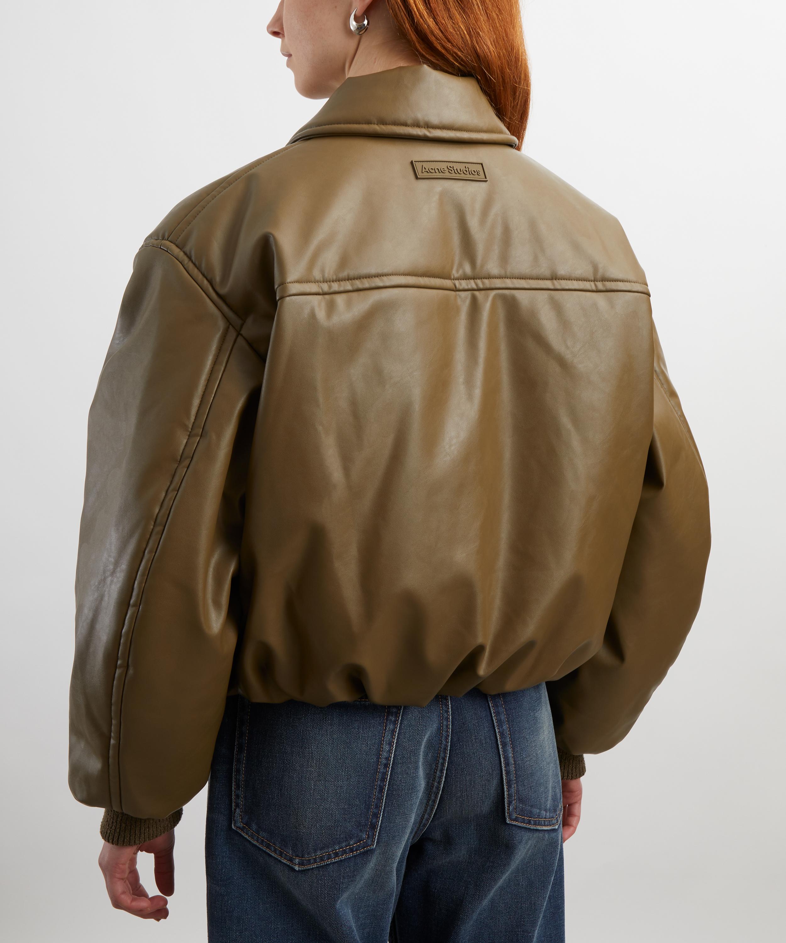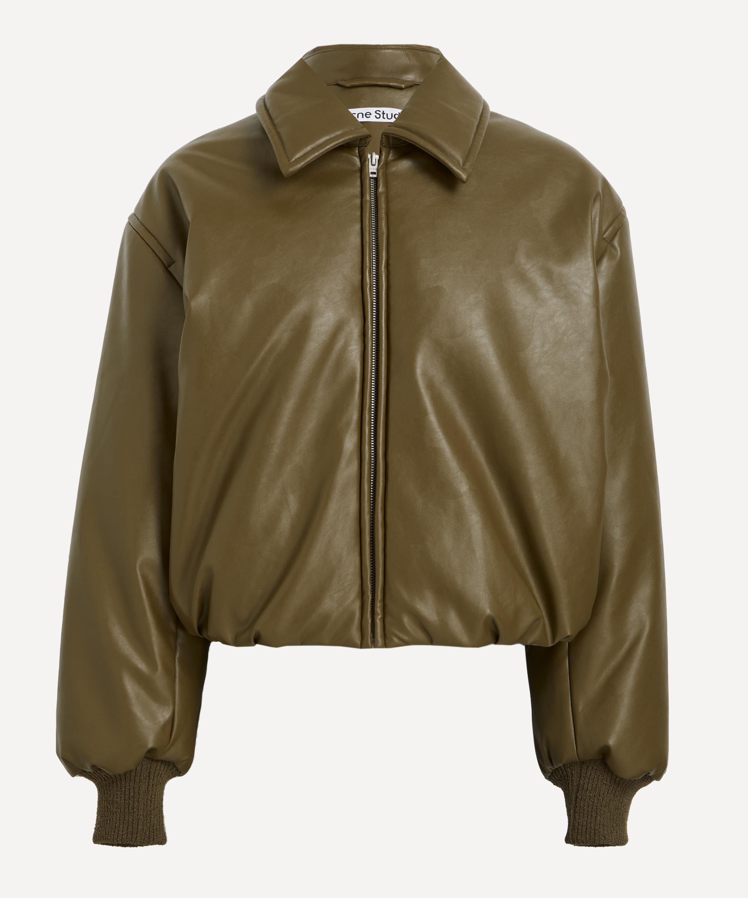 With a boxy, relaxed fit, dropped shoulders, and a sleek coated leather finish, this khaki bomber jacket embodies Acne Studios’ signature approach to elevating timeless classics with a modern twist.