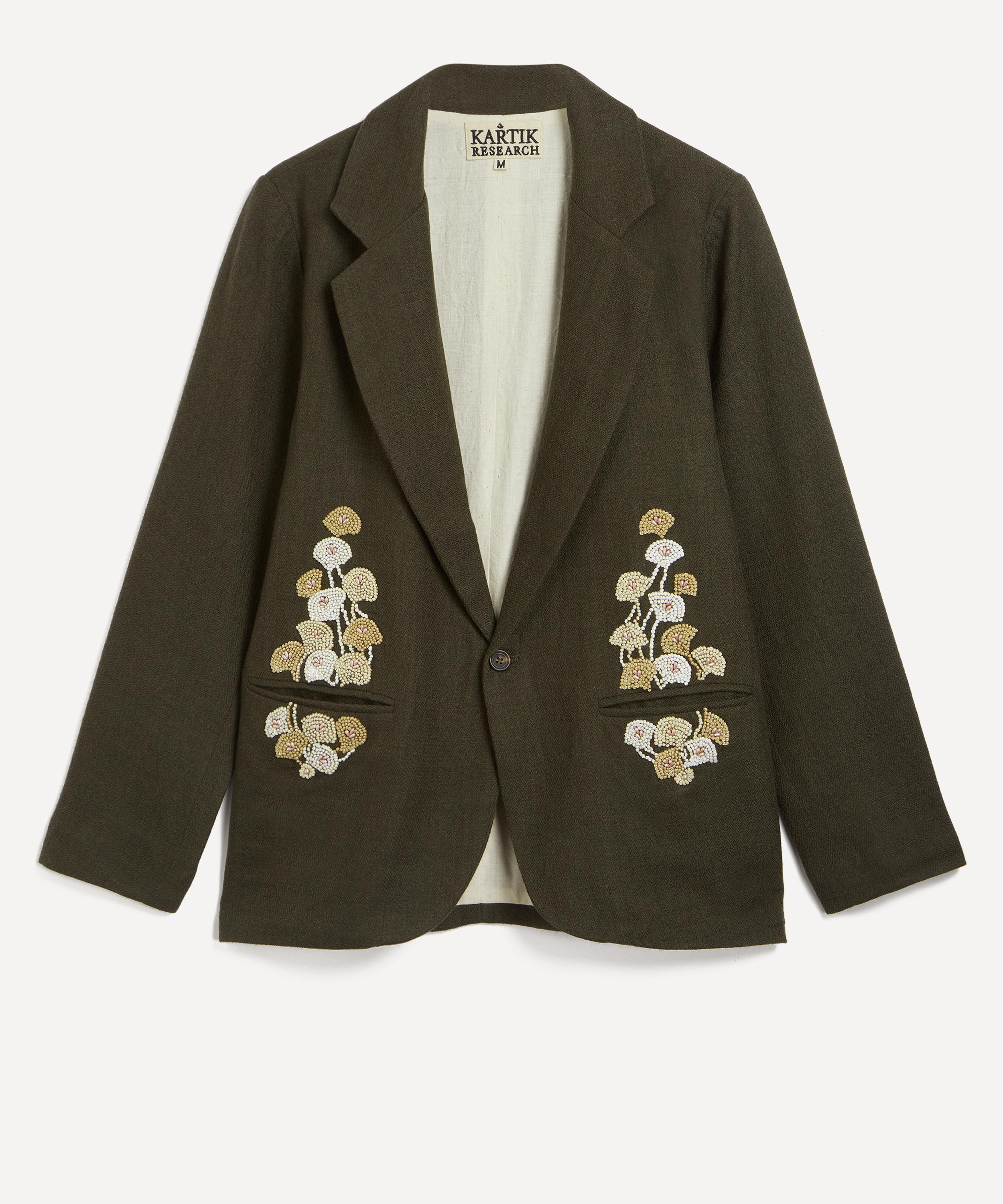 A celebration of craft and cultural heritage, Indian brand Kartik Research works closely with local artisans to create the Khaki Hand-Embroidered Blazer.