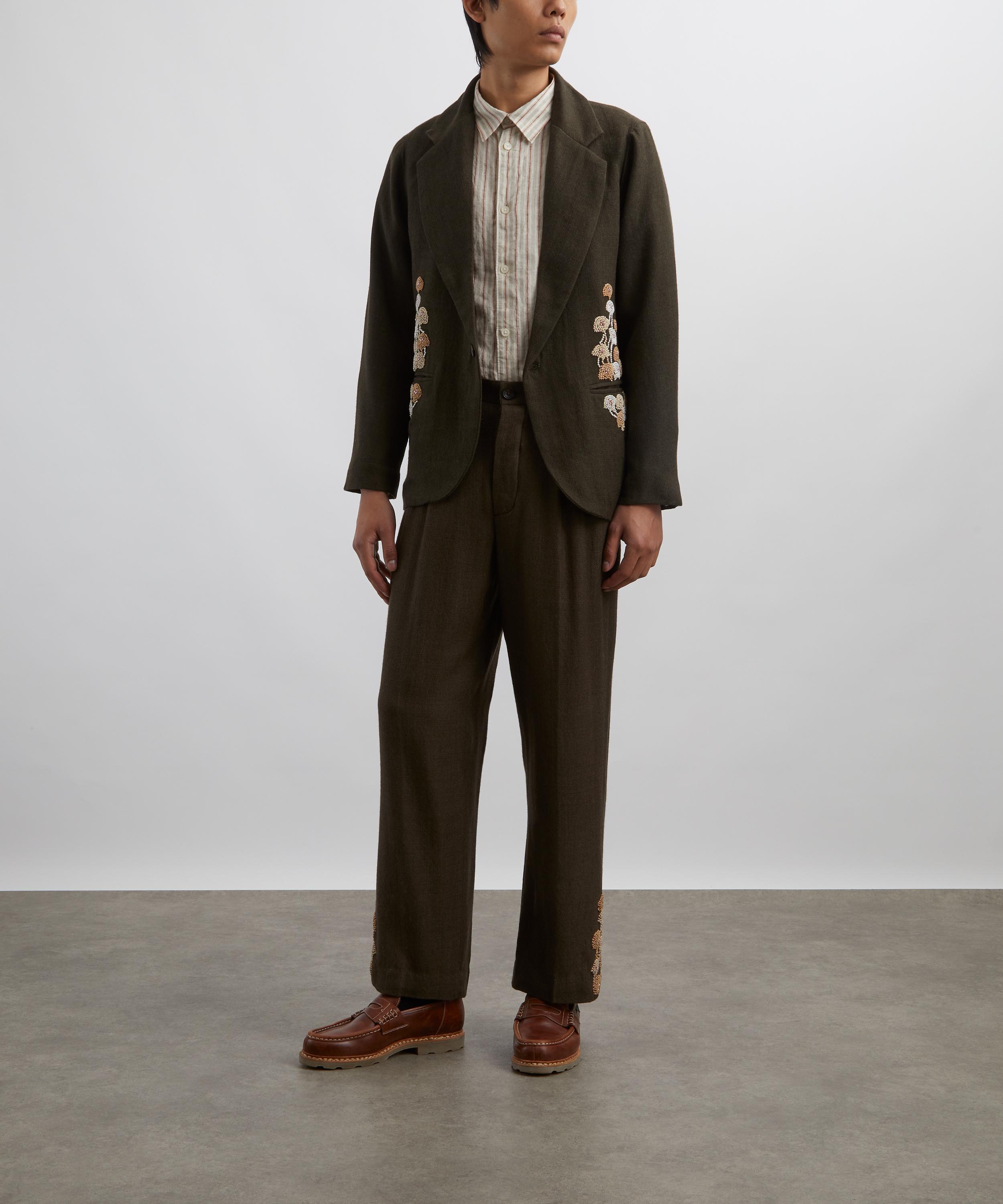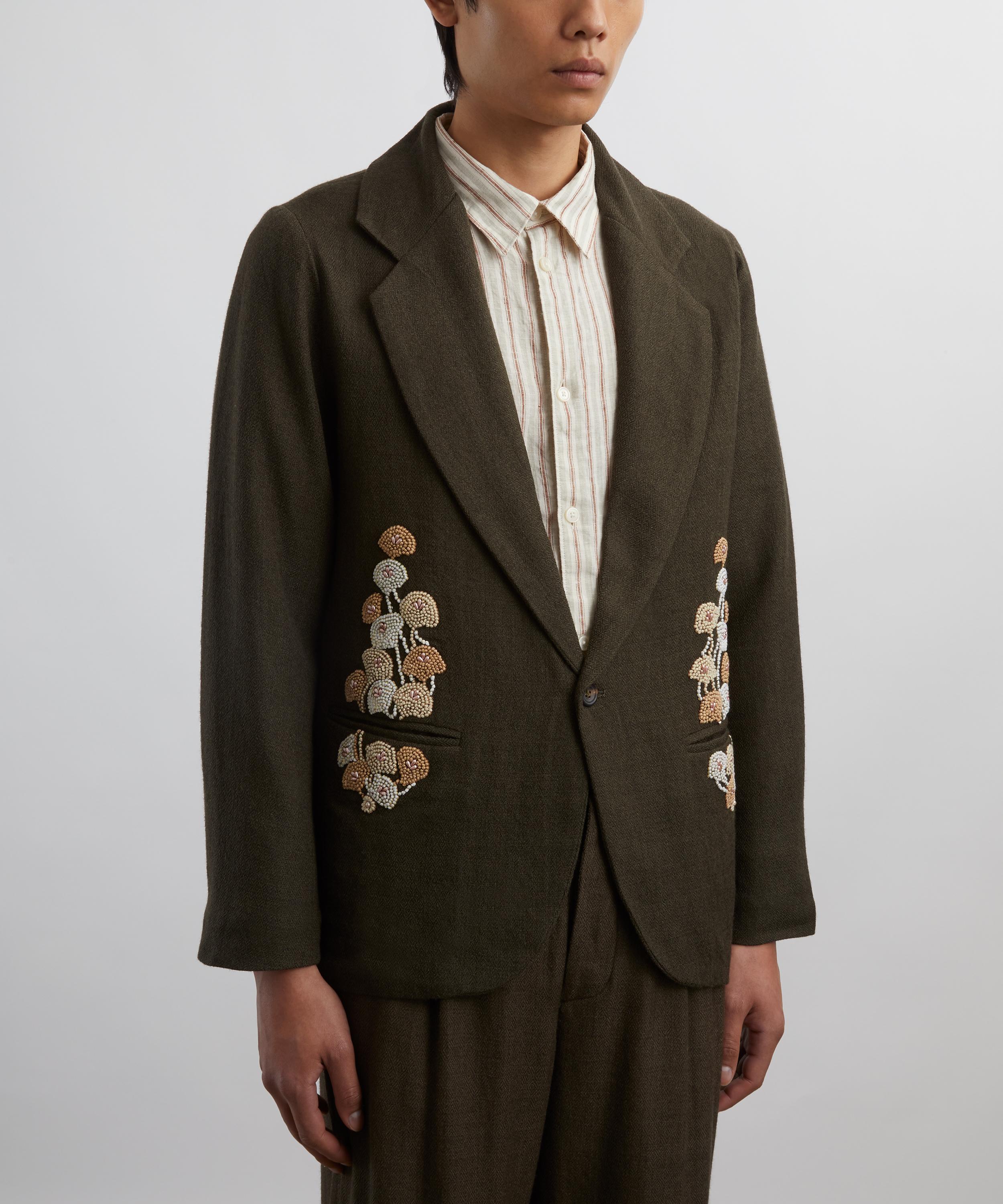 Exclusively made for Liberty, this wool herringbone blazer is embellished with intricate Zardoni embroidery, adding a unique and artisanal touch. A notch lapel and welt pockets enhance the refined silhouette, making this piece a tailored essential that effortlessly blends craftsmanship with utilitarian style.