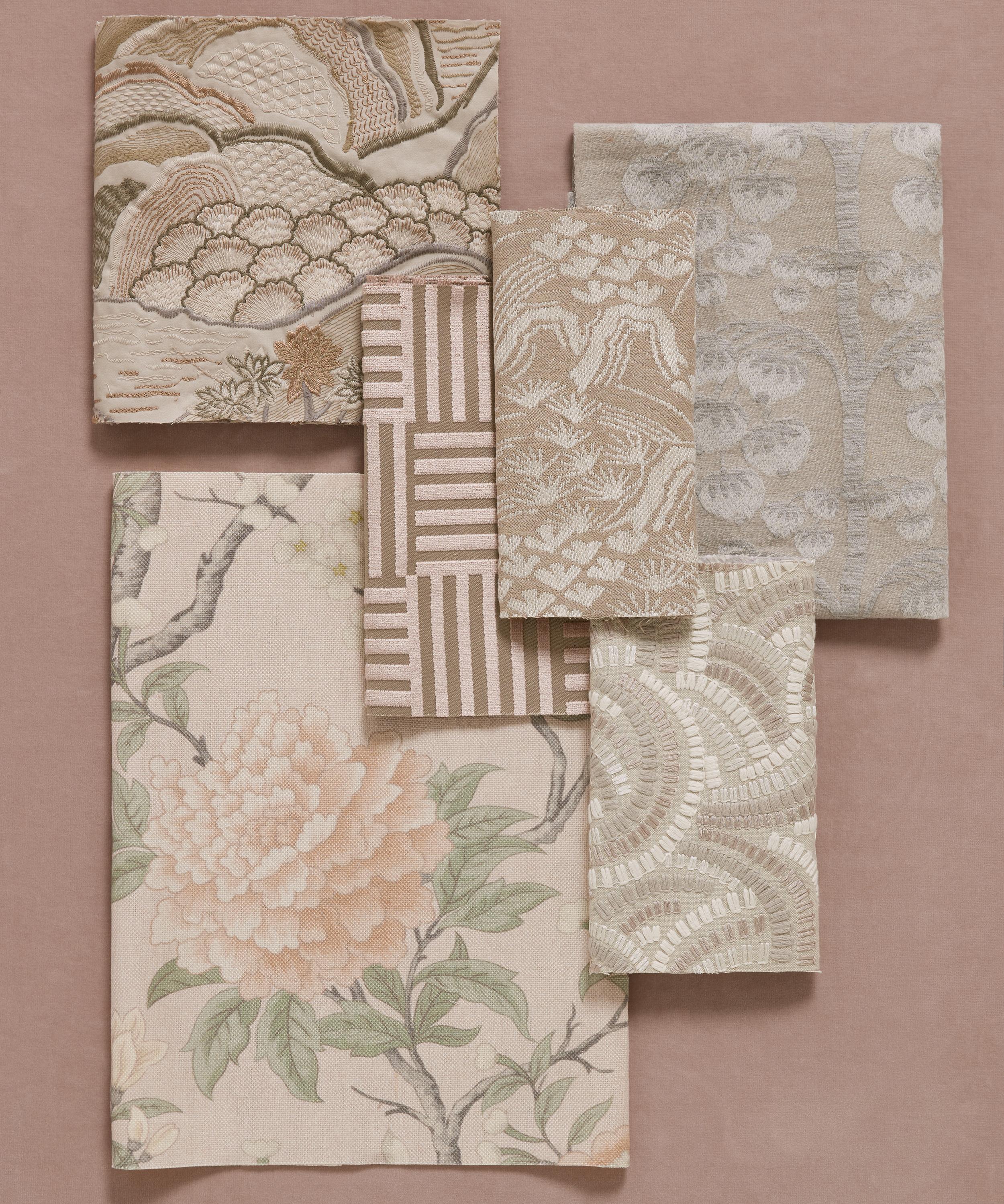 The Botanical Atlas fabric collection celebrates our historic lineage of craftsmanship and design through a cross-pollination of styles and visual narratives. Richly layered embroideries, opulent textured weaves, and contemporary printed velvets and linens are juxtaposed with a selection of elegant stripes and mesmerising geometrics - expertly crafted using traditional and cutting-edge techniques in Italy, Belgium, and India. Inspired by Japanese indigo printed textiles, mizuhiki knots, and ancient kimono linings, Kimono Knot is adapted from a hand-painted design created in the Liberty Studio.