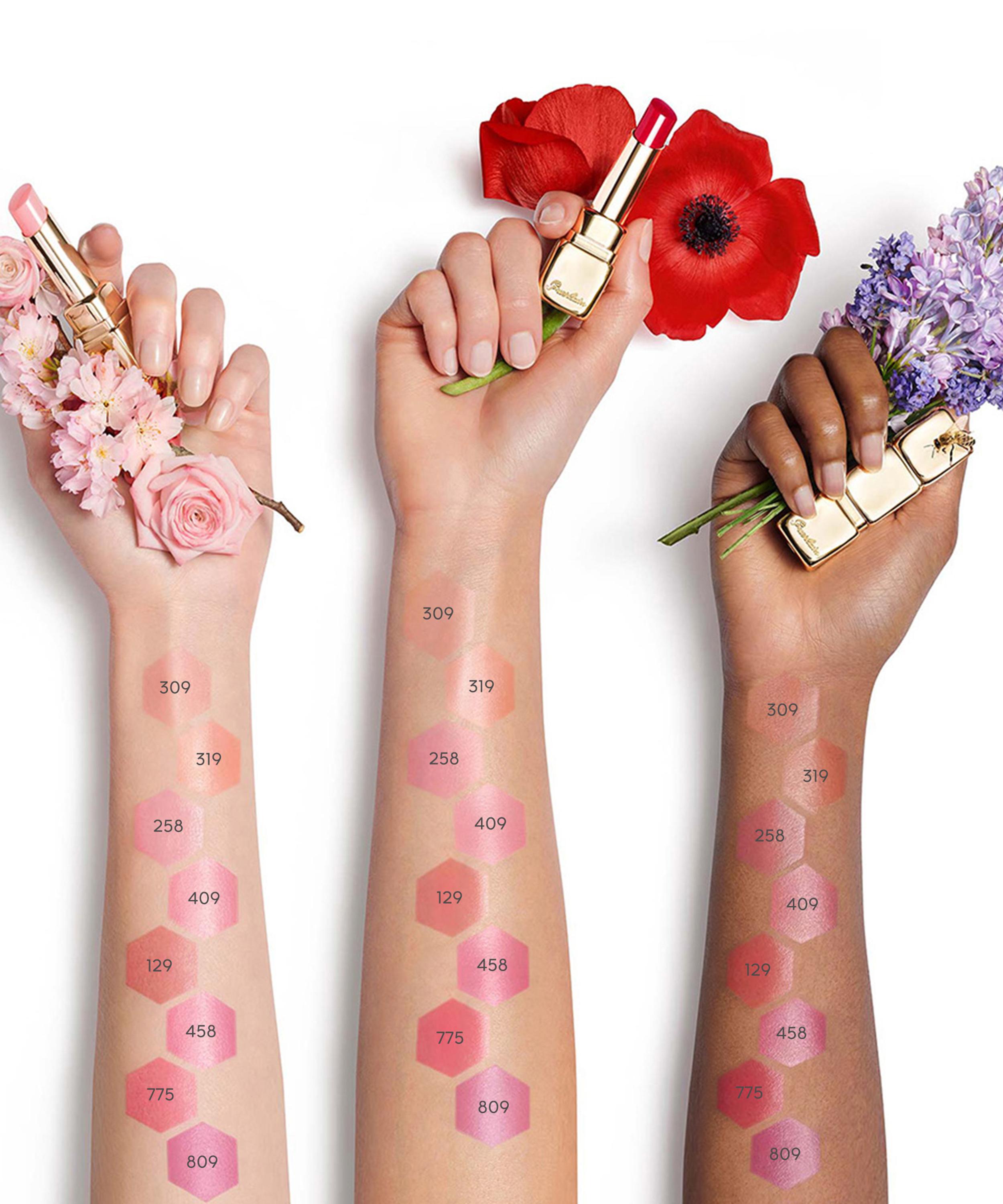 A perfect fusion of skin care and makeup, GUERLAIN's ingenious KissKiss Bee Glow tinted lip balm melts into lips to deliver a dose of intensive hydration while imparting a radiant veil of sheer colour. Perfect for everyday wear, this regenerative formula glides over lips for a soothed, softened, nourished and plumped pout that is enhanced with an illuminating colour, inspired by flowers.