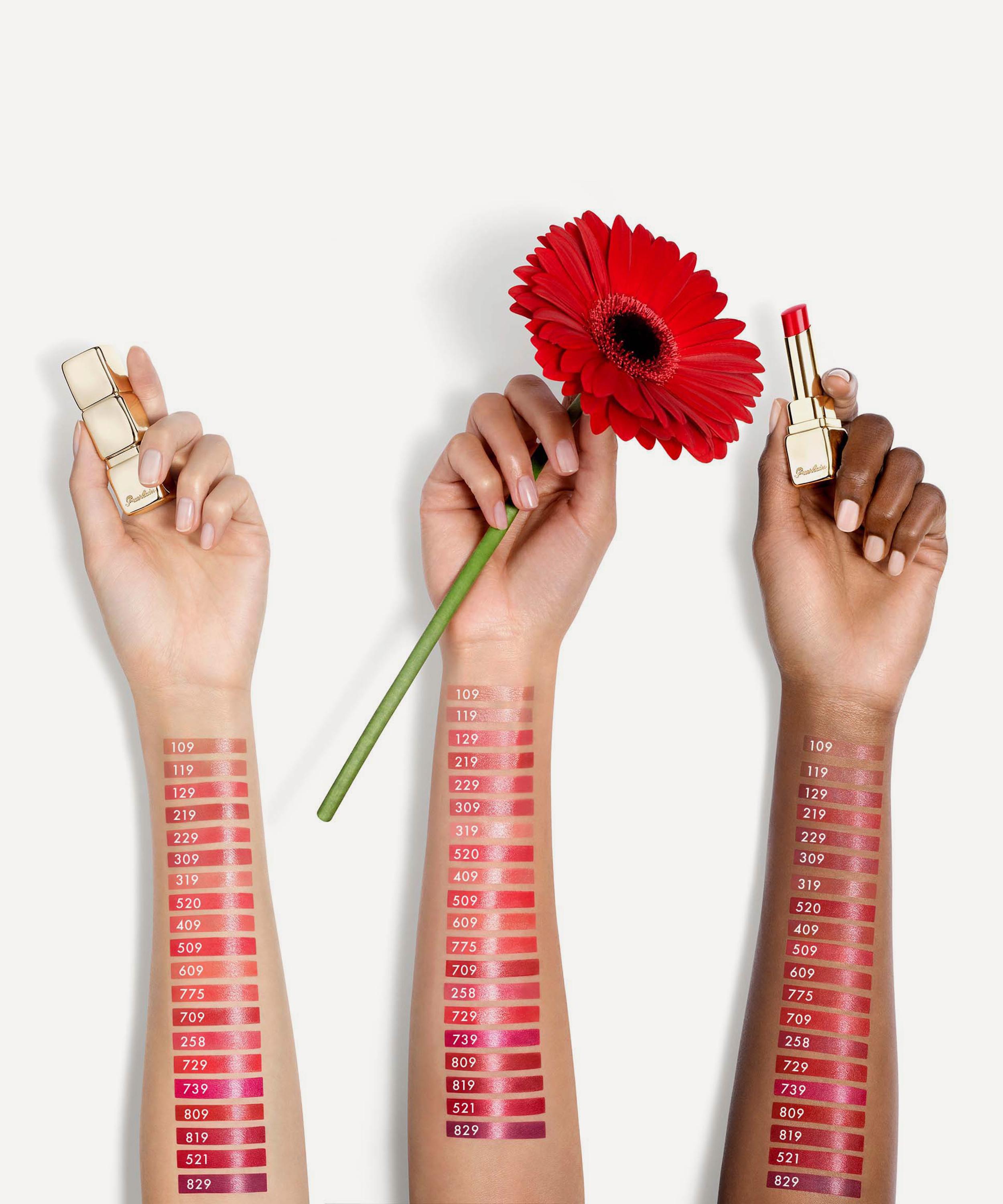 A perfect fusion of skin care and makeup, GUERLAIN's ingenious KissKiss Bee Glow tinted lip balm melts into lips to deliver a dose of intensive hydration while imparting a radiant veil of sheer colour. Perfect for everyday wear, this regenerative formula glides over lips for a soothed, softened, nourished and plumped pout that is enhanced with an illuminating colour, inspired by flowers.