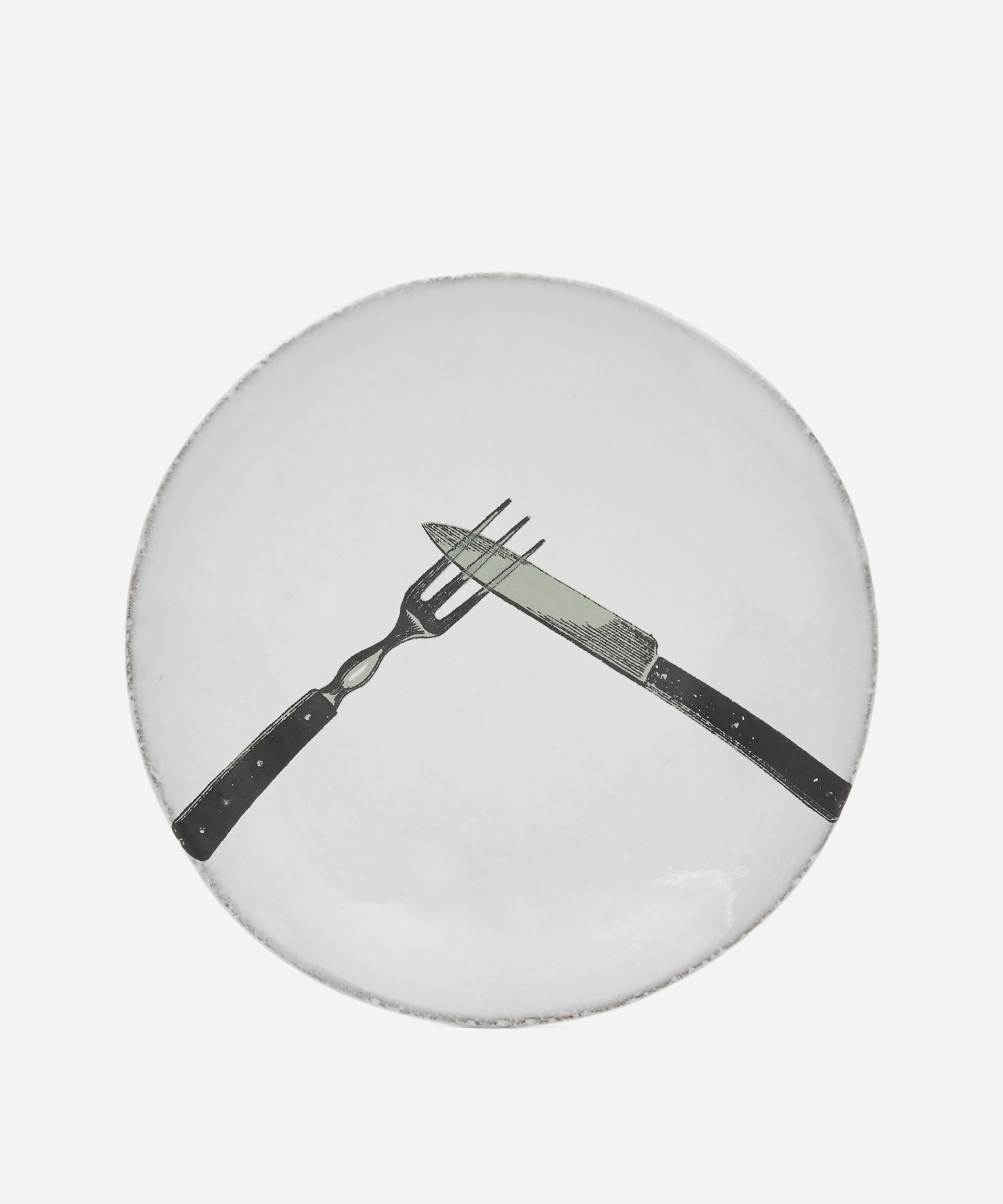 Part of the John Derian collection, the 19th-century inspired Knife and Fork saucer from Astier de Villatte is a testament to the Parisian brand’s spiritual ethos and John Derian's iconic découpage.