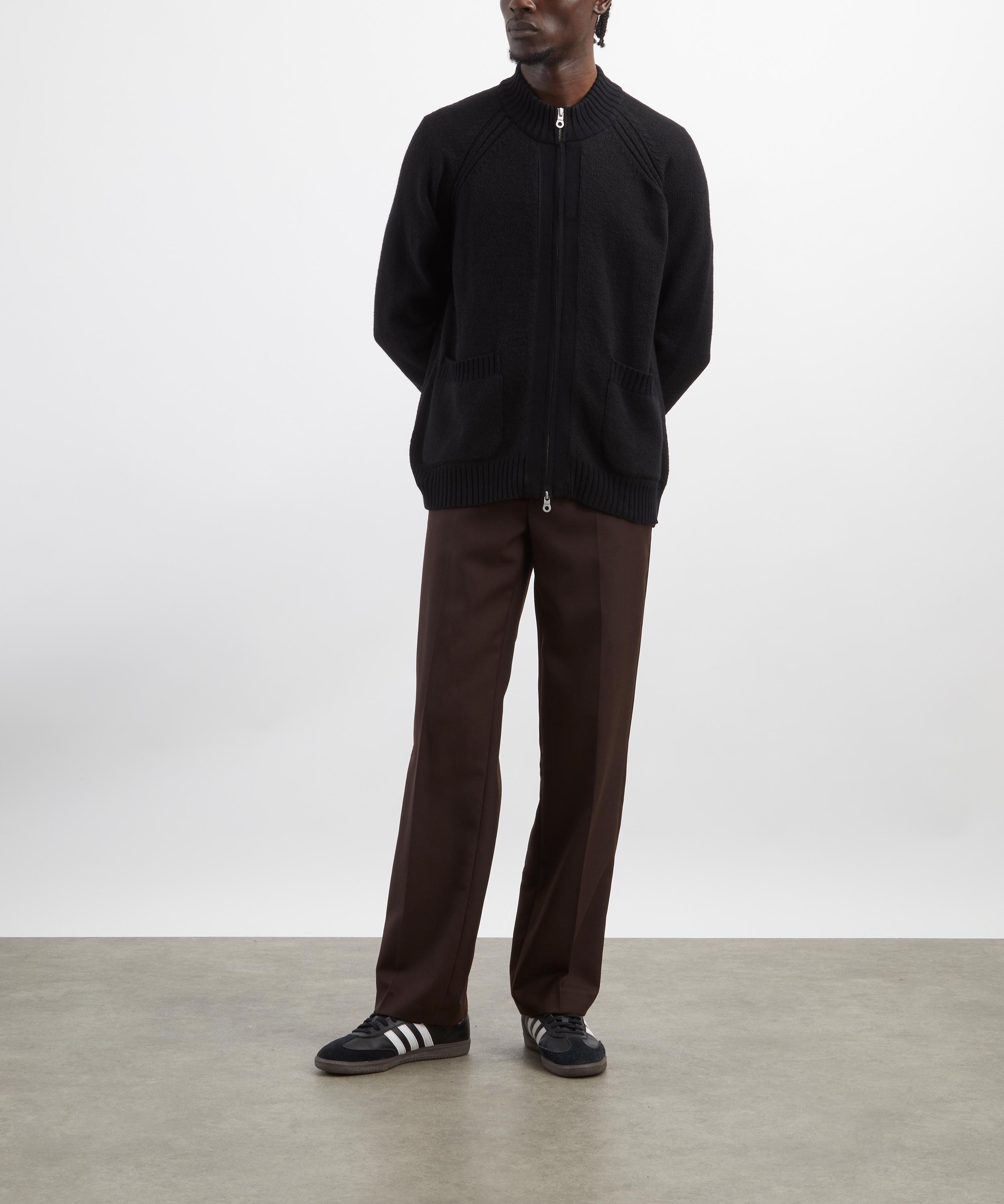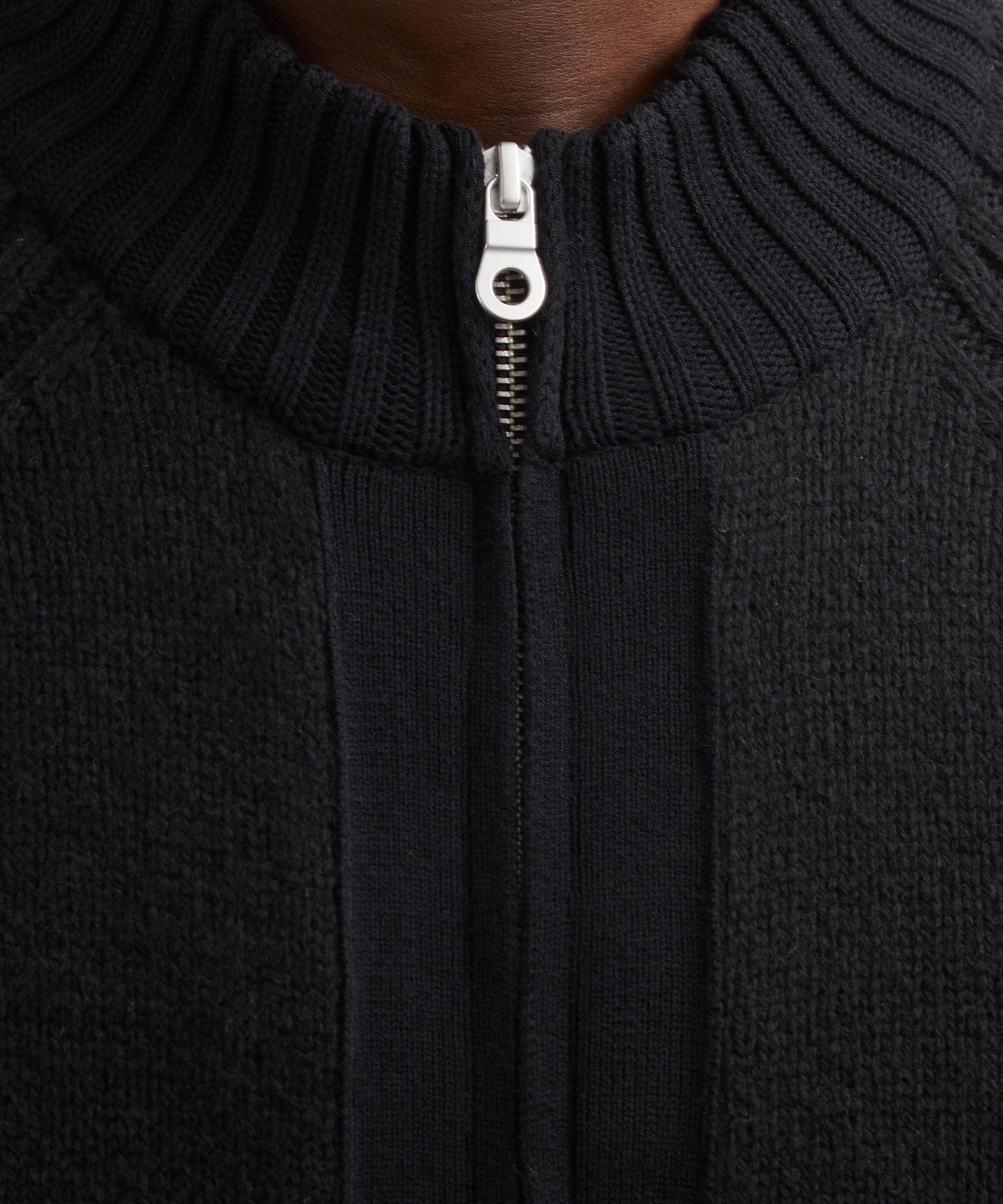Taking inspiration from the traditional bomber jacket, its knitted construction offers a laidback take on the signature silhouette. Finished with ribbed trims, dropped shoulders and side pockets, while a double zip adds versatility to styling.