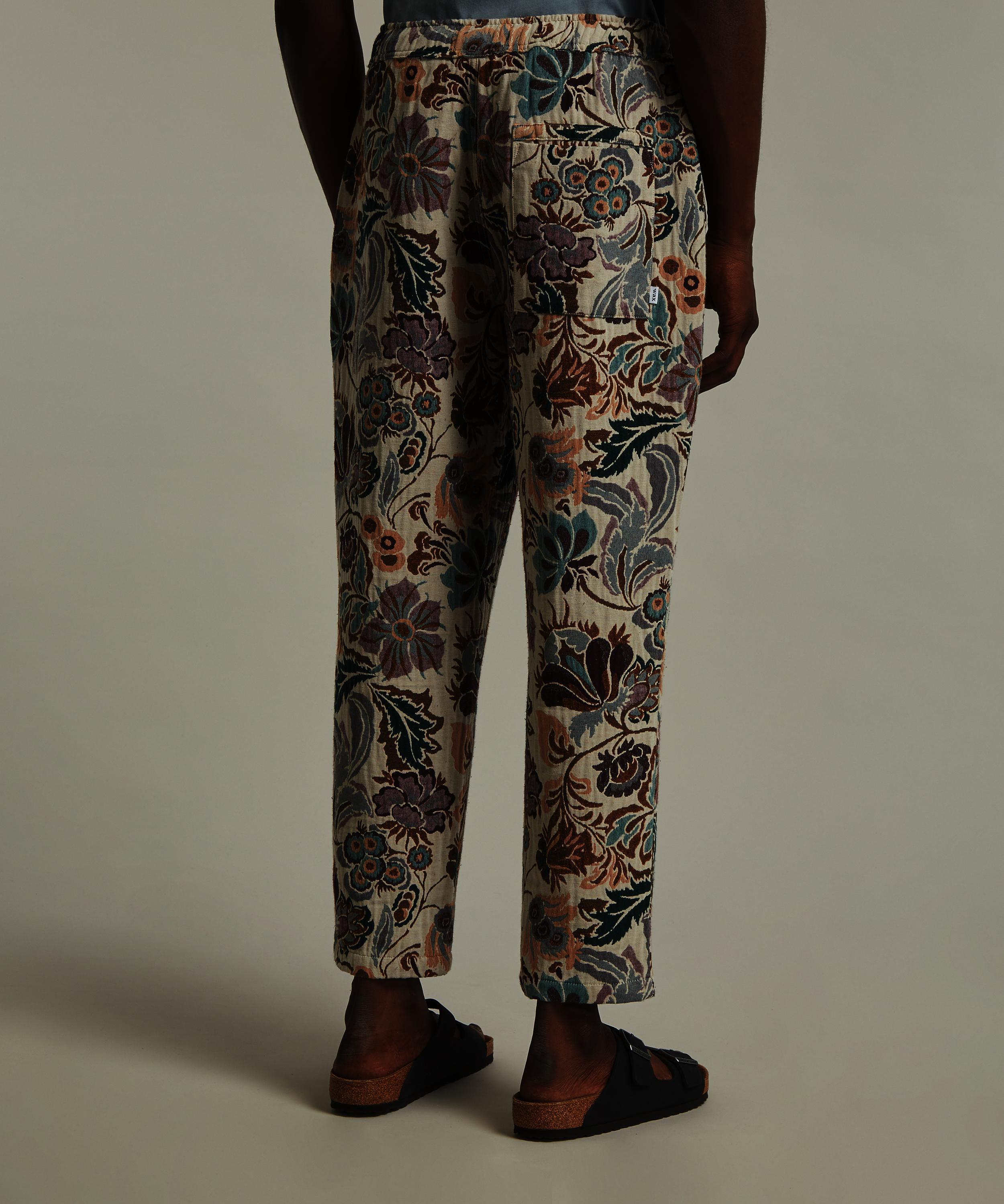 Make a style statement with the printed Kurt Trousers from Wax London. Crafted from a cotton blend with a botanical jacquard pattern, this pair is cut to a slightly cropped, tapered fit with a drawstring waistband and multiple pockets – a go-to style in your transition from summer to winter. Pair with formal shoes, trainers or chunky boots for a hint of that rock edge that Wax loves so much.