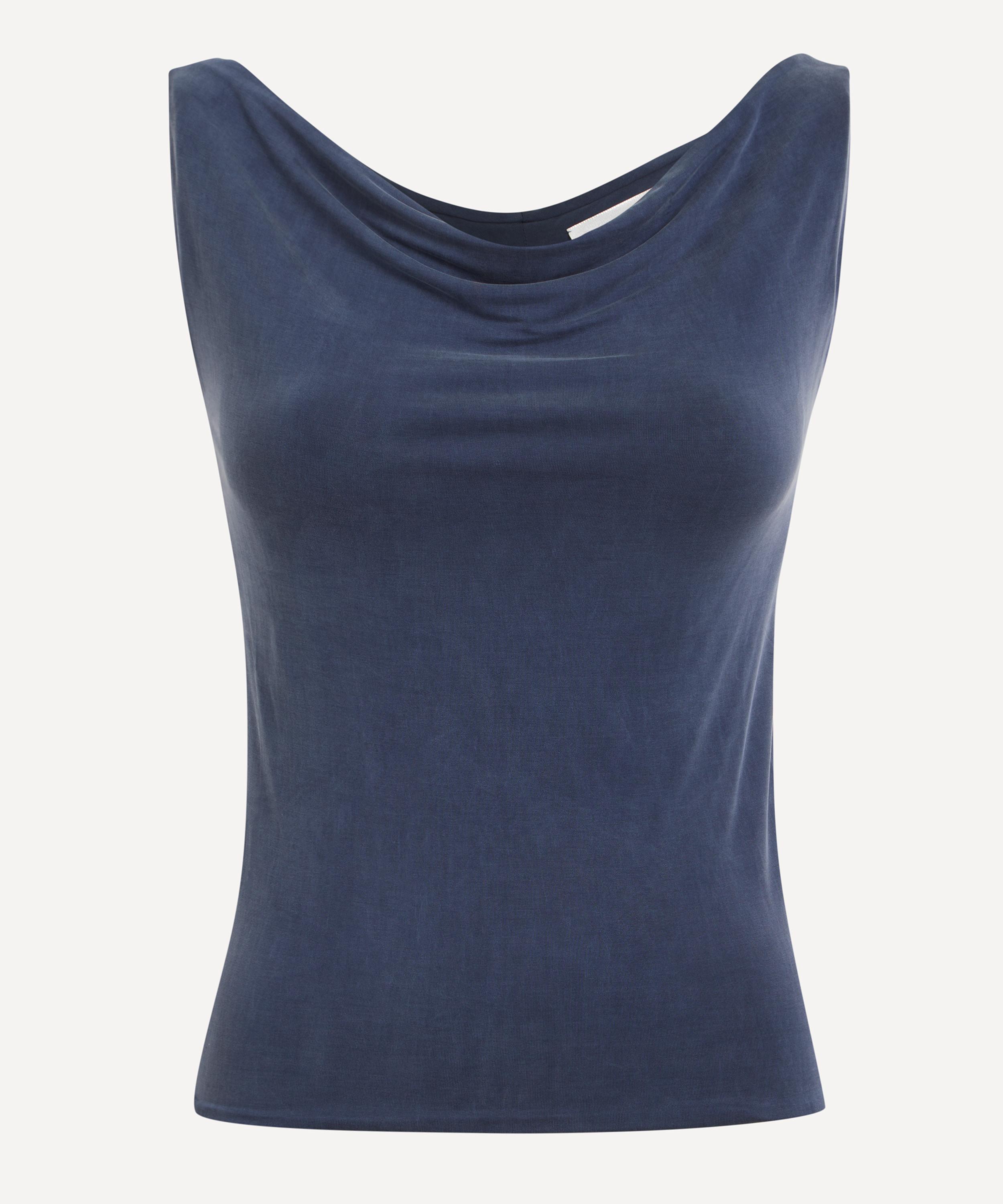 Effortlessly feminine, this double-layered, sleeveless top exudes elegance with its draped cowl neckline. A form-fitting design, it’s crafted from buttery-soft cupro, which is favoured for its semi-sheer, smooth handfeel.
