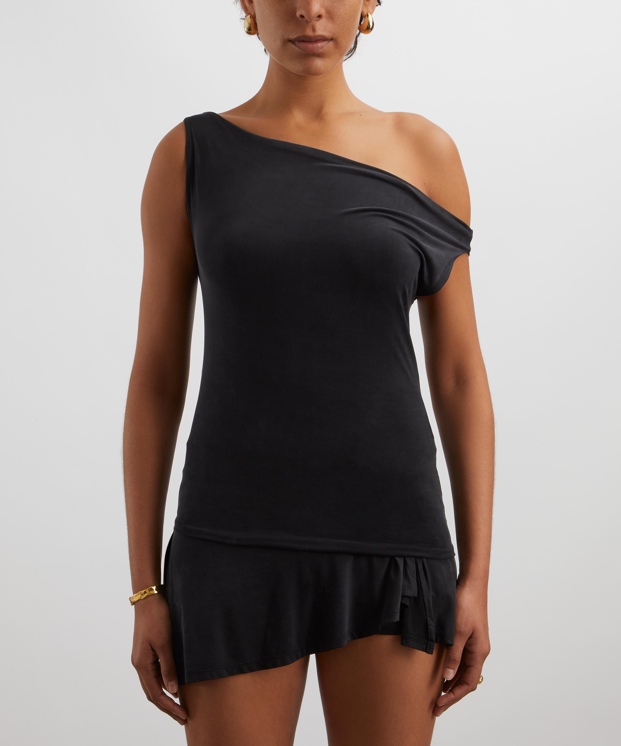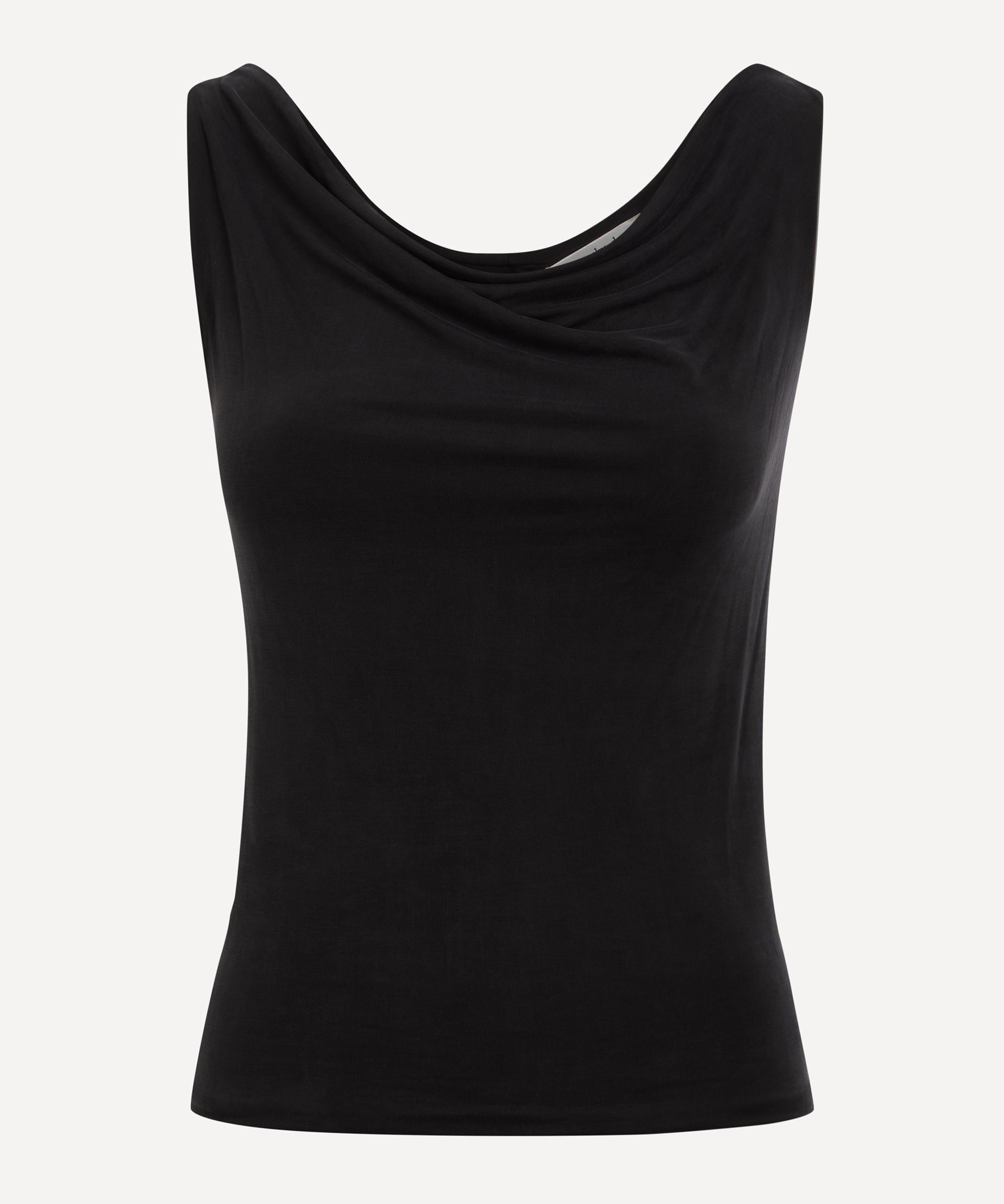 Effortlessly feminine, this double-layered, sleeveless top exudes elegance with its draped cowl neckline. A form-fitting design, it’s crafted from buttery-soft cupro, which is favoured for its semi-sheer, smooth handfeel.