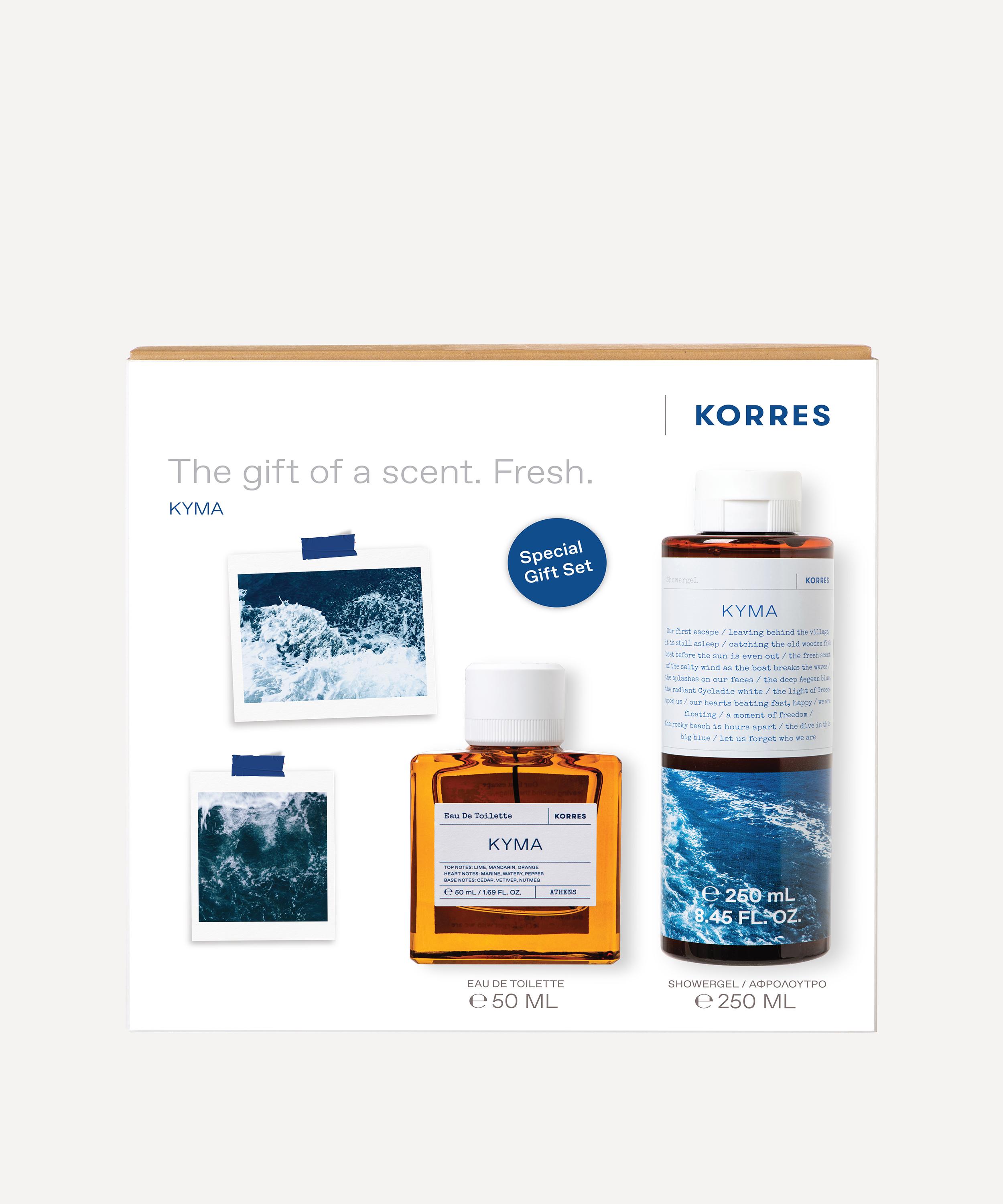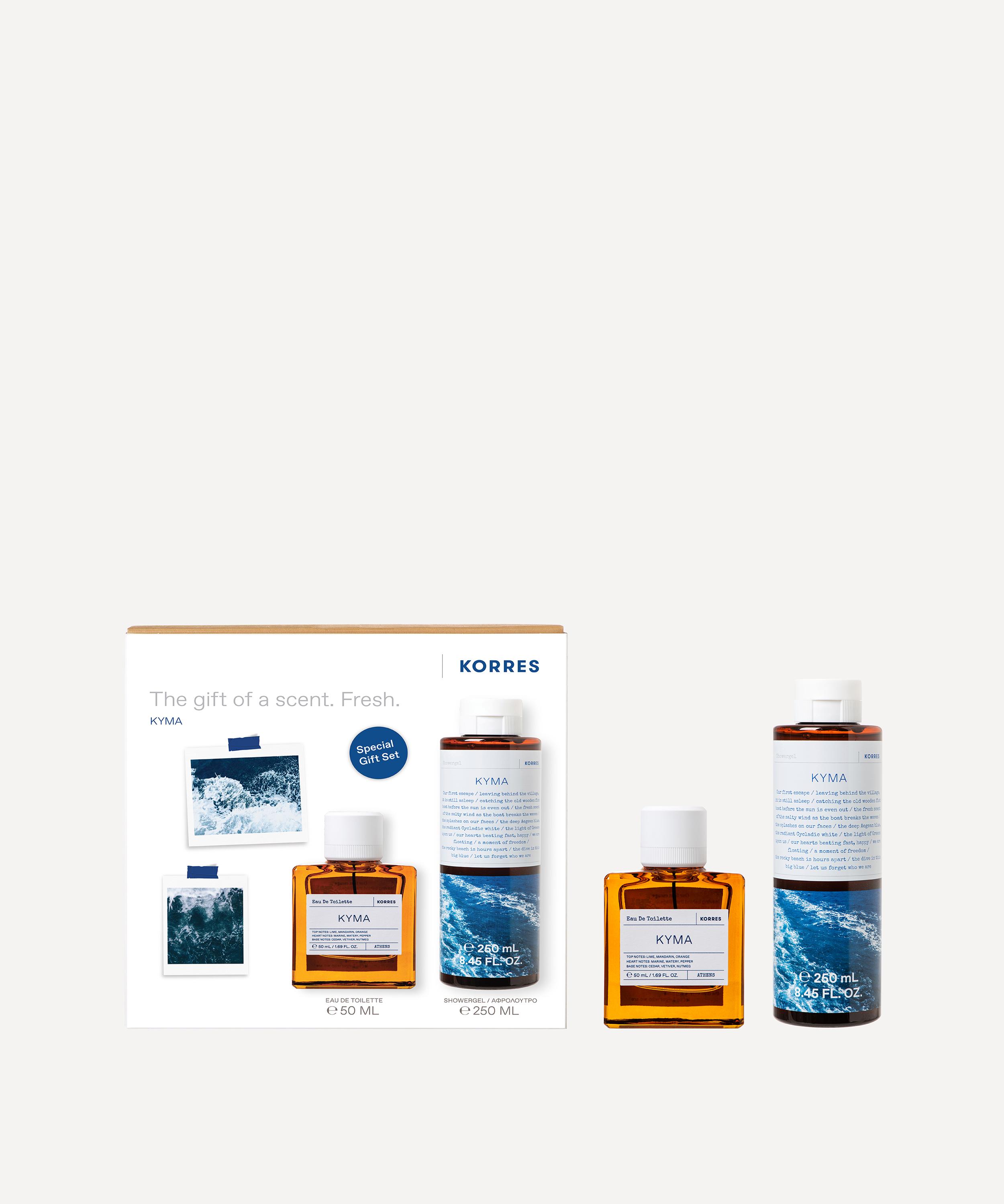 - Set includes: Kyma Eau de Toilette 50ml and Kyma Shower Gel 250ml