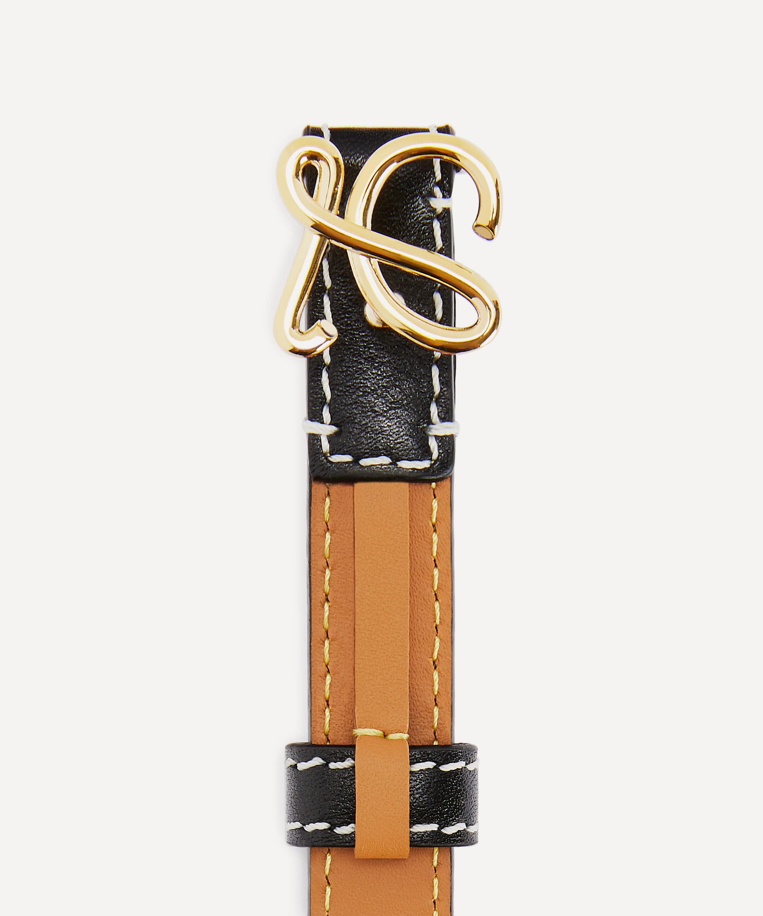 Cut from smooth calfskin leather, this narrow belt features contrasting topstitched edging and a gold-tone brass buckle that's sculpted to imitate the brand's distinctive L monogram. Designed to pair perfectly with almost any outfit, wear it with fluid shirting or distressed denim for an instantly elevated everyday look.