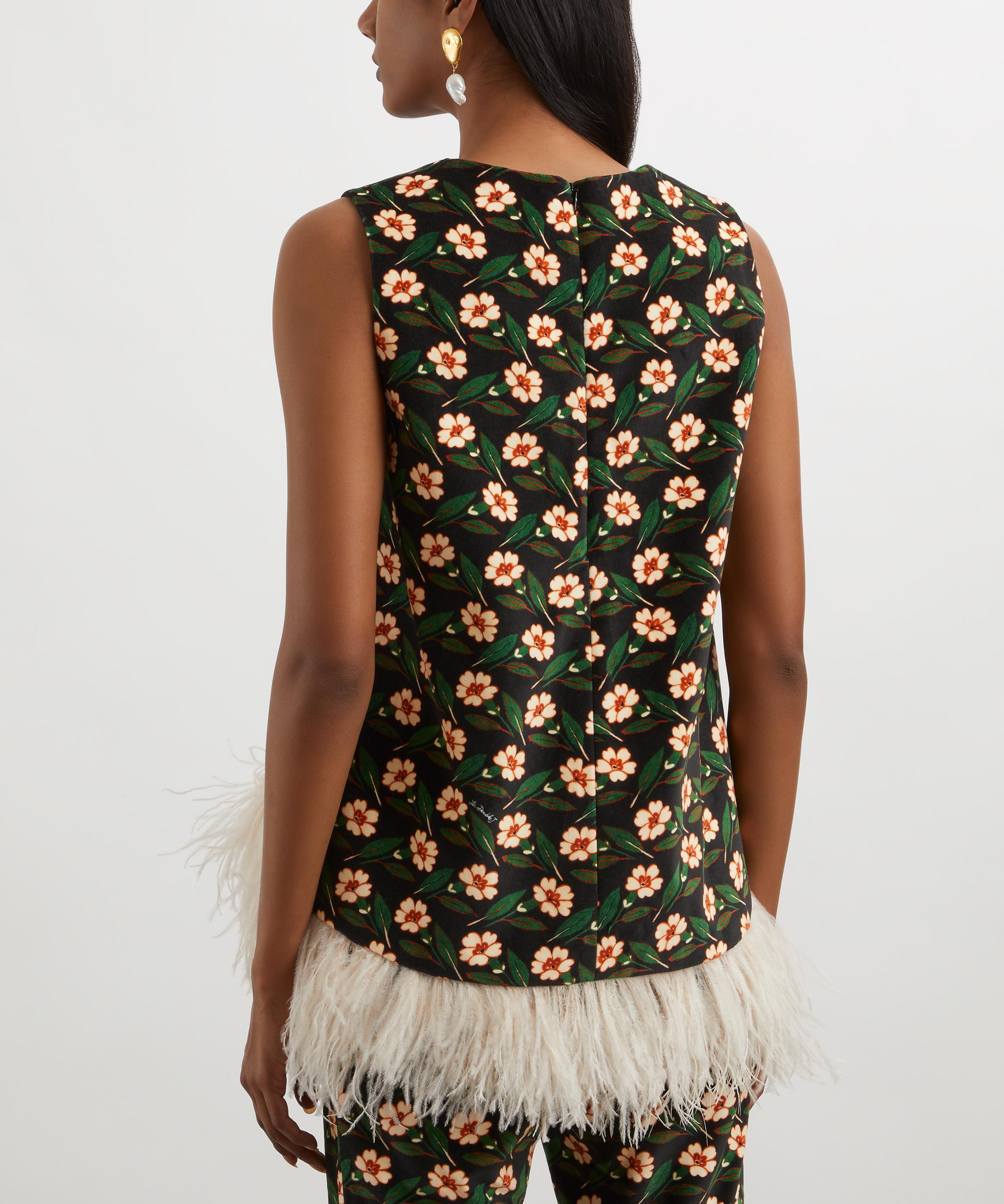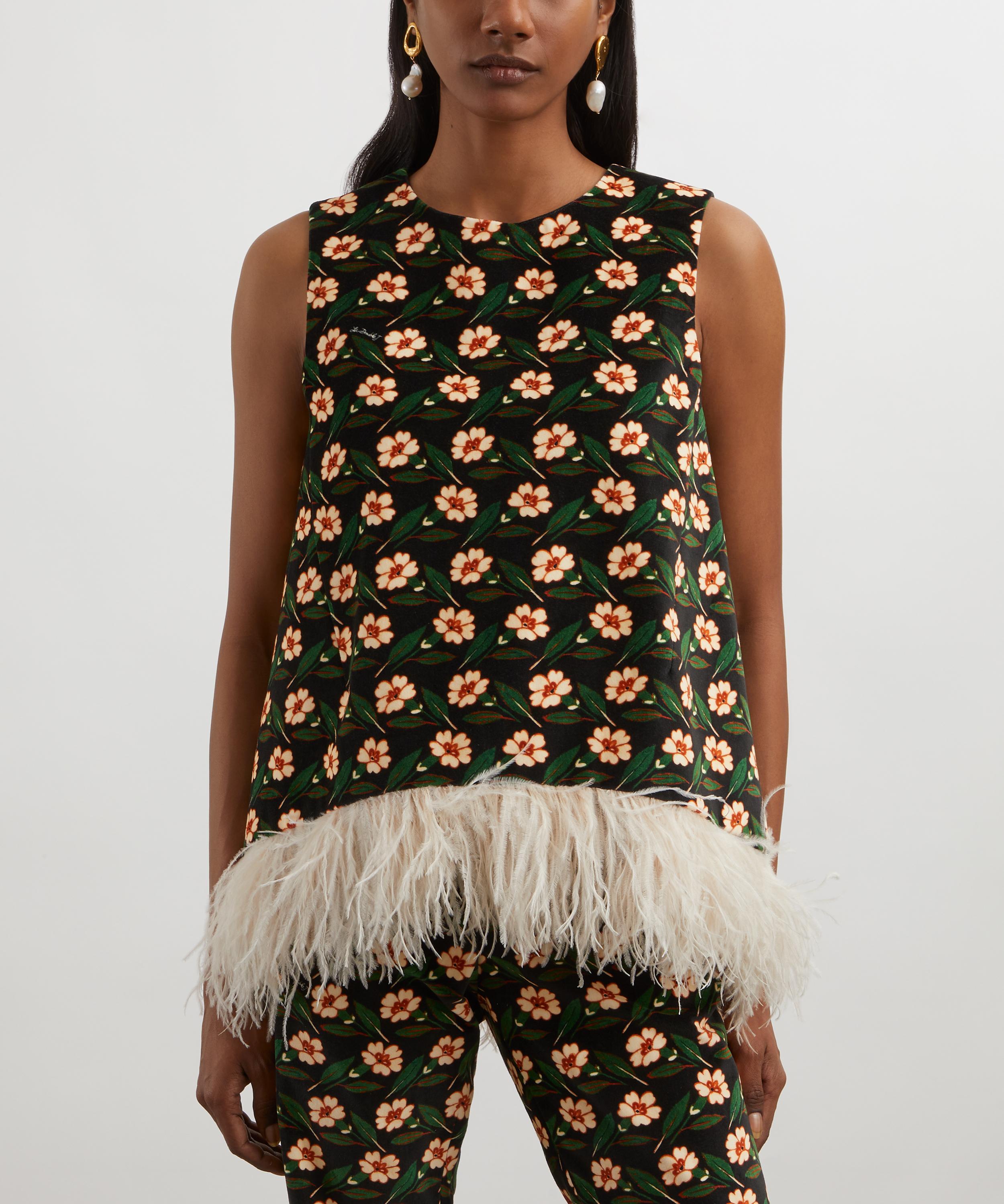 Cut from luxuriously soft Italian velvet to a loose, trapeze silhouette that is slim in the shoulders and generous at the back, this sleeveless top features a round neckline, a concealed zip closure at the back and a contrast feathered hem for an alluring finish.