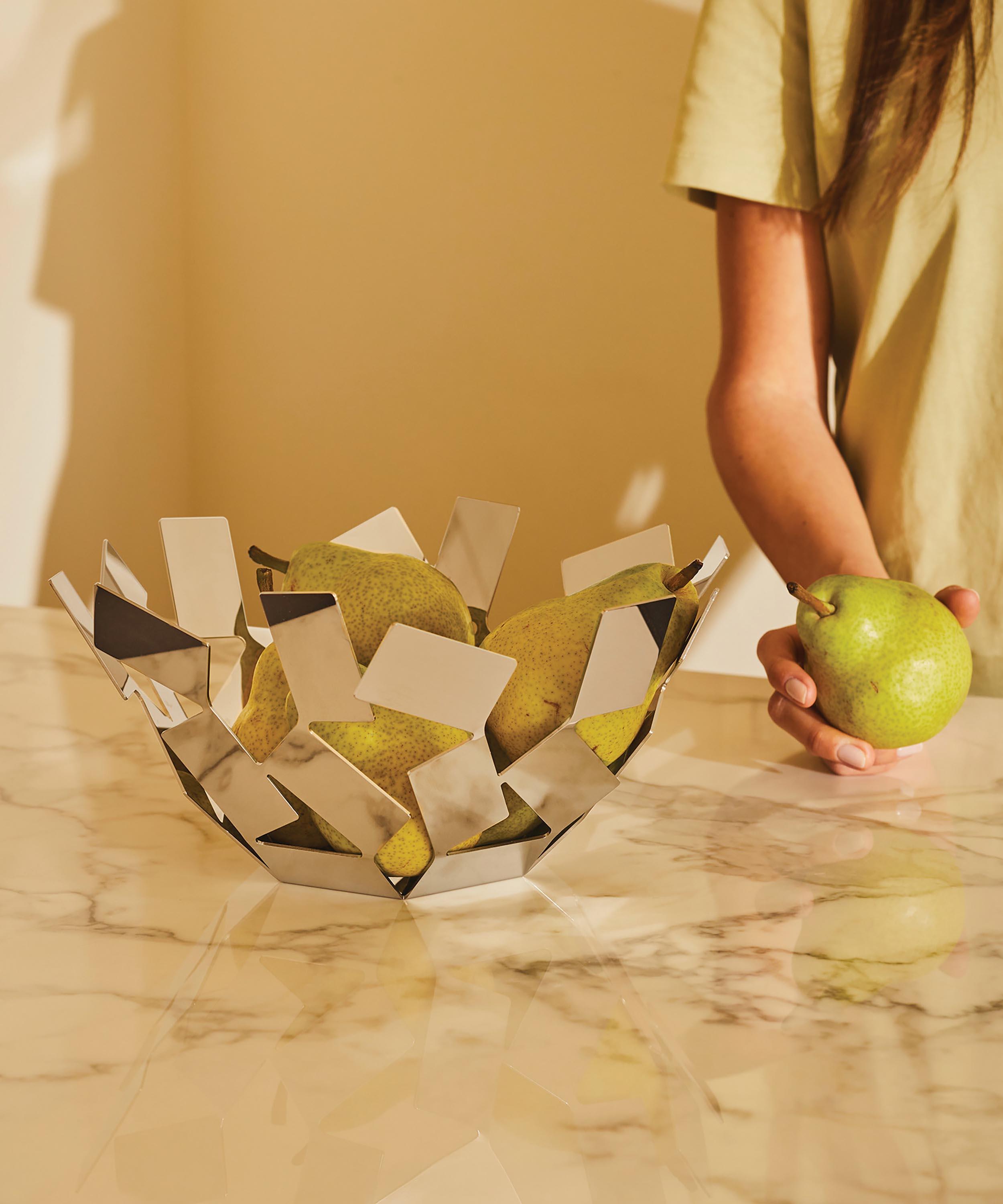 Award winning Italian designer Mario Trimarchi presents this bowl made up of small splinters of various sizes, interlaced in an unstable balance for a mesmerising, geometrically irregular silhouette. Exquisitely crafted from high polished stainless steel, this piece with be the focal point of your hosting tablescape.