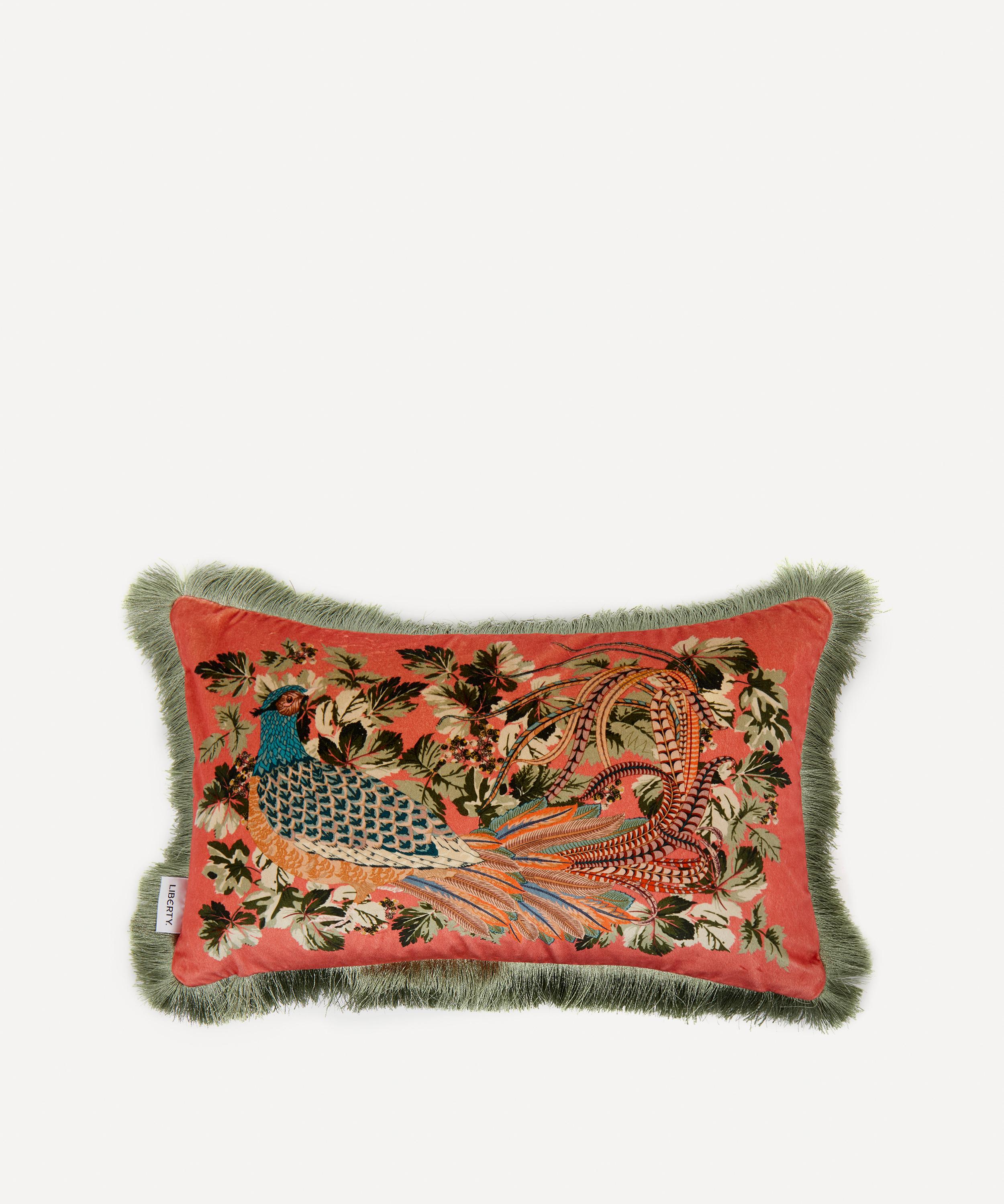Liberty’s fringed Lady Amphora cushion is crafted in England from cotton velvet with a plump duck feather filling, its classic placement design printed by experts in Italy.