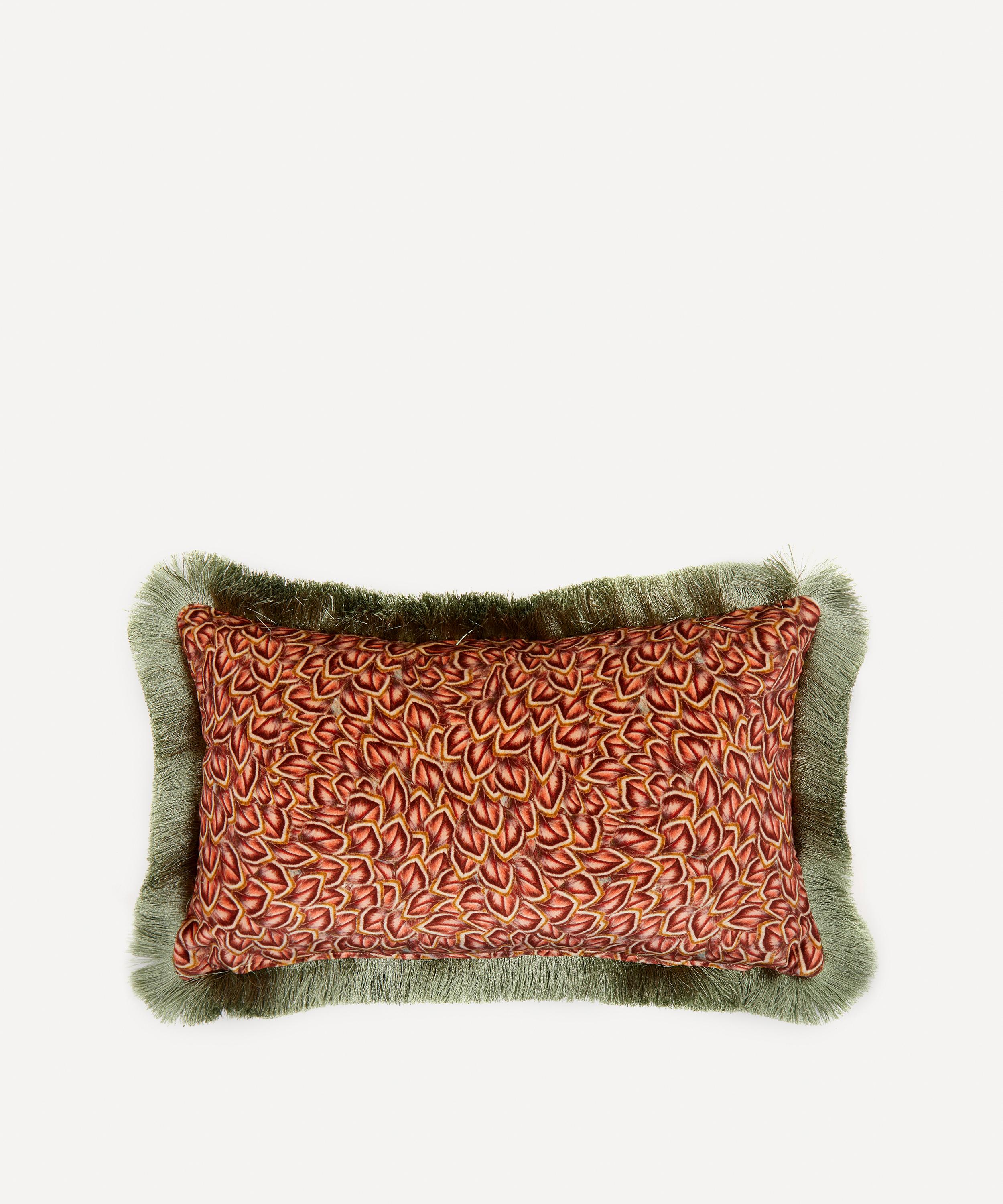 Created in the Liberty design studio, Lady Amphora appears here in a beautifully engineered placement that can be displayed with either side facing up. Edged with lush fringing for added texture, throw the cushion on a daybed or armchair, for an archive-inflected approach to modern interiors.