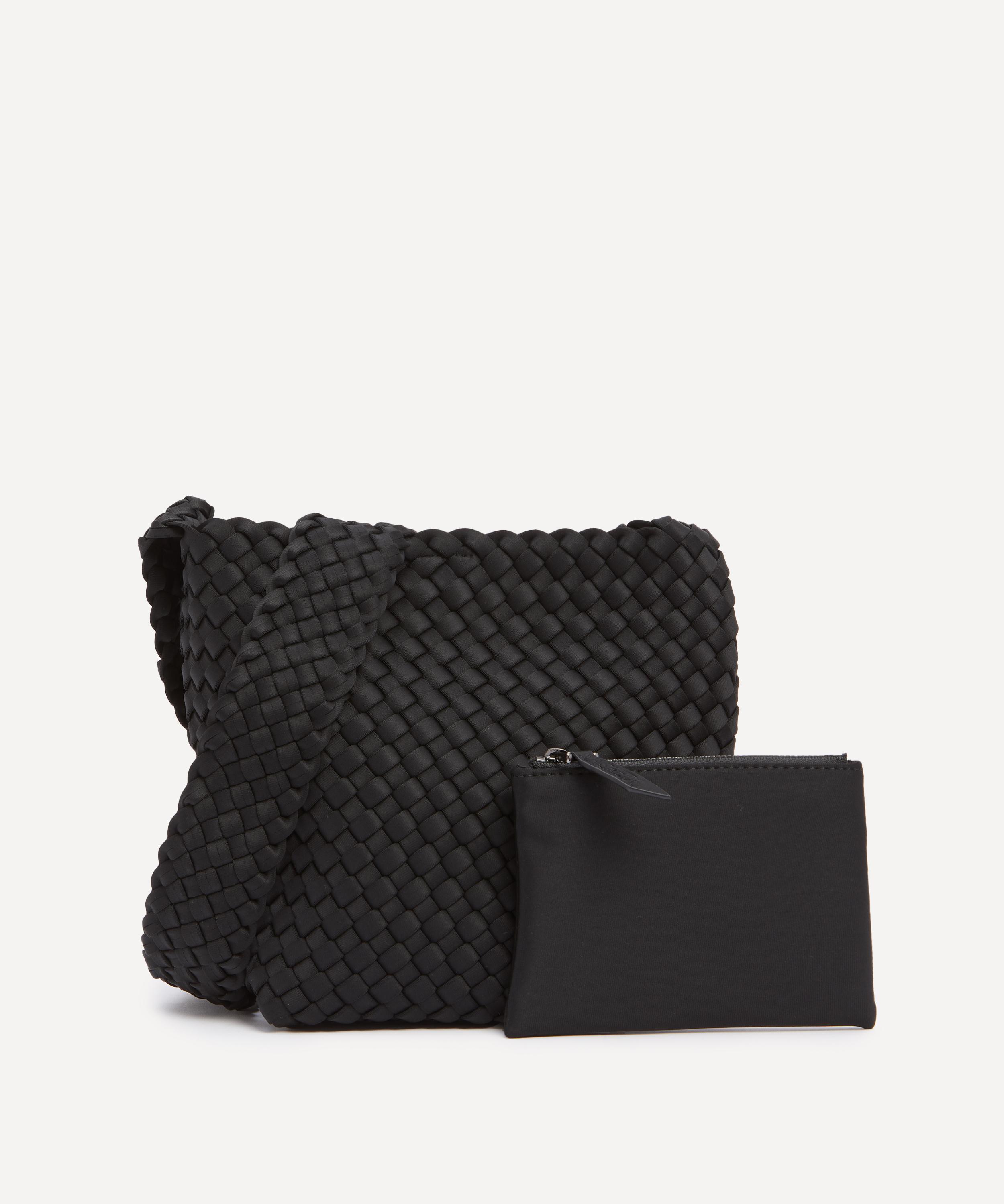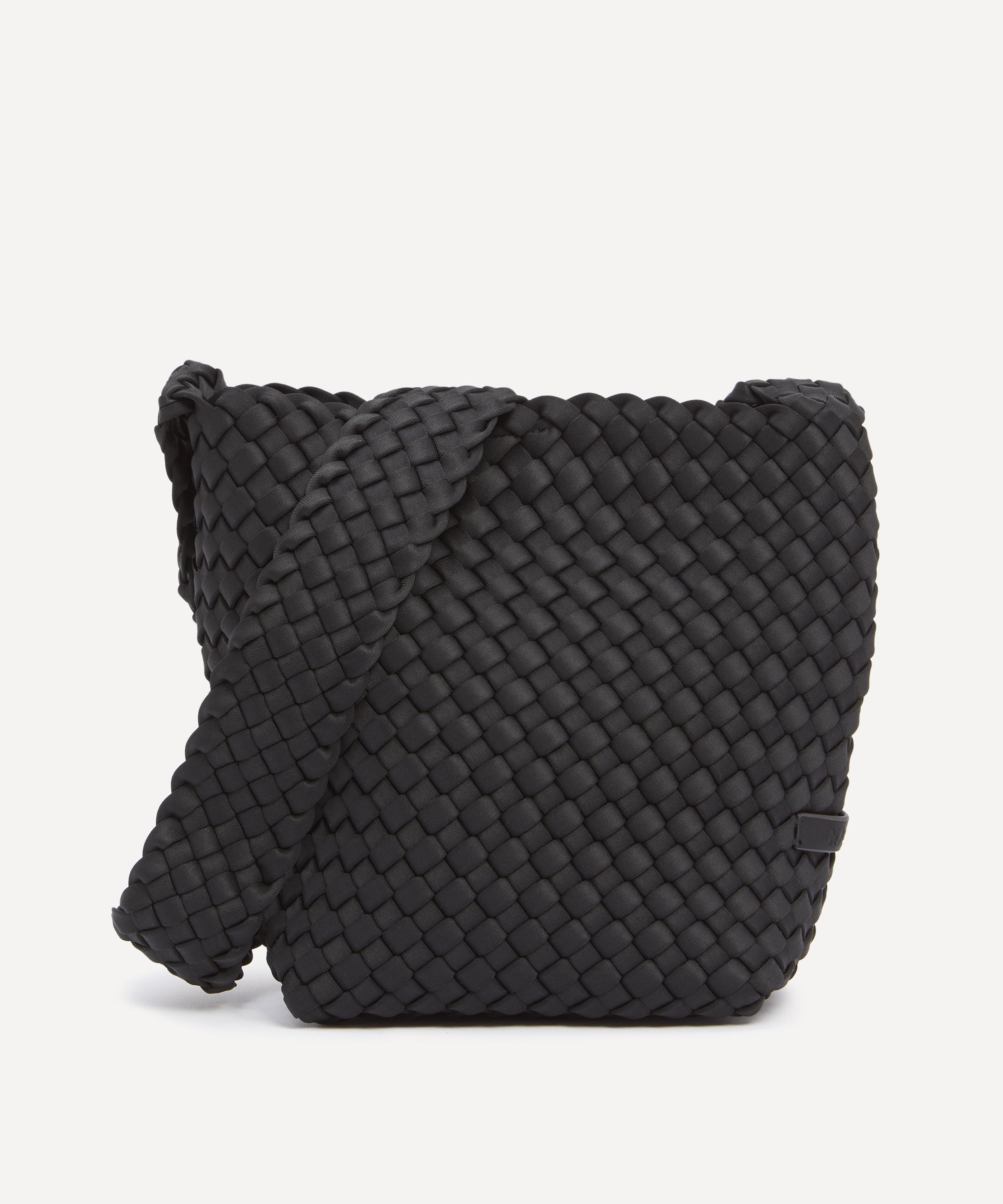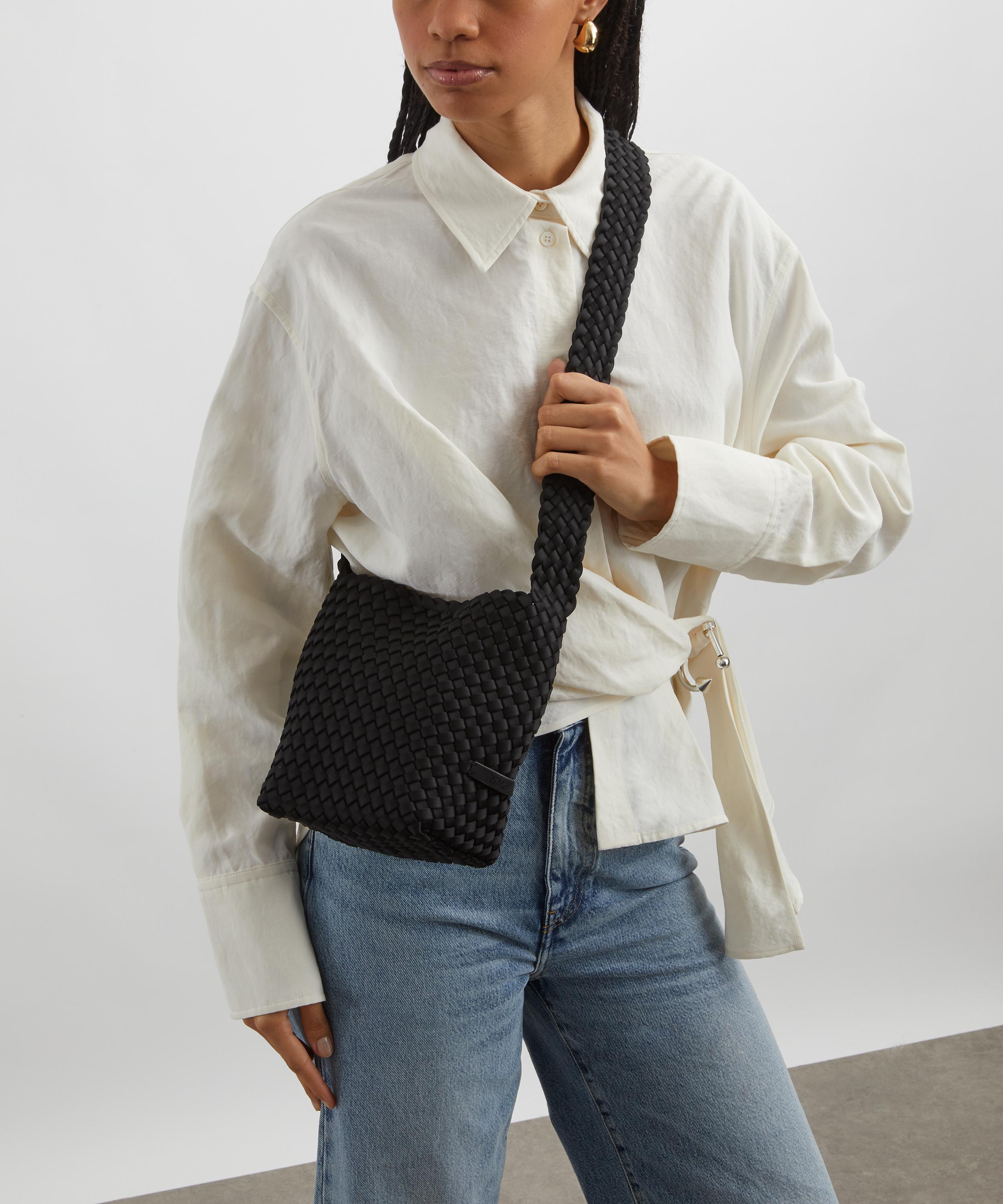 The Laguna Crossbody bag boasts a polished and practical design, hand-woven from durable neoprene fabric by New York-based accessories brand Naghedi.
