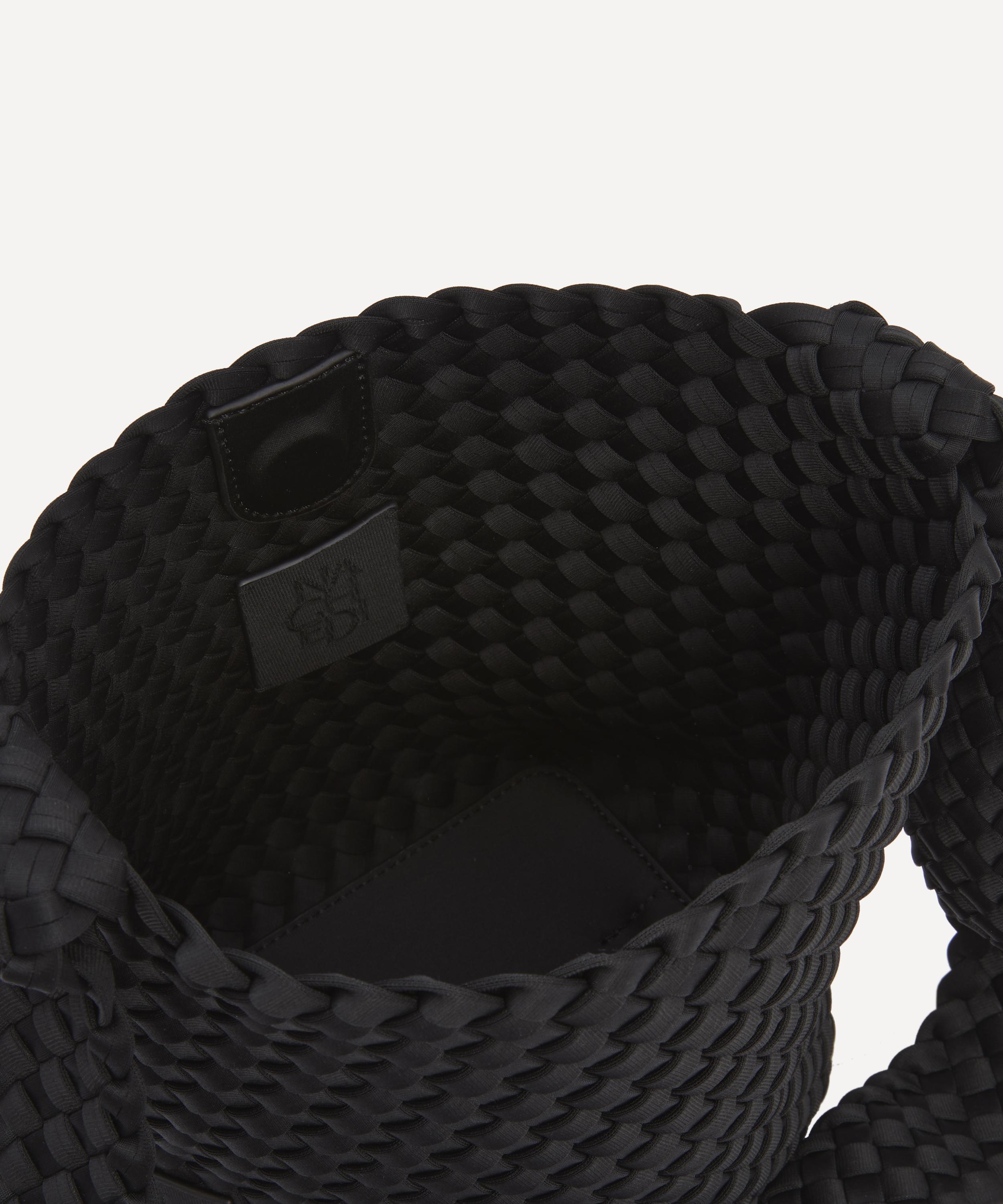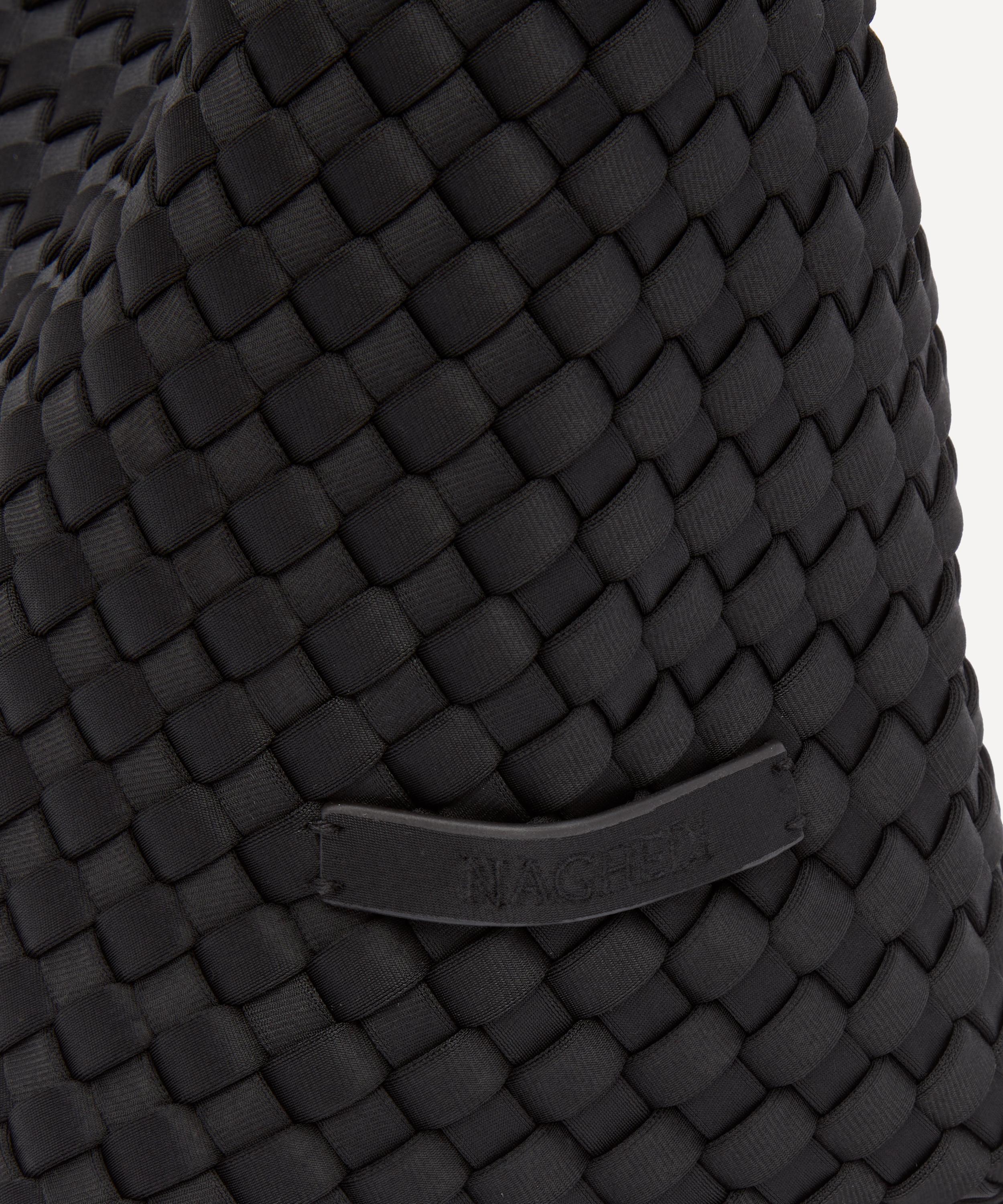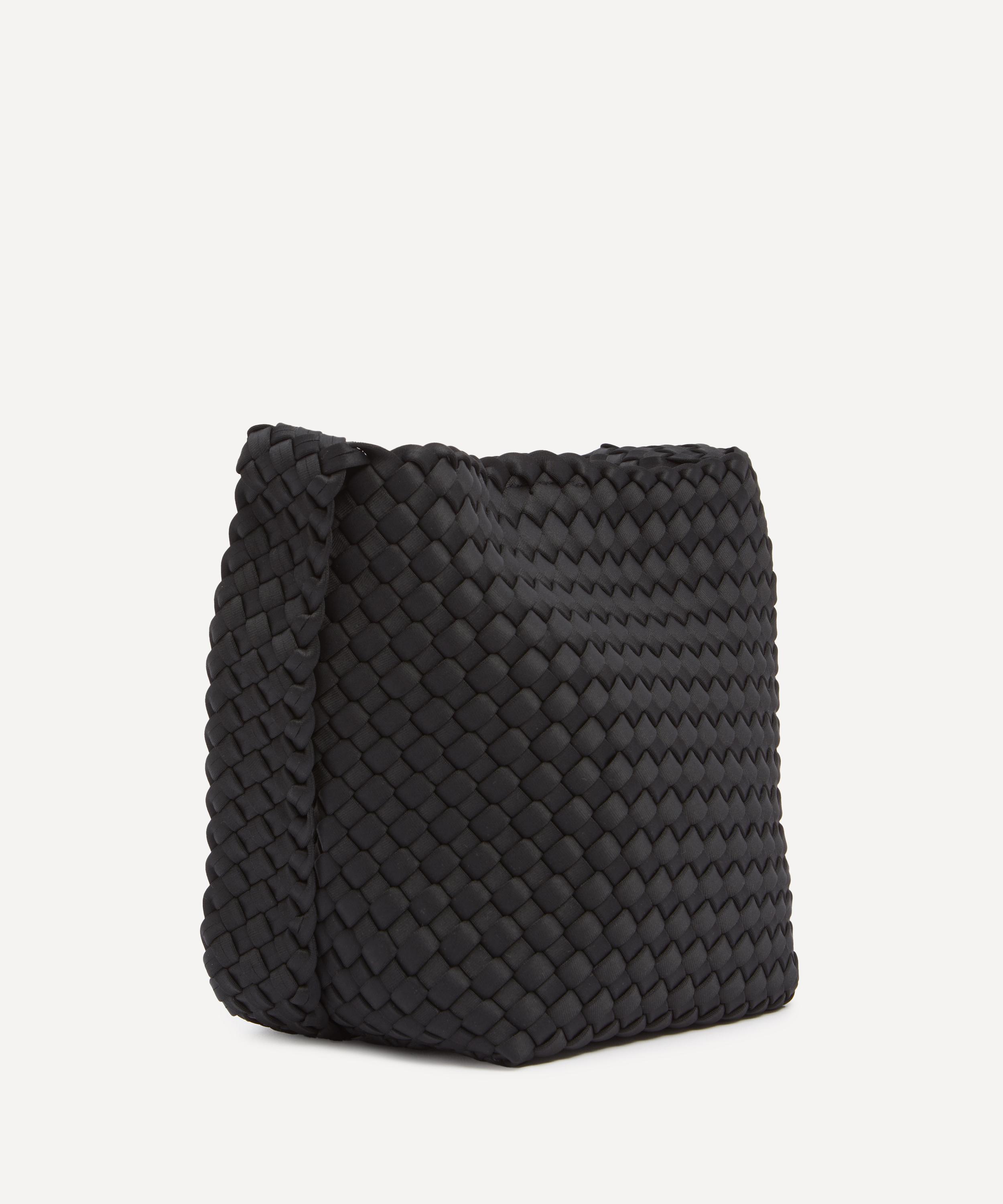 The Laguna Crossbody bag boasts a polished and practical design, hand-woven from durable neoprene fabric by New York-based accessories brand Naghedi.
