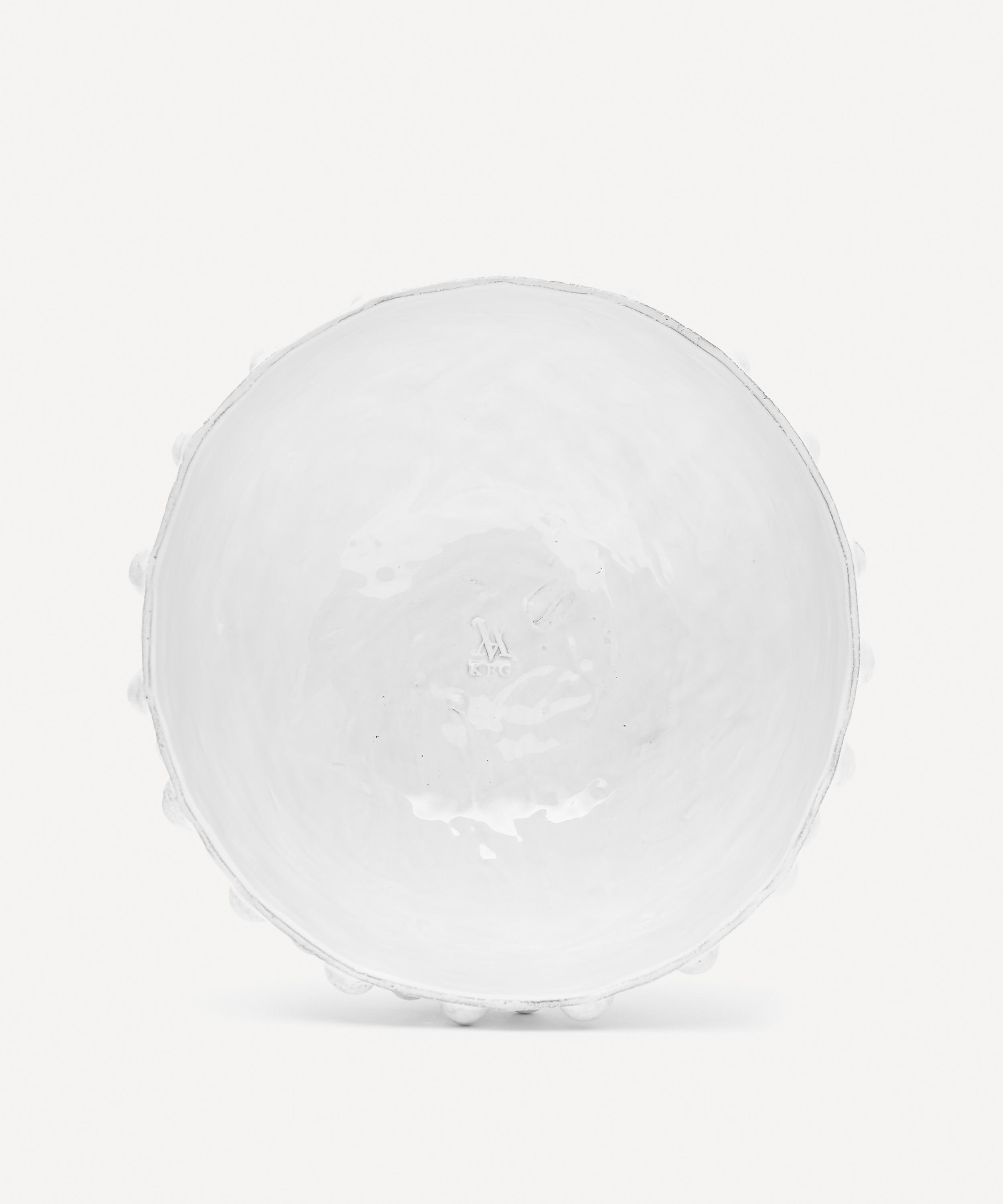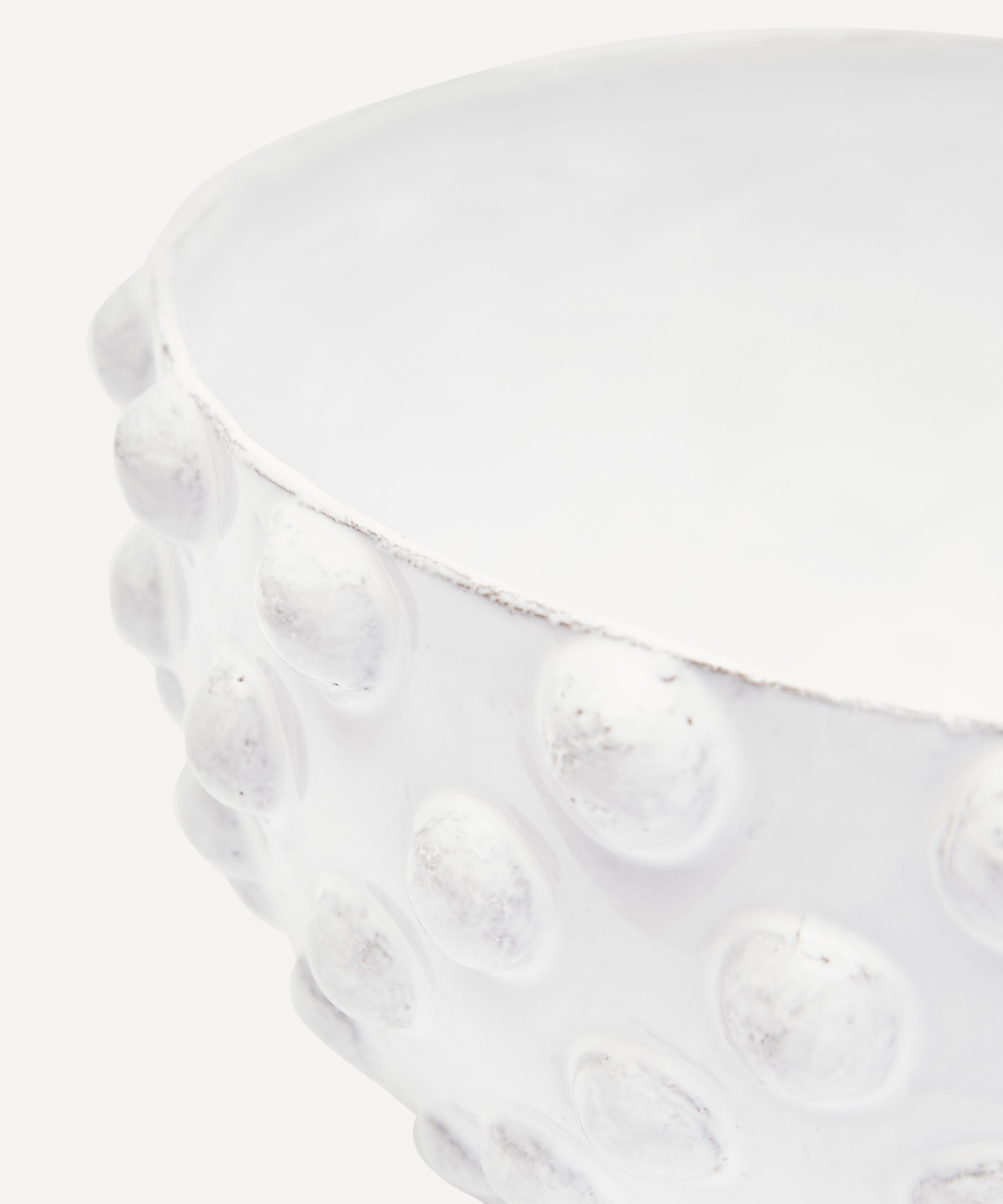 Votary of pre-industrial fabrication, Astier de Villatte is celebrated for being the one and only studio in Paris to hold and harbour the traditions of artisanal ceramic production. Restoring the ancestral systems of moulding and stamping, the large Adélaïde salad bowl is made using handcrafting techniques from the Middle Ages which involve moulding a handmade sheet of clay, double firing the ‘biscuit’ piece and glazing the product in white enamel – a lengthy process that involves a drying time of up to one month. Characterised by a knobbly exterior and exposed clay, the salad bowl is engraved with the brand’s signature crest - depicting an interlacing A & V - alongside the initials of one of the 40 master artisans who created it. Each handmade piece tells a beautiful story, it romances and imparts a sense of nostalgia into its owner. Arrange with other serveware in the collection to breathe an air of authenticity into your dining collection.
