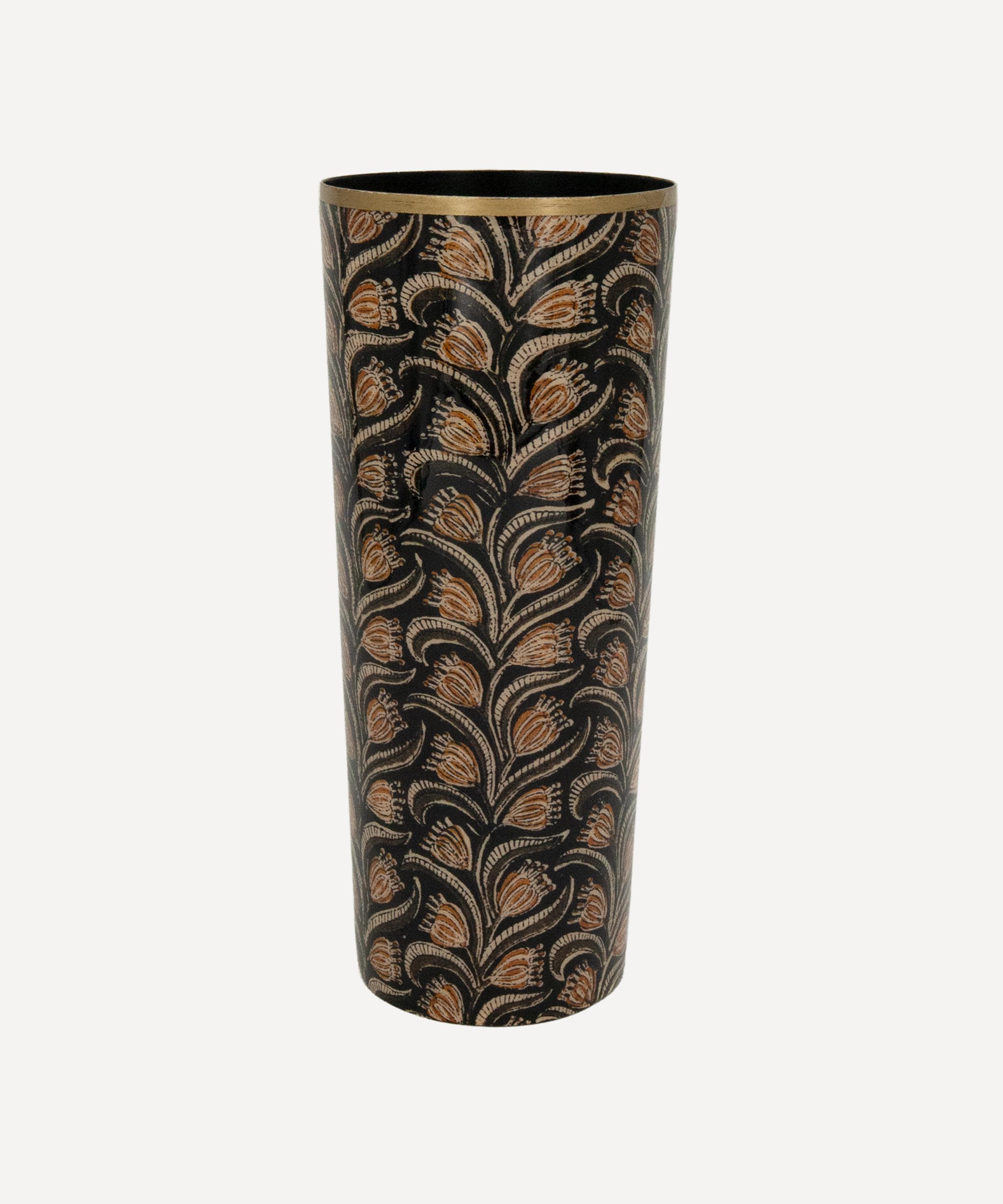 Meticulously crafted from durable enamelled iron, this vase features wonderfully idiosyncratic floral repeat design spanning the entirety of its silhouette. Delicately finished with a hand-gilded edge, style with fresh or dried blooms for a delightfully eclectic accent to your workspace.