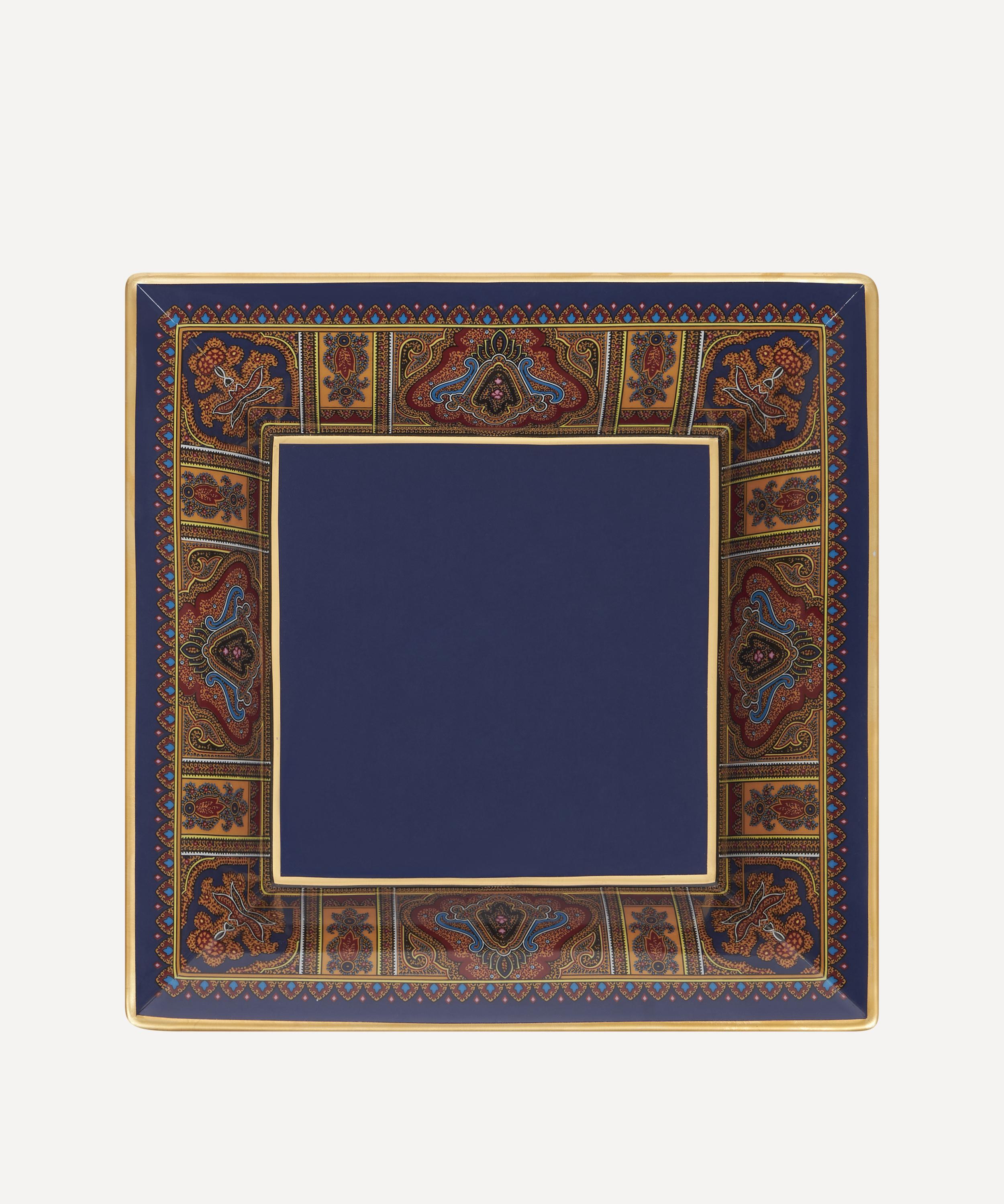 Elevate dining arrangements with the Cachemire porcelain tray from Etro, exemplifying the Italian maison’s penchant for premium-made, patterned goods.